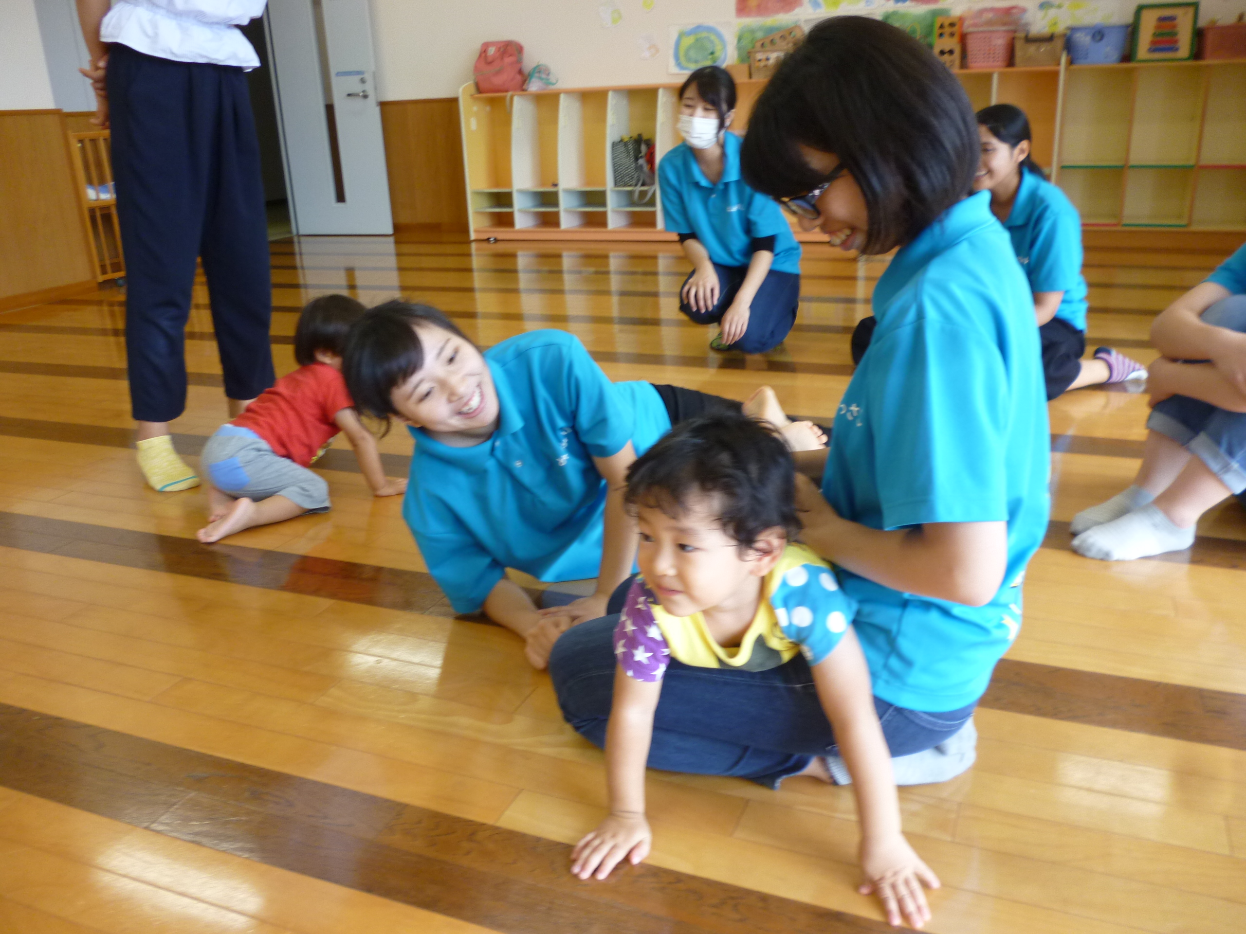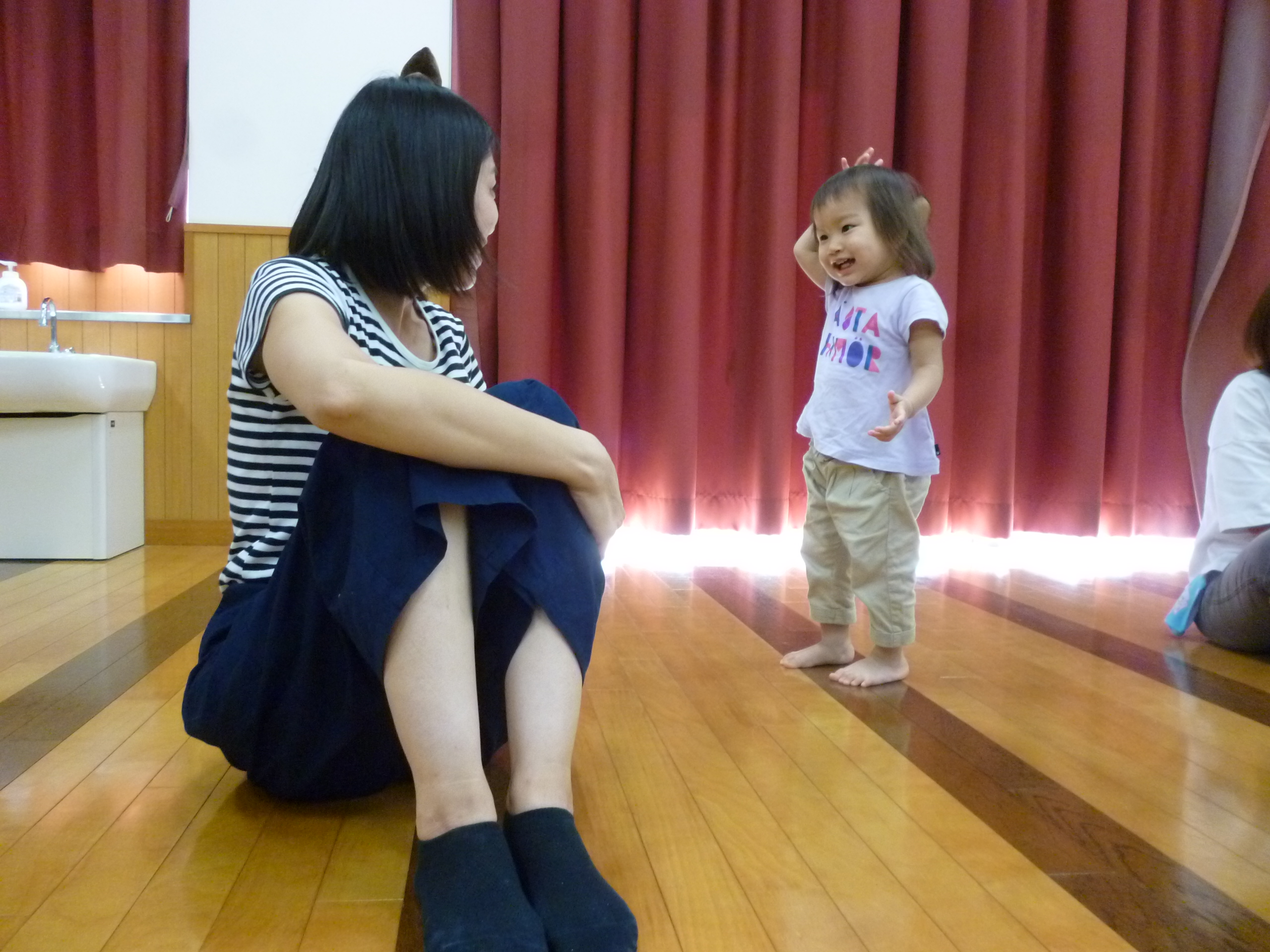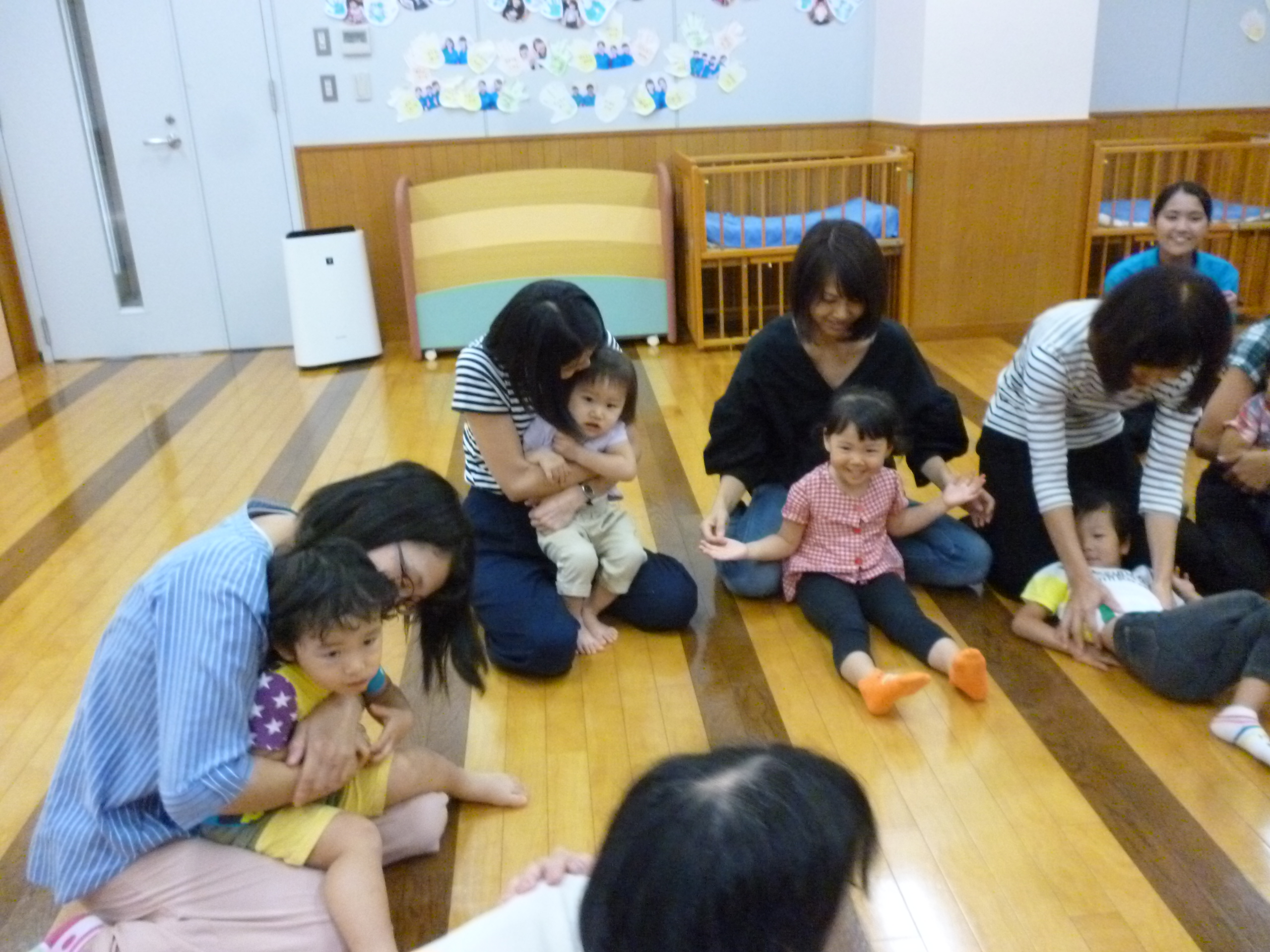 最後も馴染みのわらべうたで「ぎゅう~」っとスキンシップ。