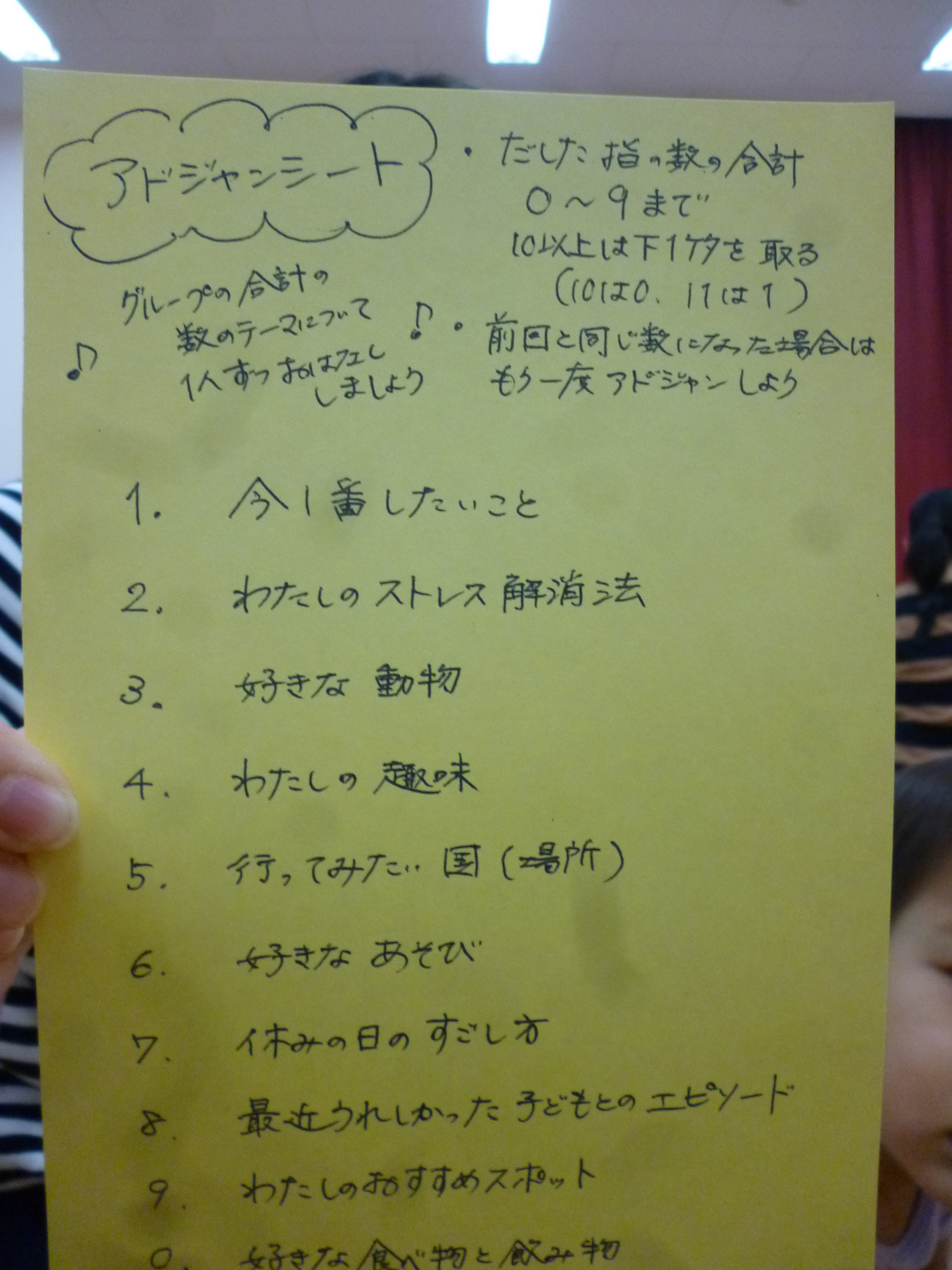 「アドジャンゲーム」でおしゃべりタイム~。まずは学生がやってみます。
