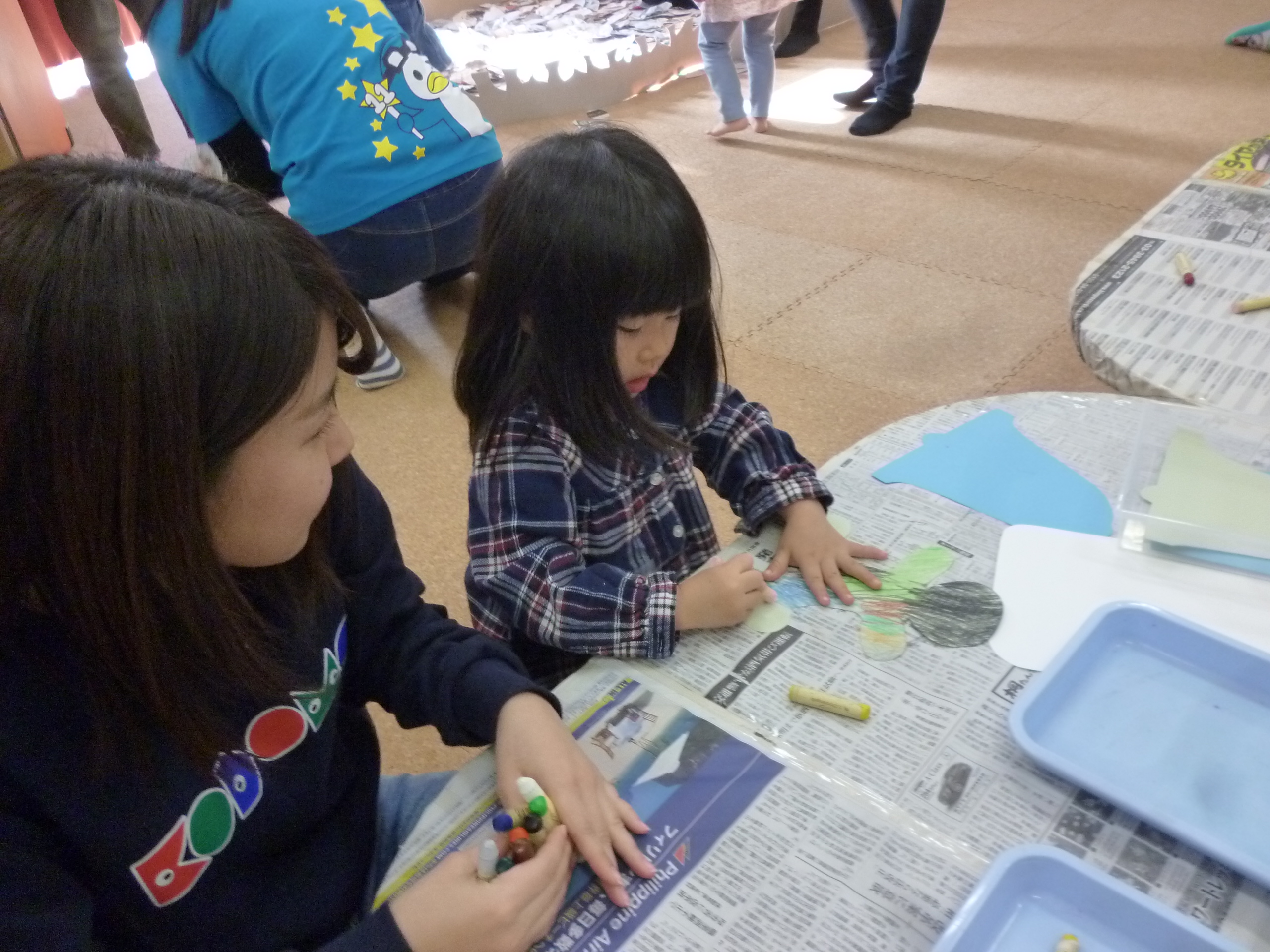 「後でツリーに飾ろうね~」優しいお姉さん(学生)と。