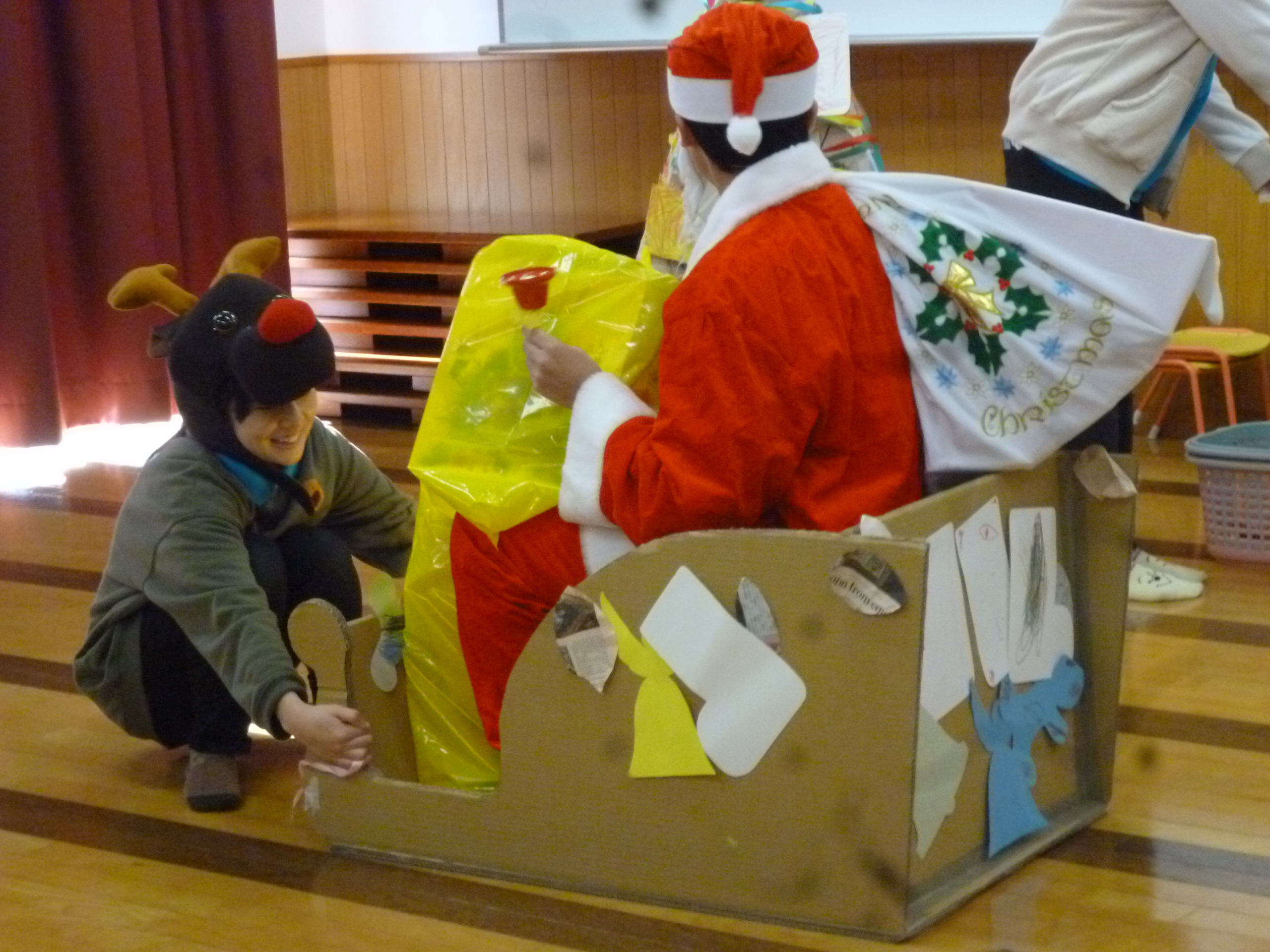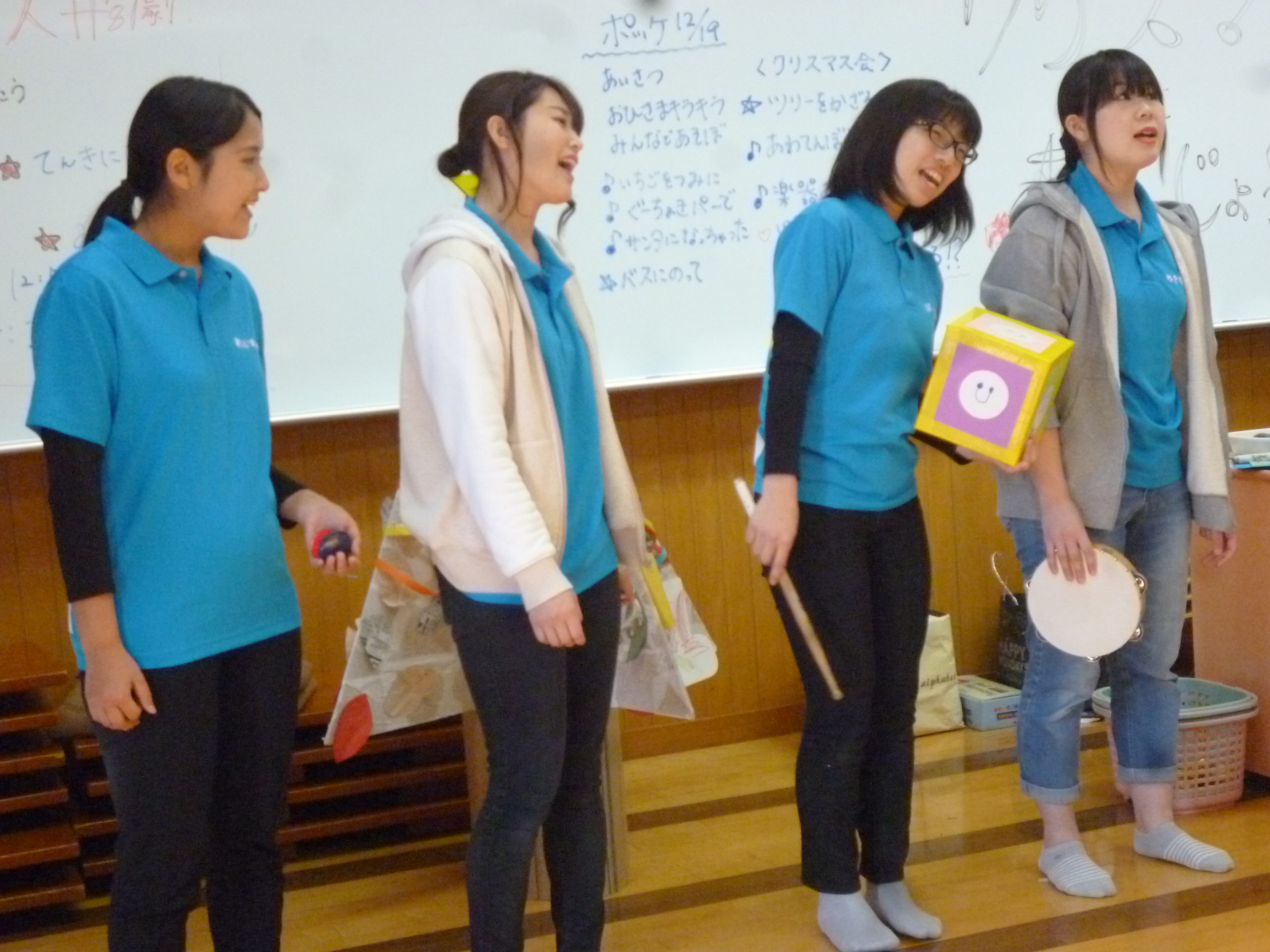 「あわてんぼうのサンタクロース」。学生による、紙芝居とそれぞれの楽器で表現。