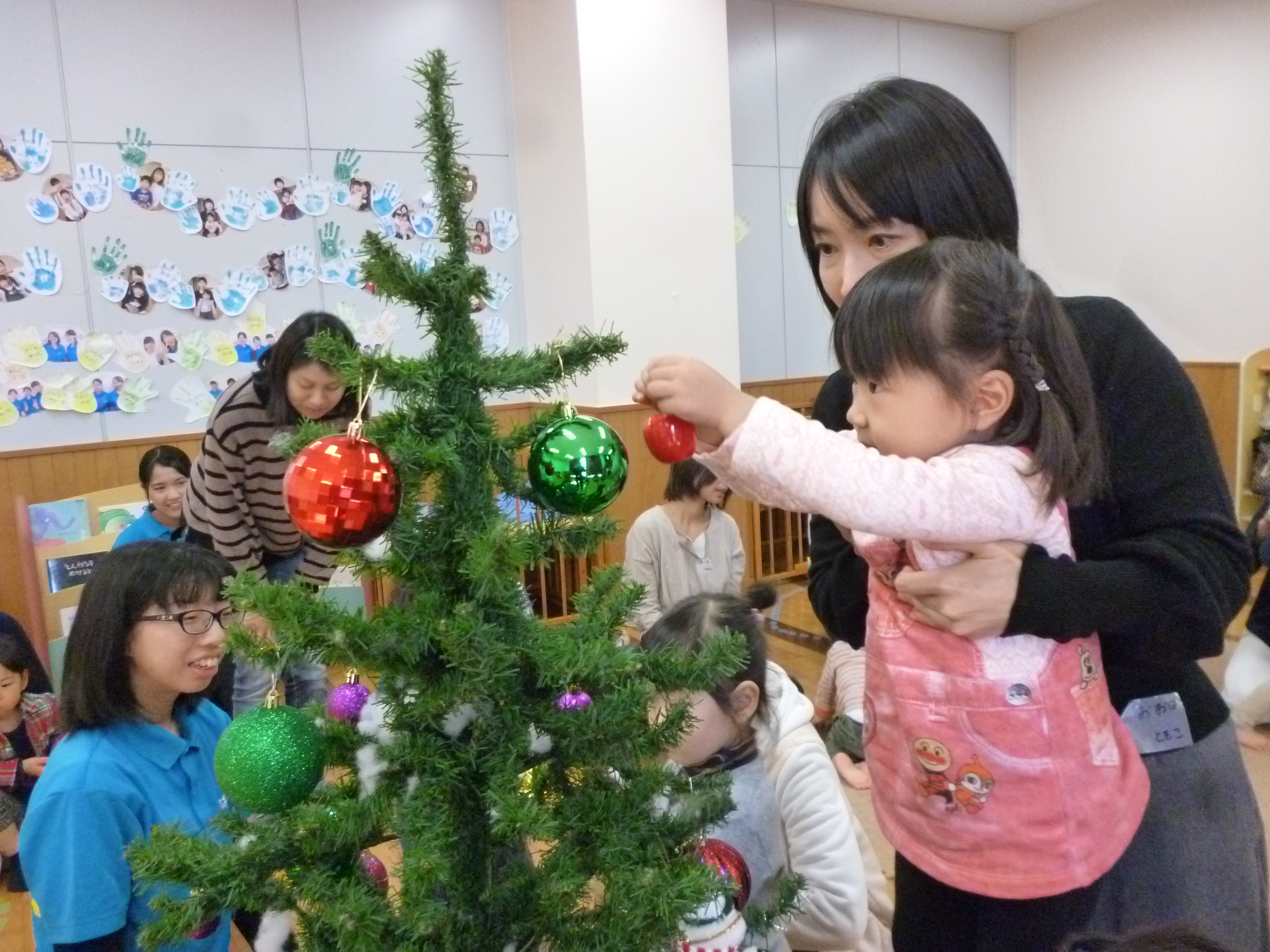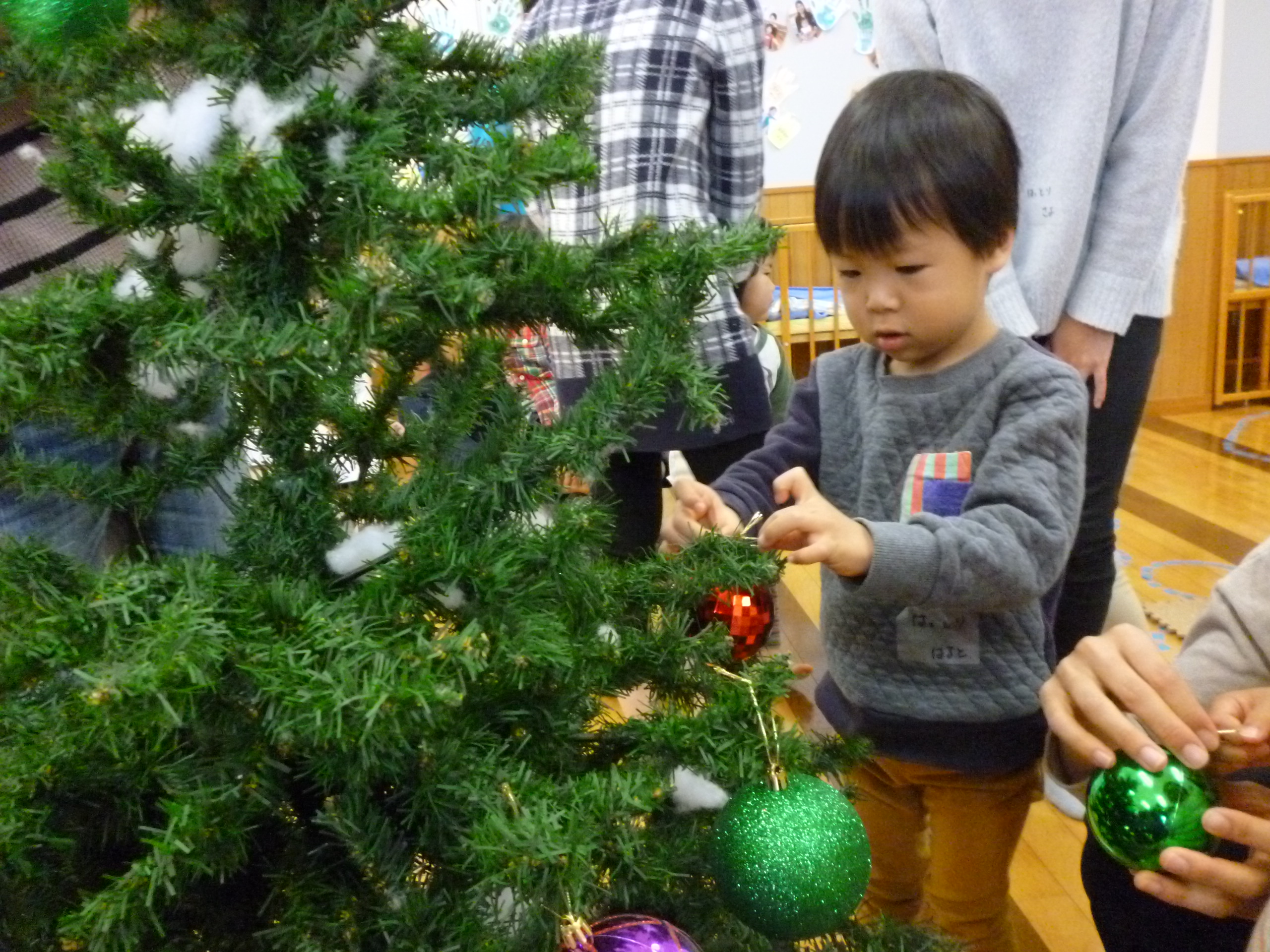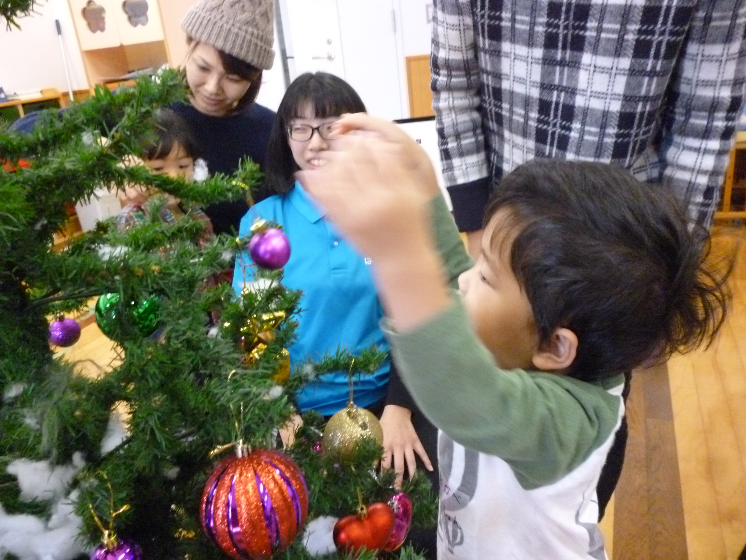 クリスマスメドレーのBGM(生演奏)の中、一つ一つ丁寧に飾り付けます。