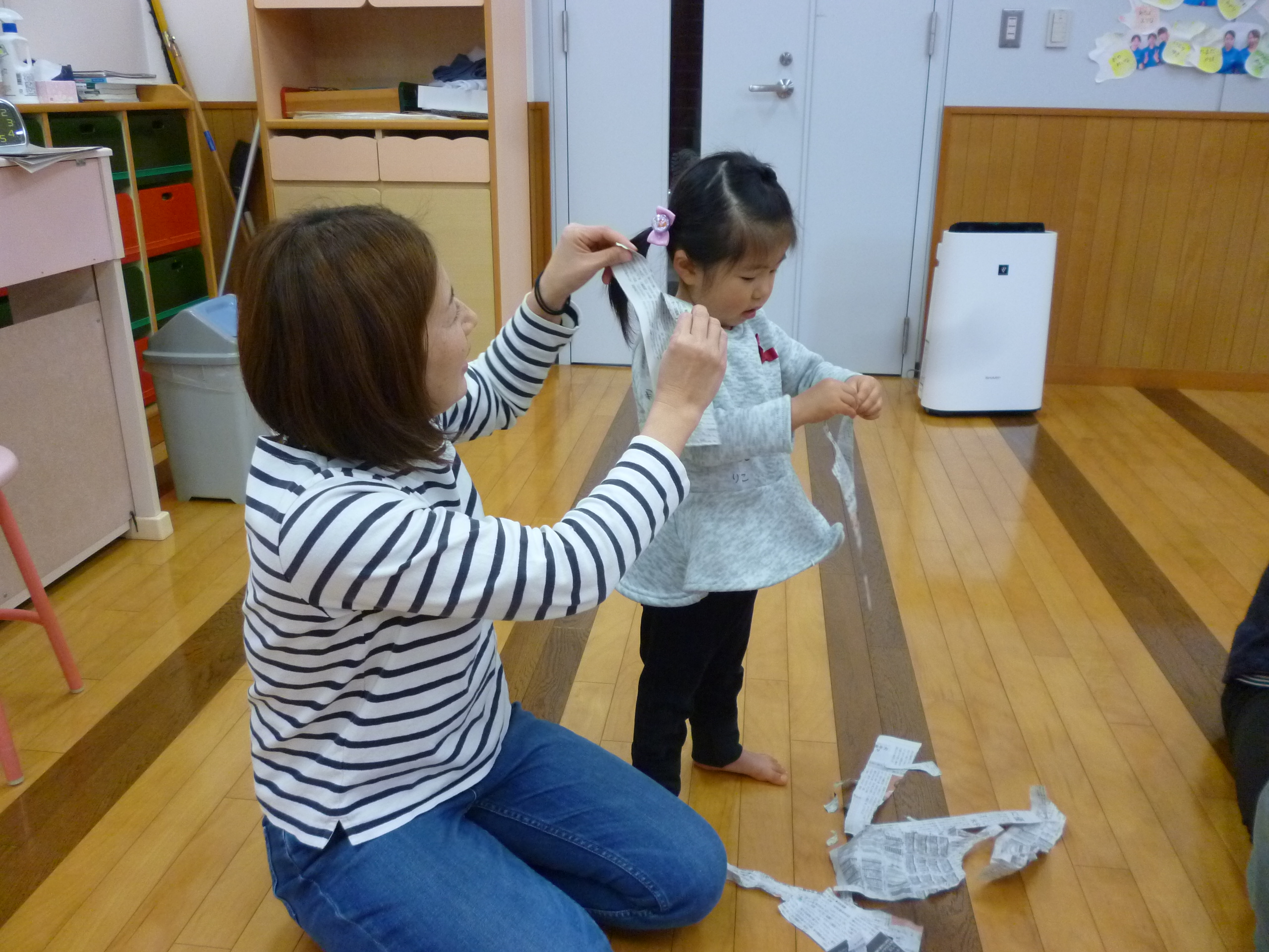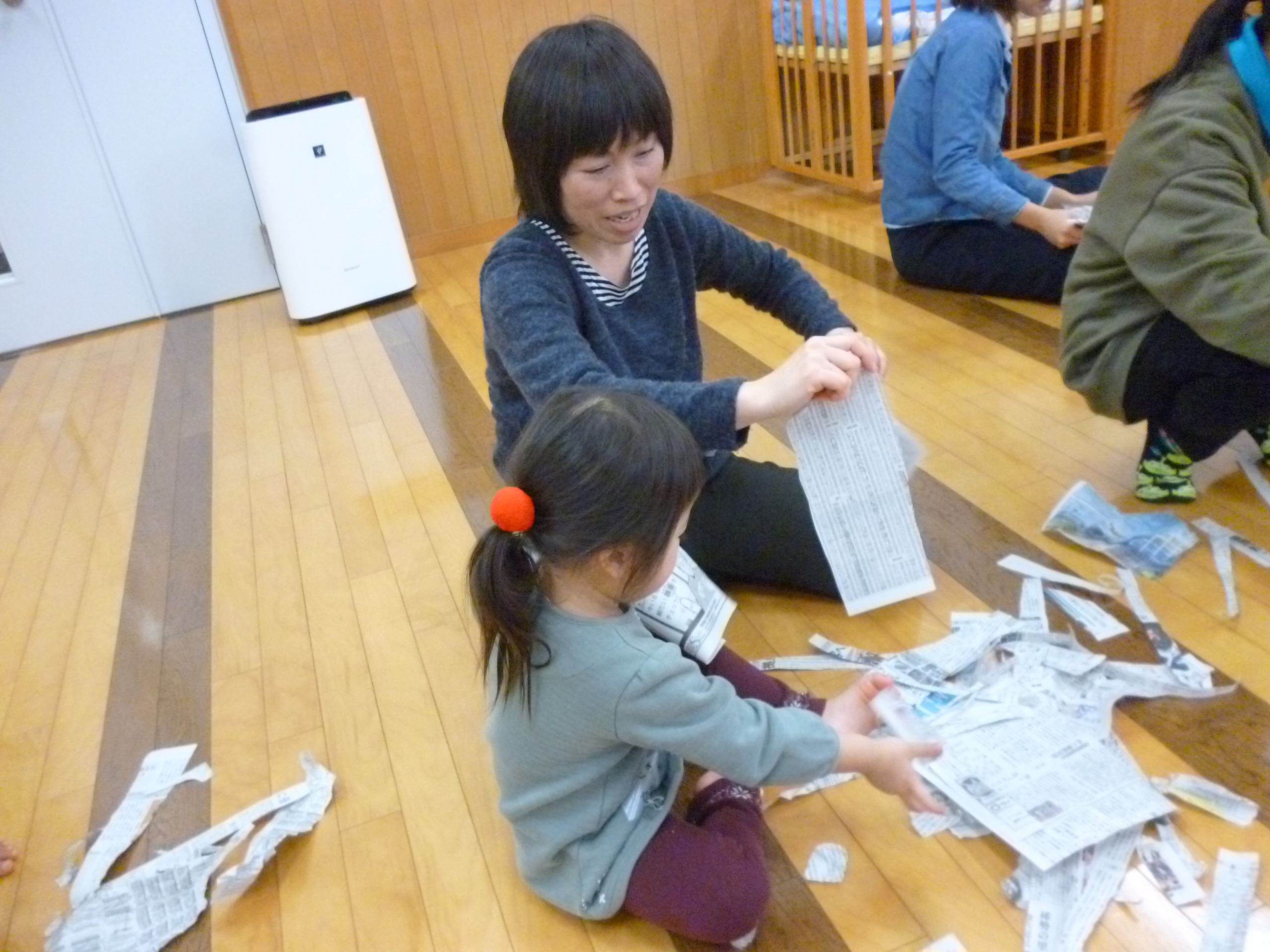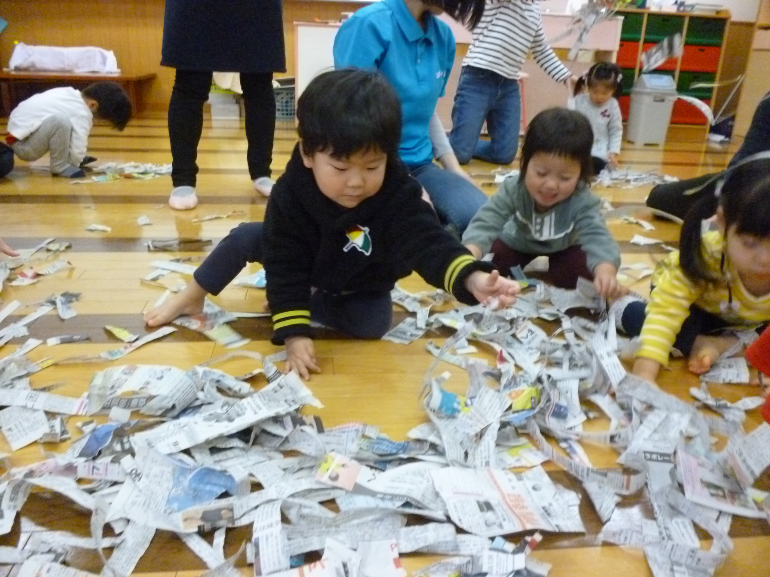それぞれ、ひたすら破いてます。破くこと自体、楽しいよ、やっぱり。