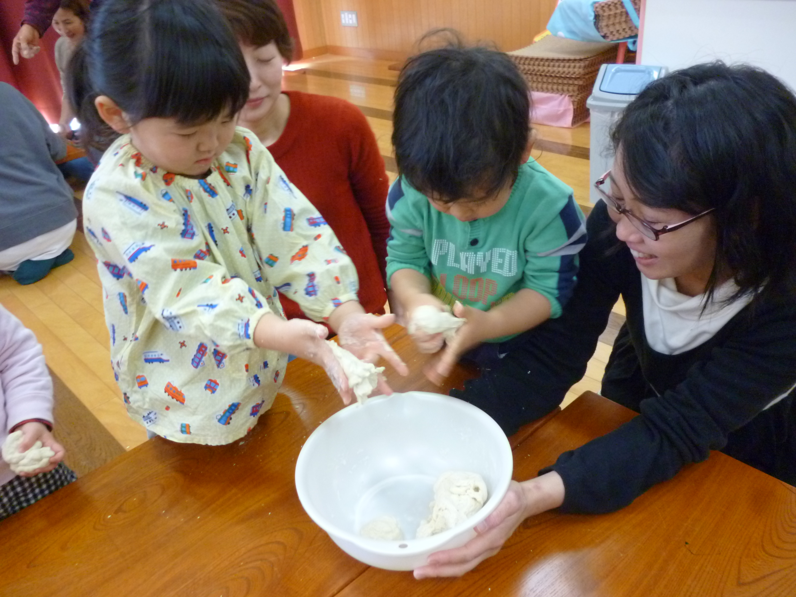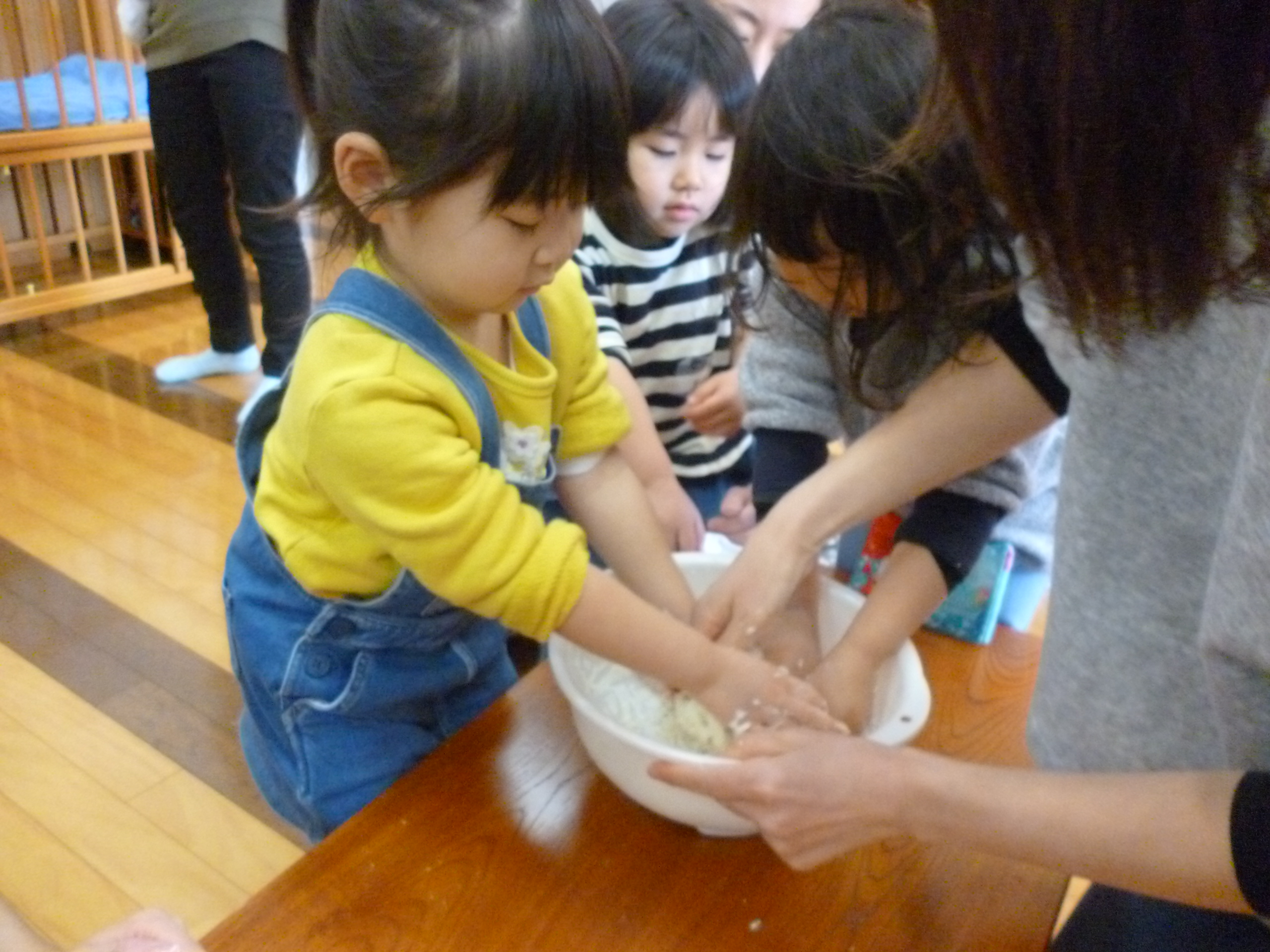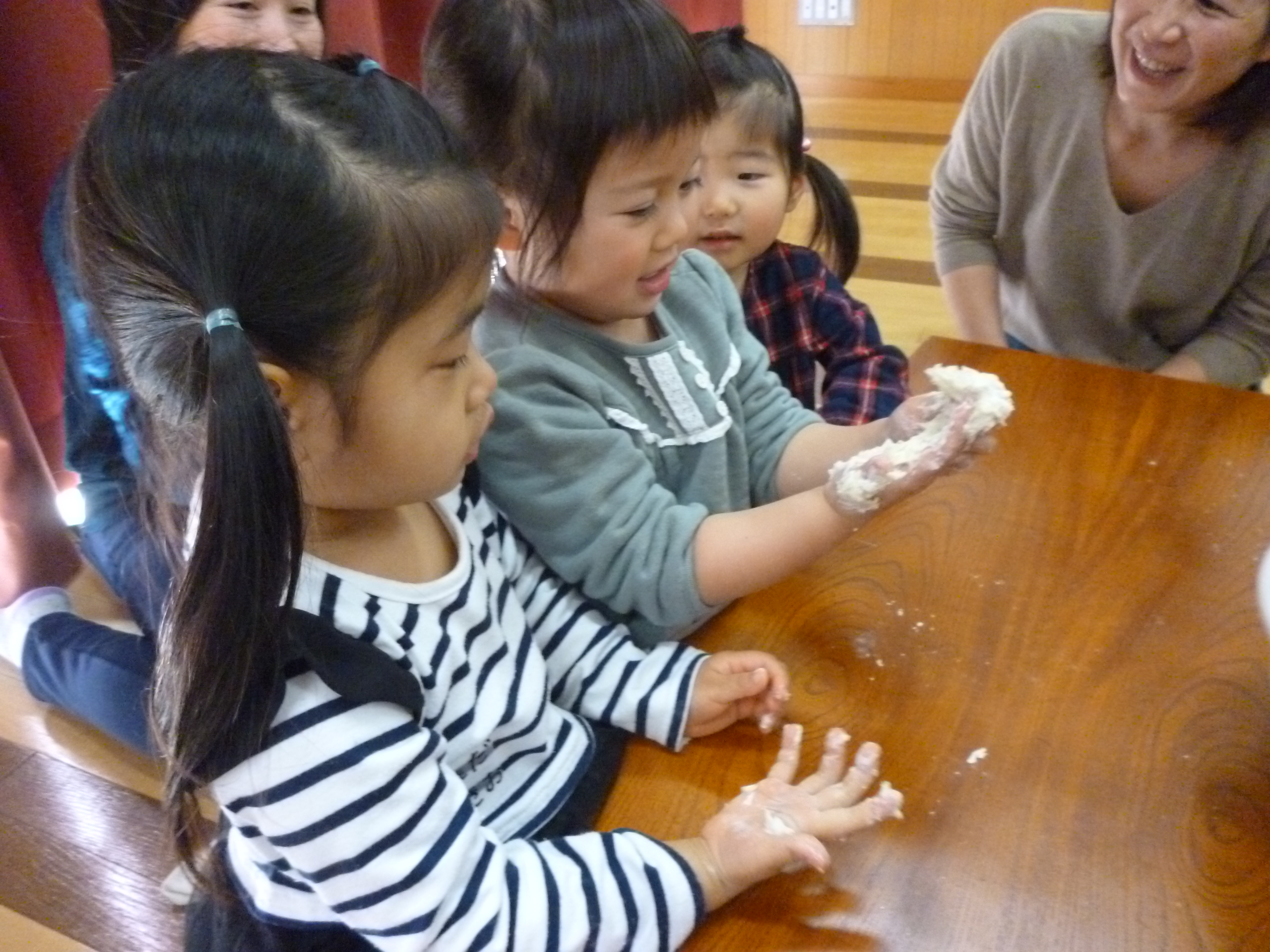 「こねるの、上手~」とお母様たちから褒められてました。ほんと、なかなかの手つきでした!