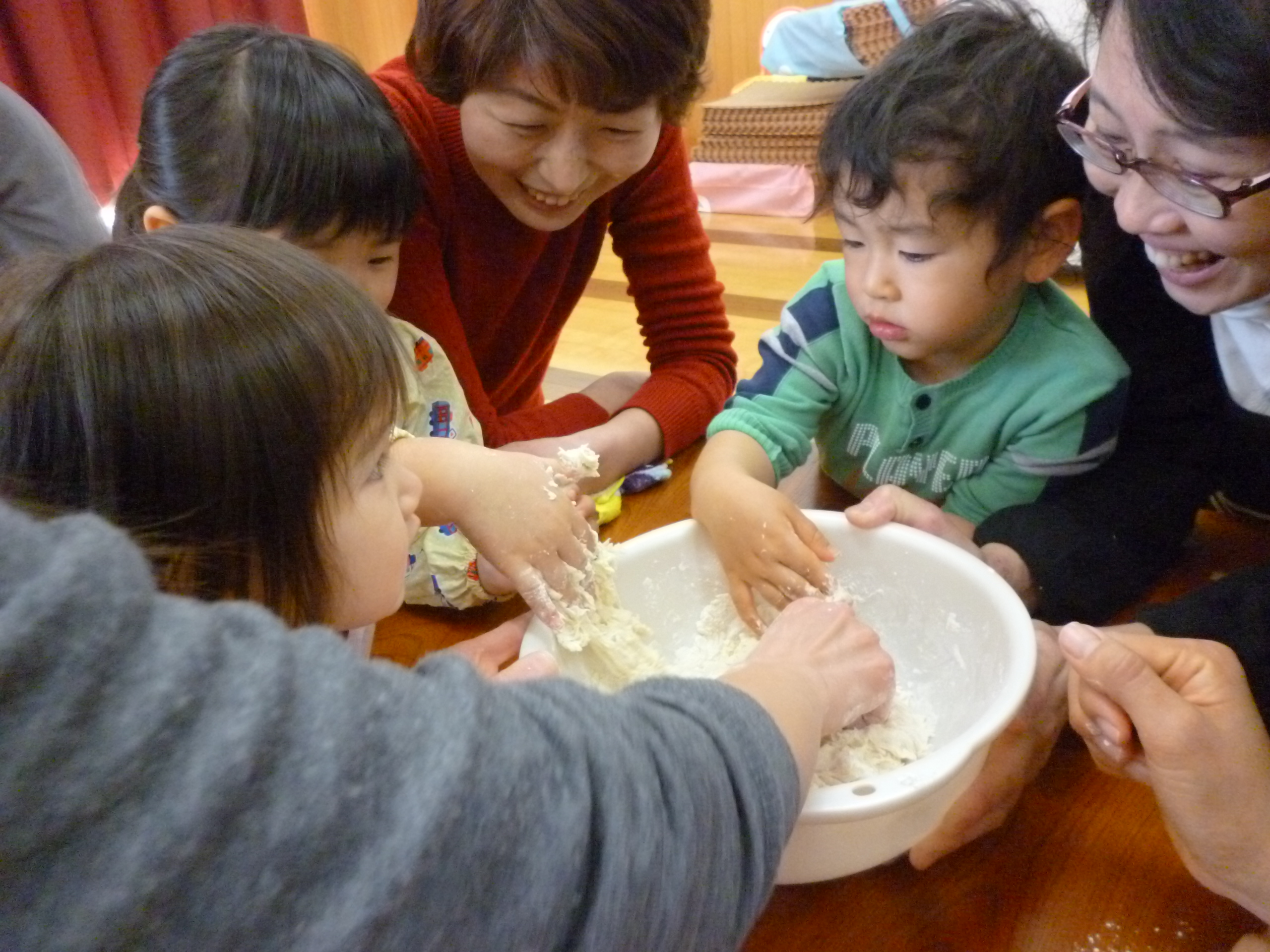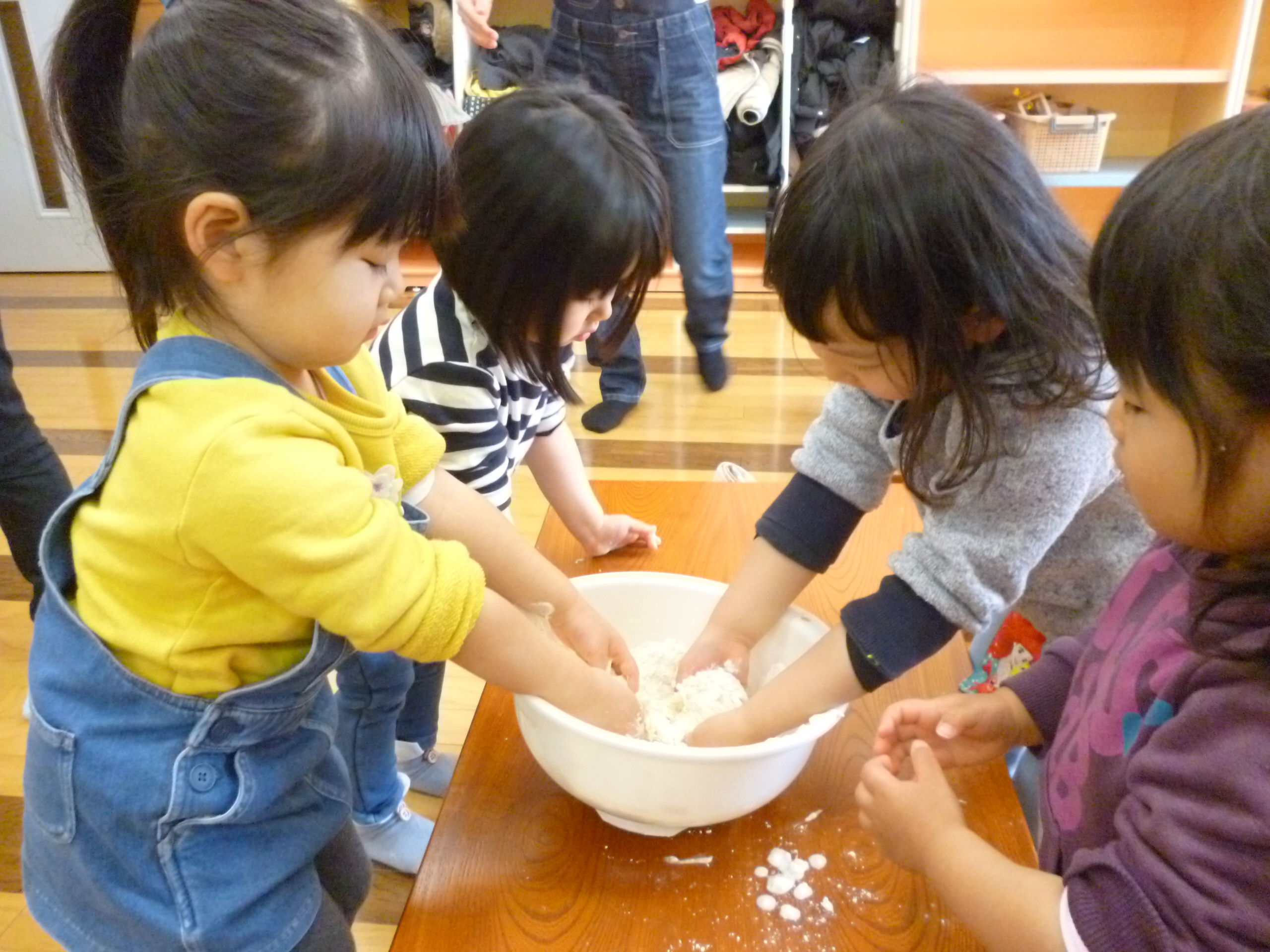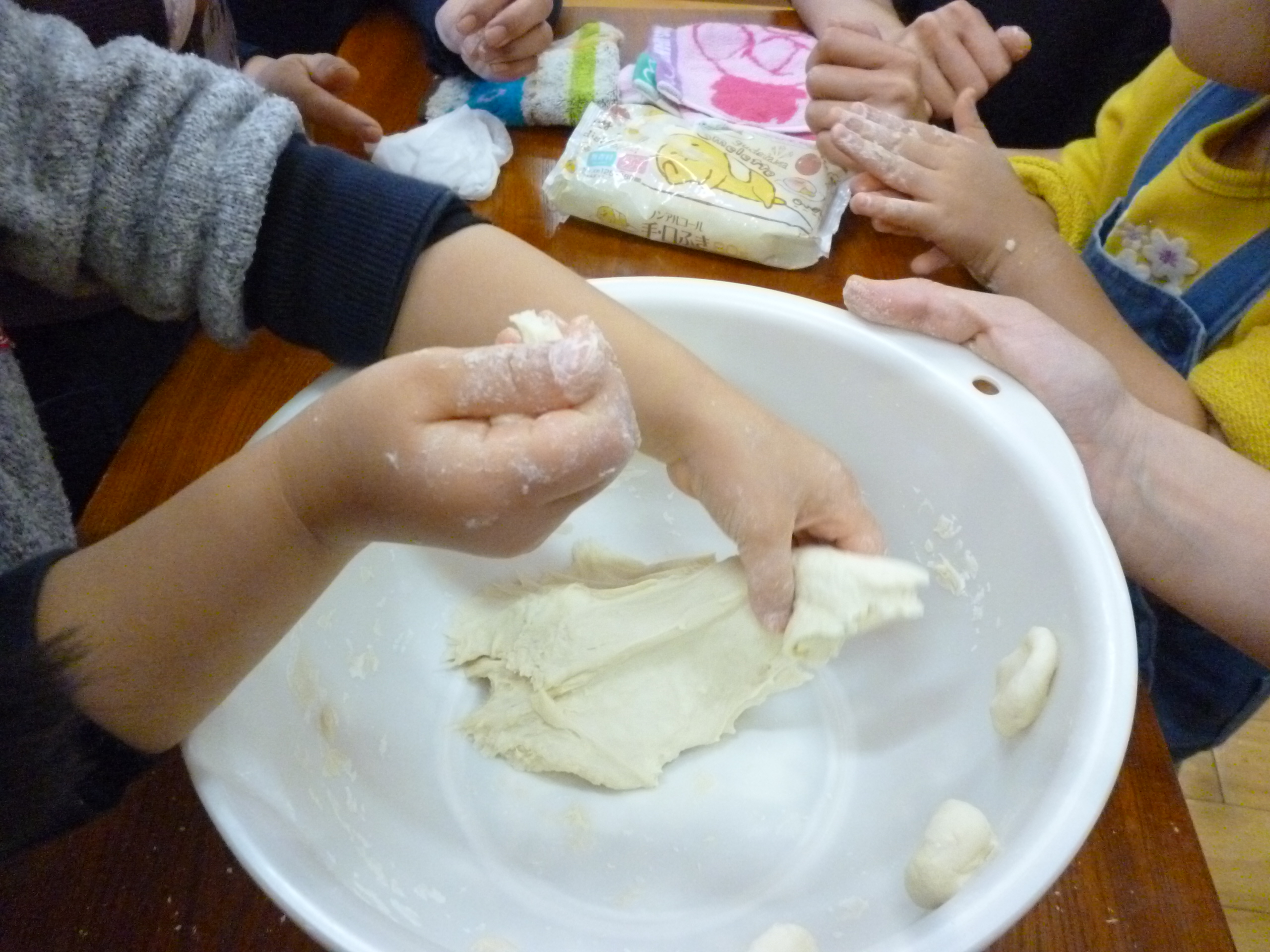 「こねるの、上手~」とお母様たちから褒められてました。ほんと、なかなかの手つきでした!