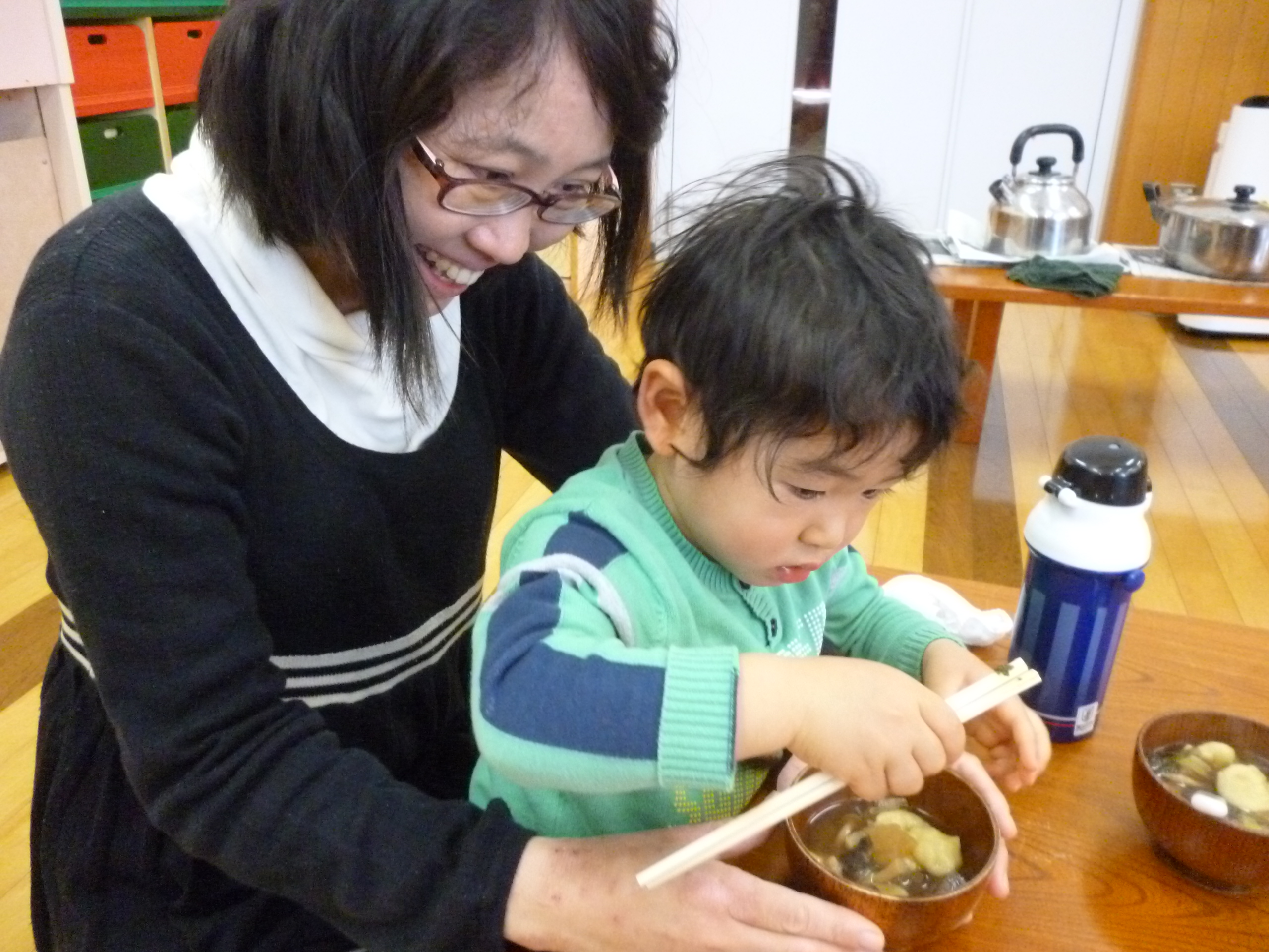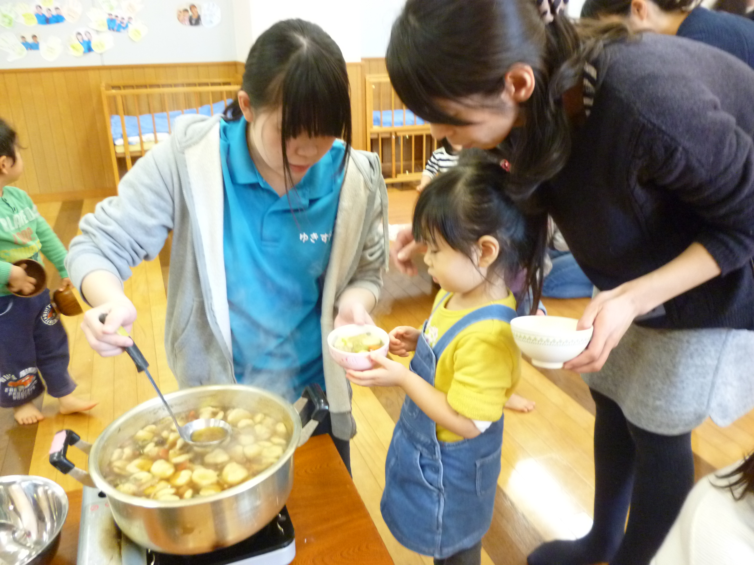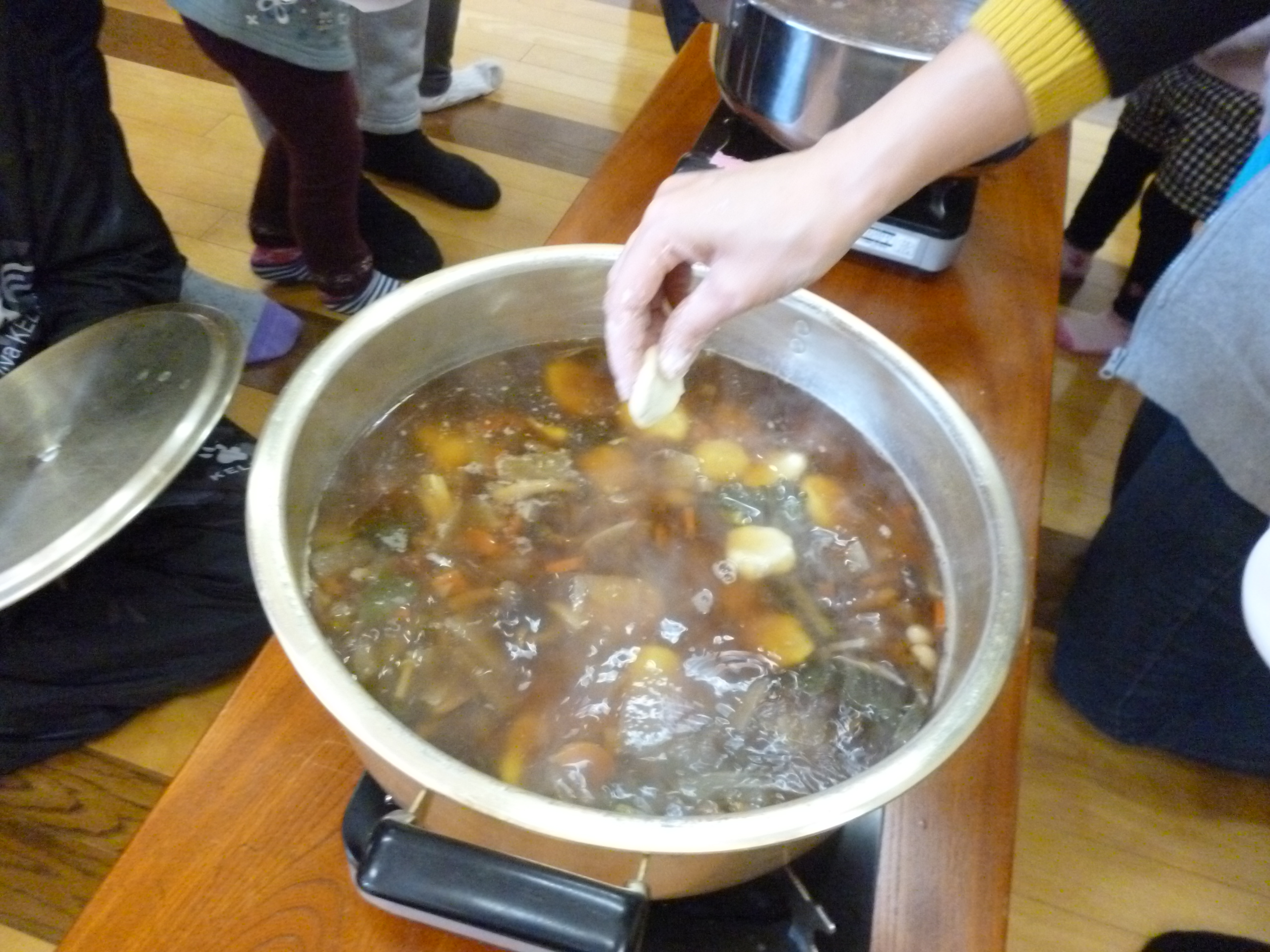 ちぎっては丸め、ペタン!・・・これが本当に楽しそうでした。最後のすいとんが煮えたら、いよいよ、みんなで「いただきま~す」
