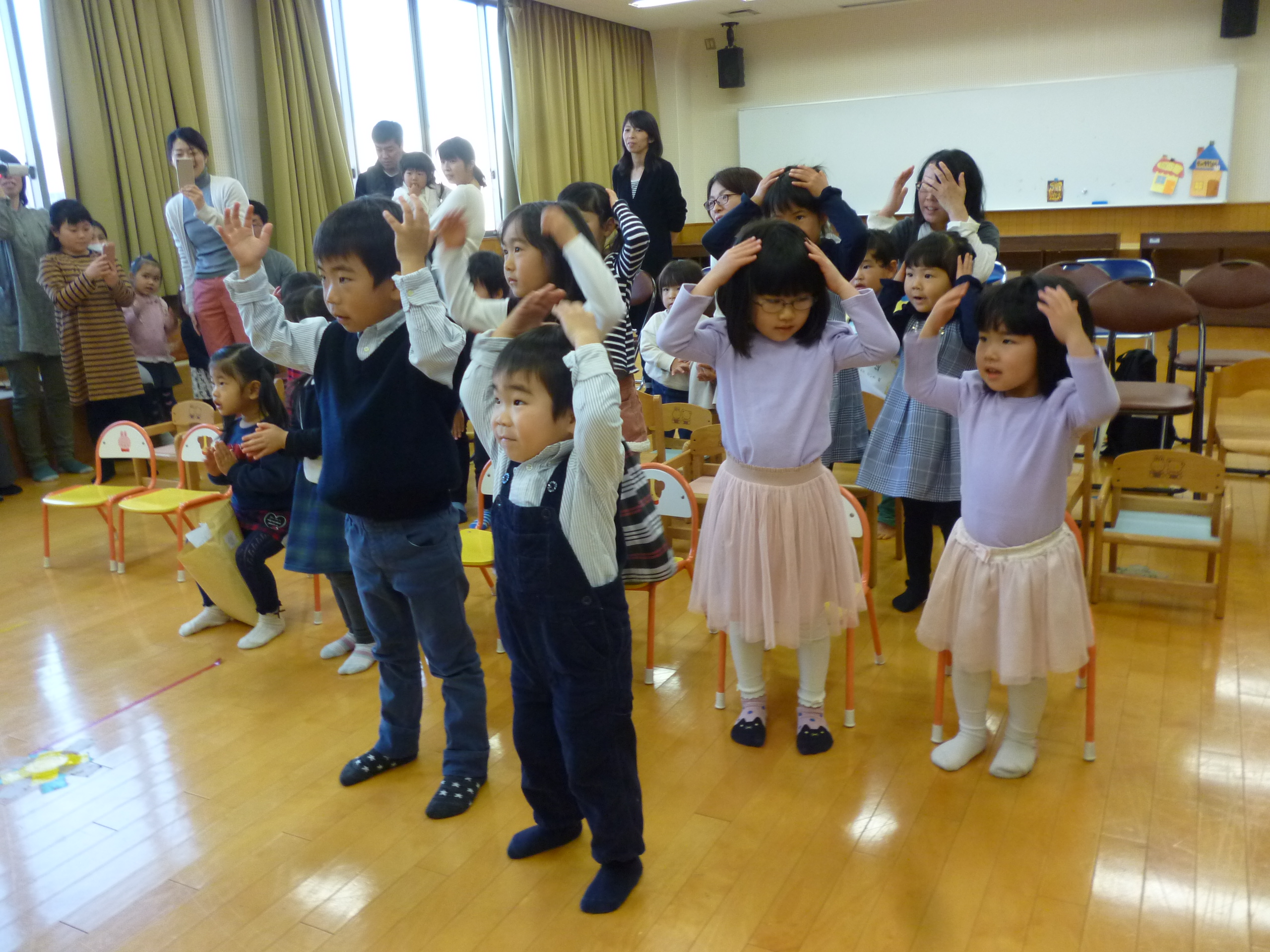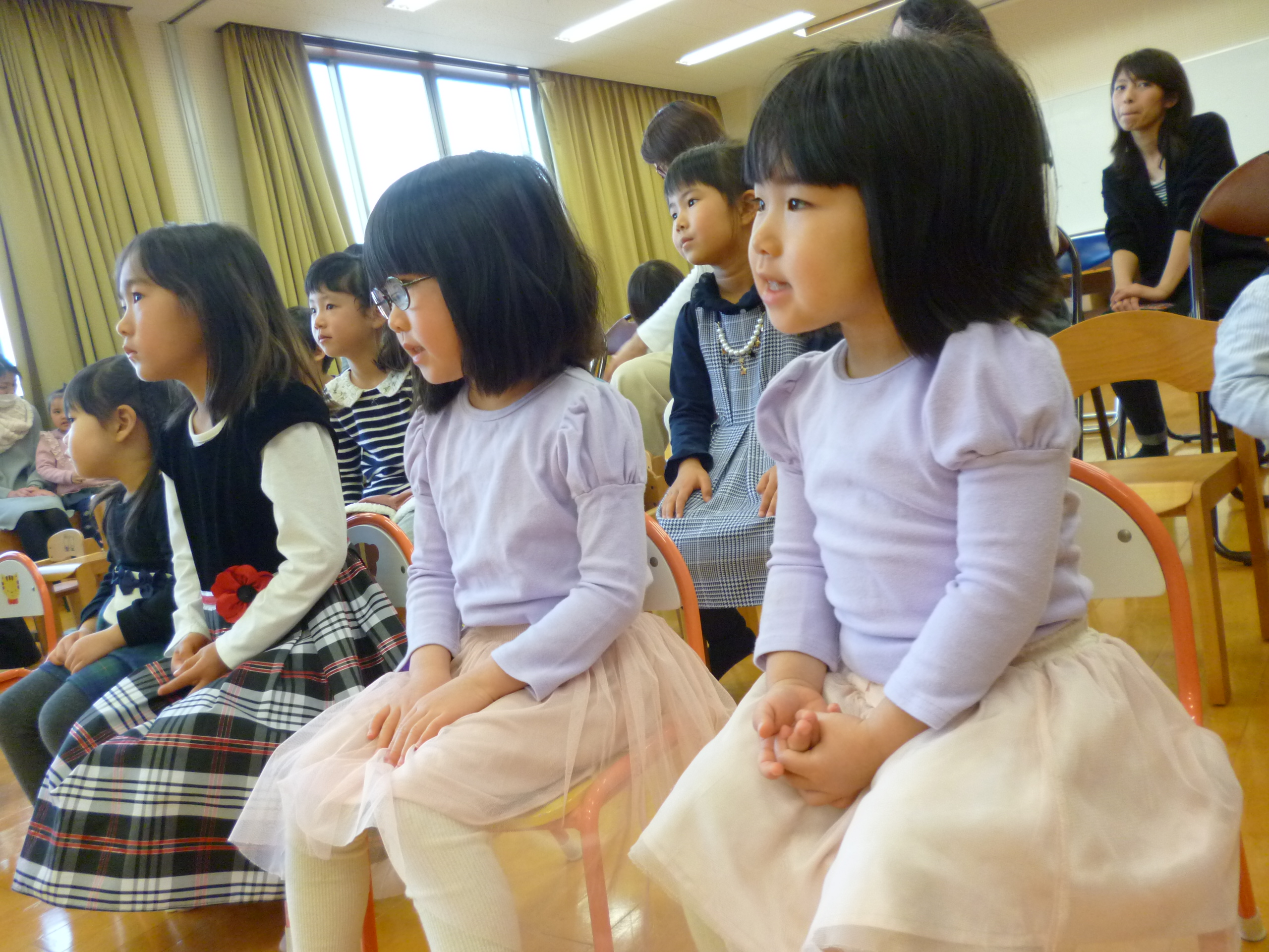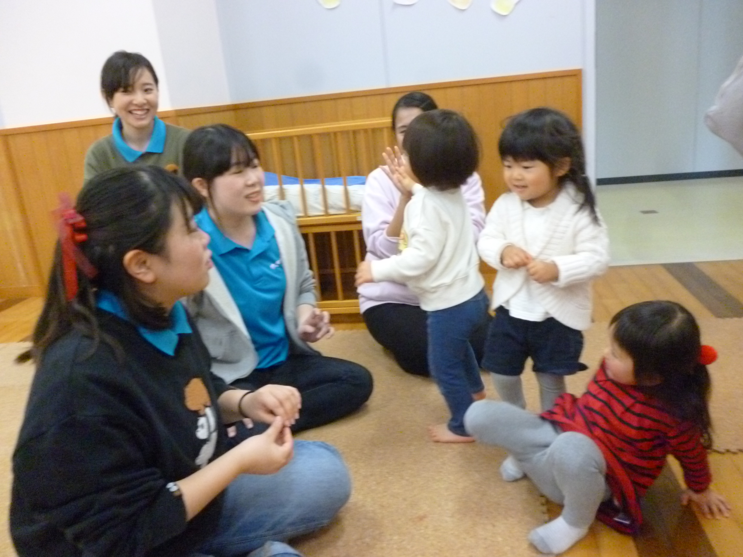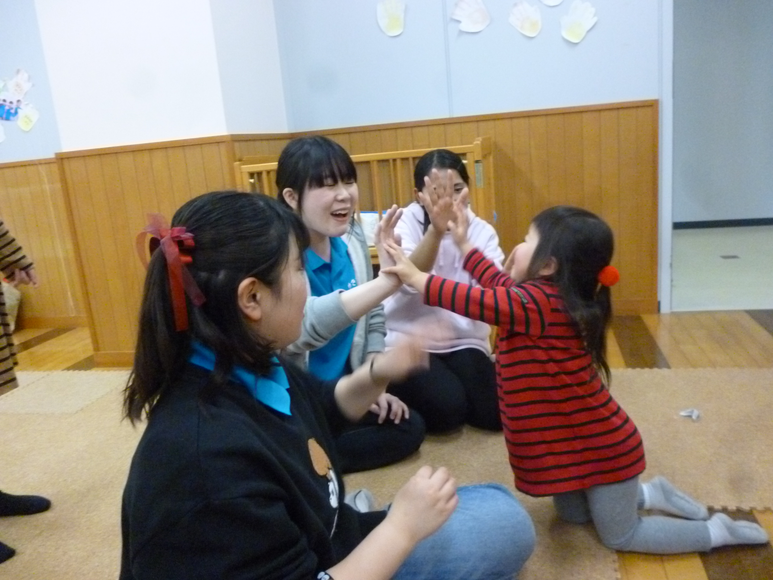 「あそぼ~」という子も・・・。たくさん遊んだお姉さんたちとの別れや長年お世話になったお二人の先生方とのお別れもあり、淋しい気持ちも・・・。