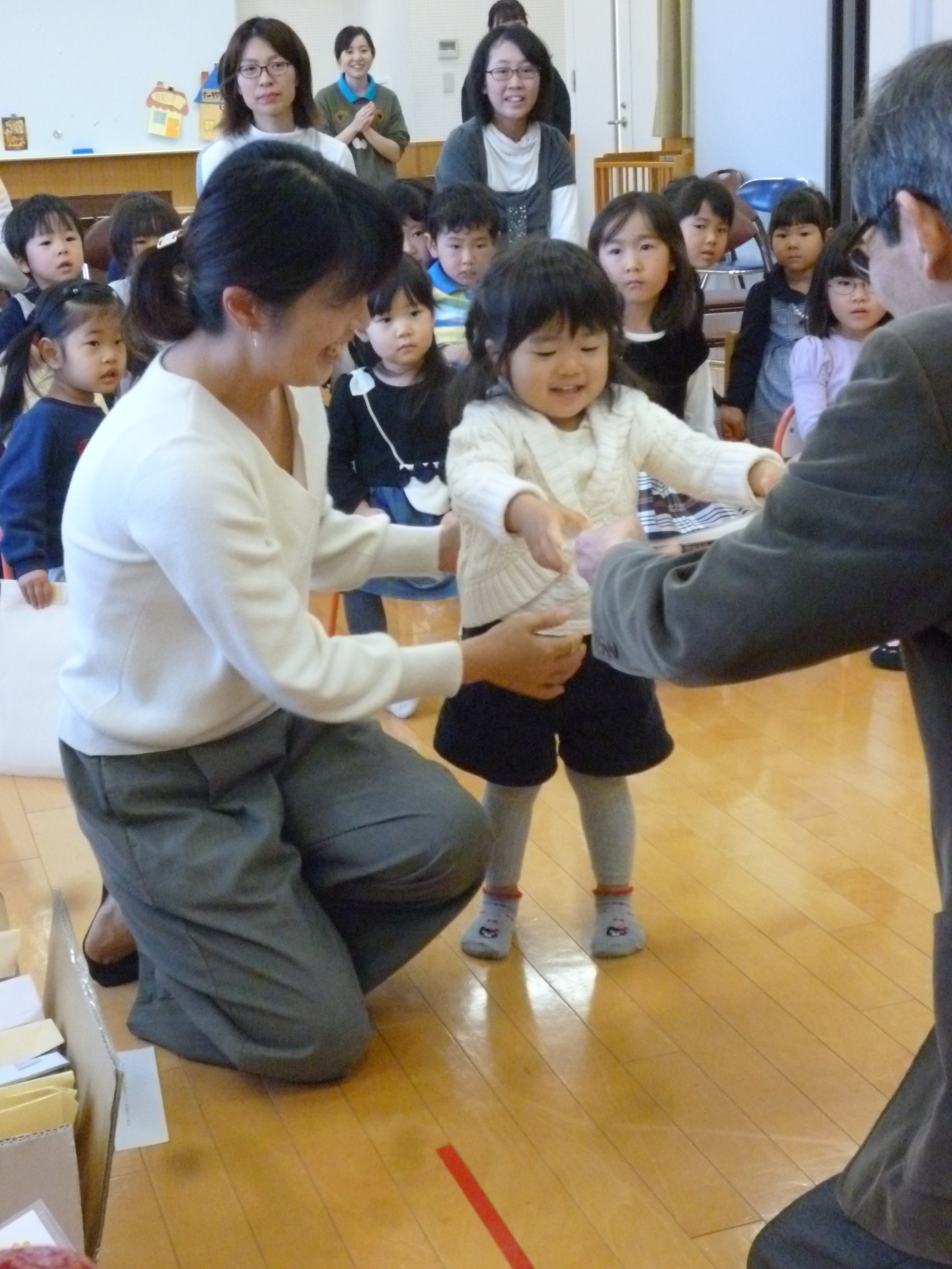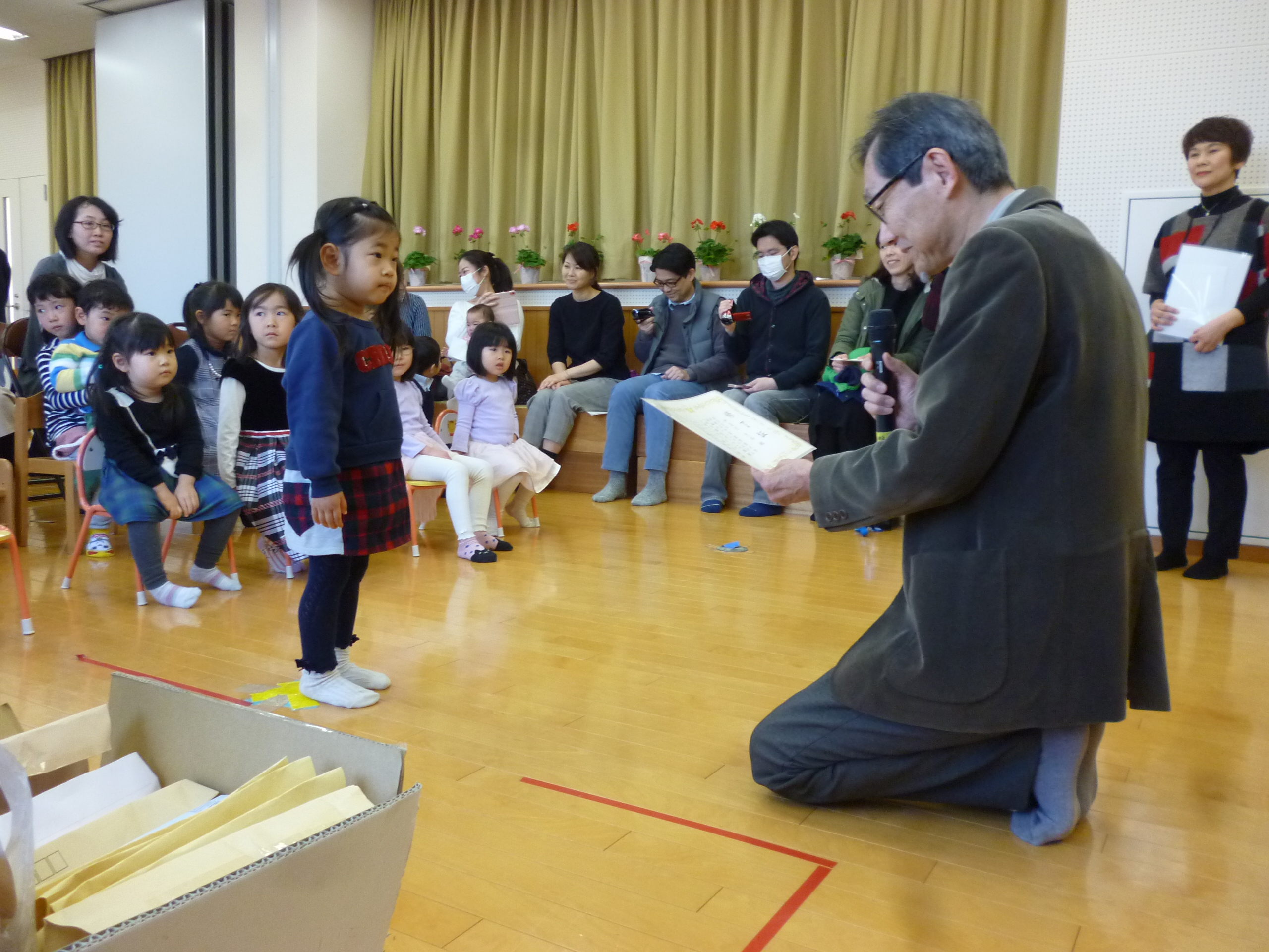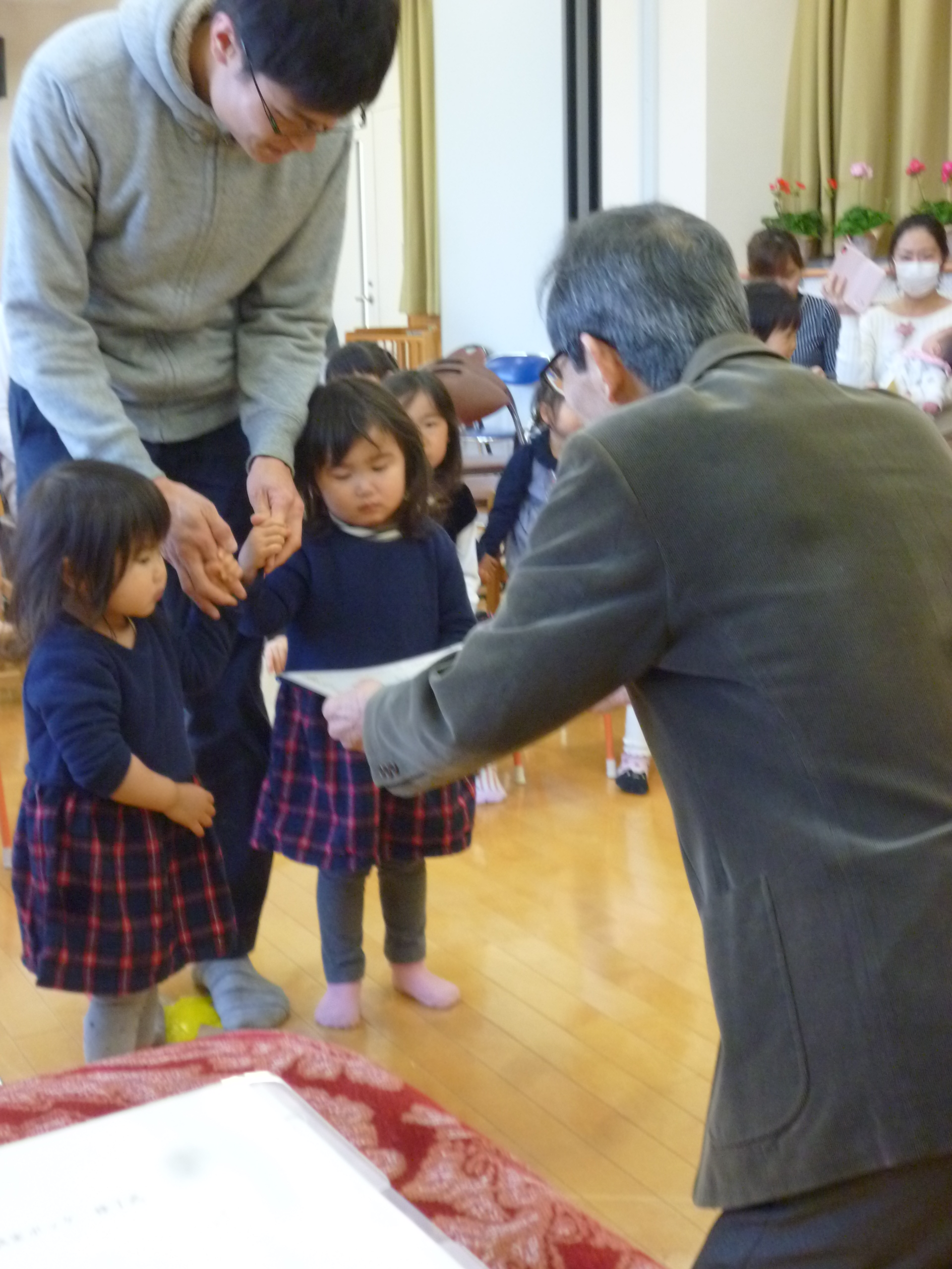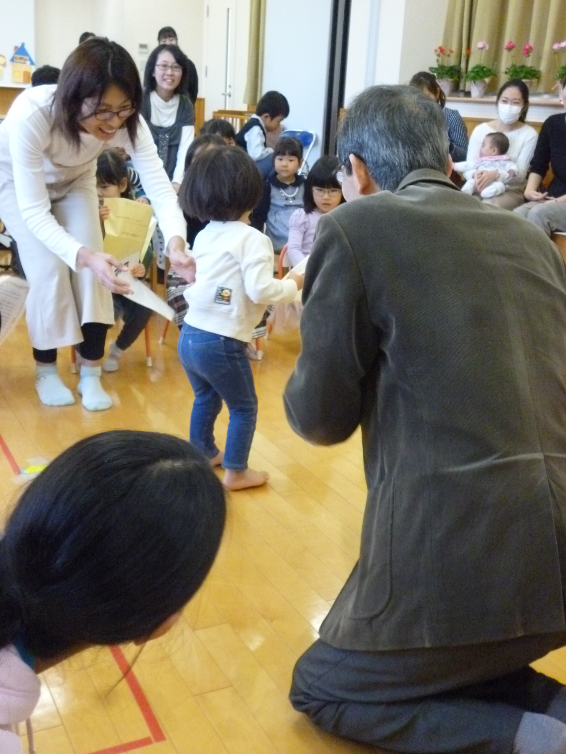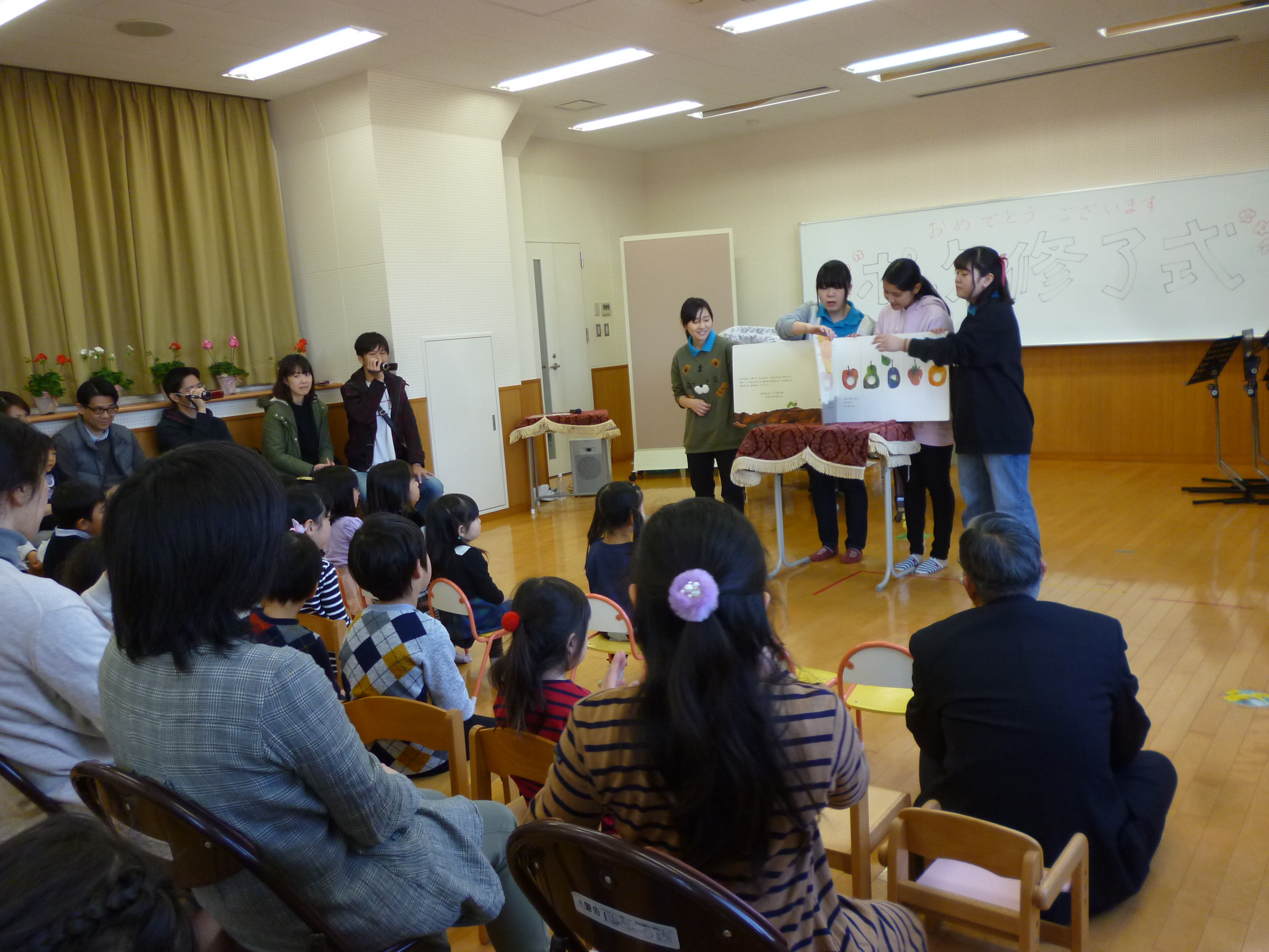 「あそぼ~」という子も・・・。たくさん遊んだお姉さんたちとの別れや長年お世話になったお二人の先生方とのお別れもあり、淋しい気持ちも・・・。