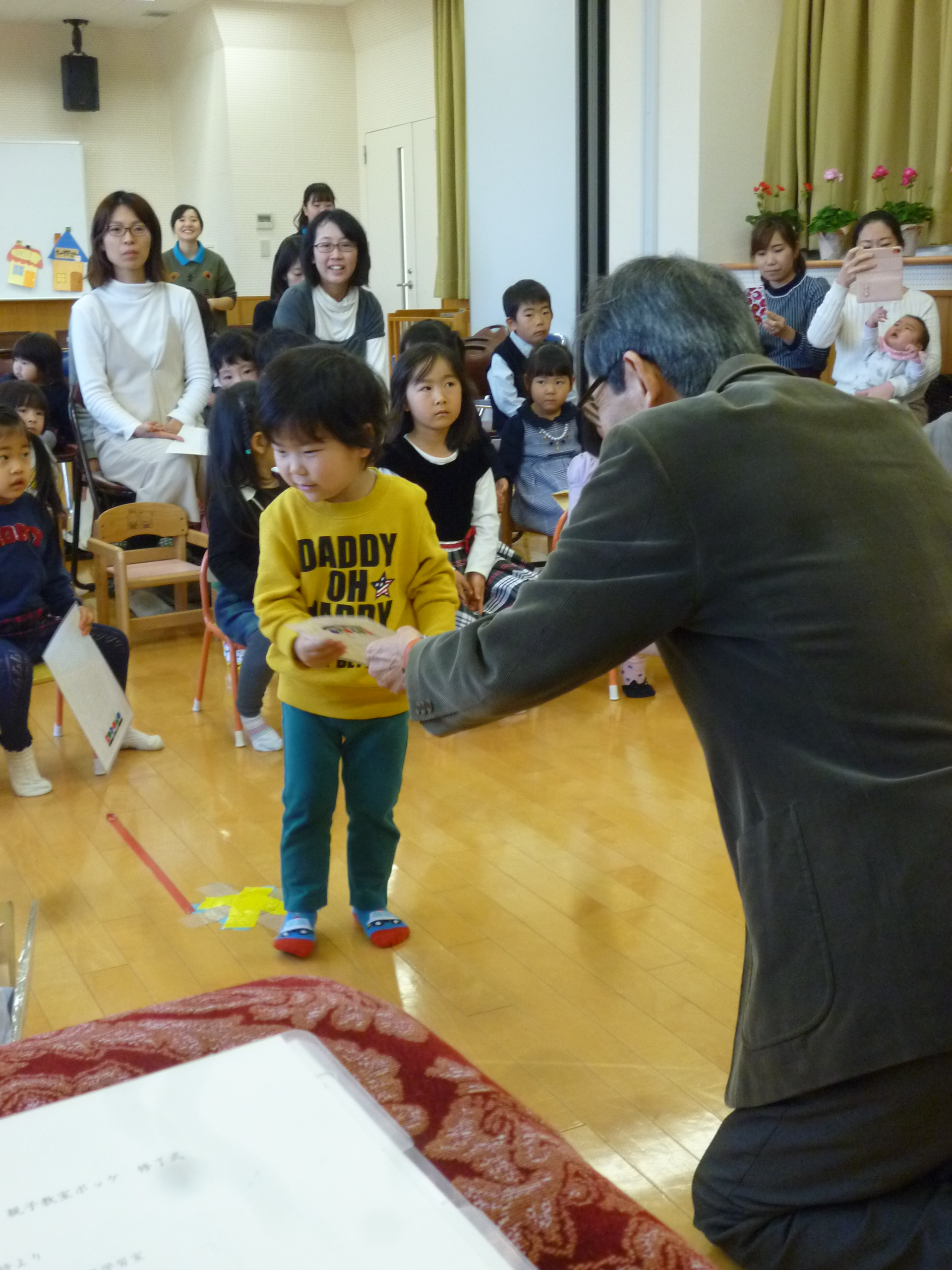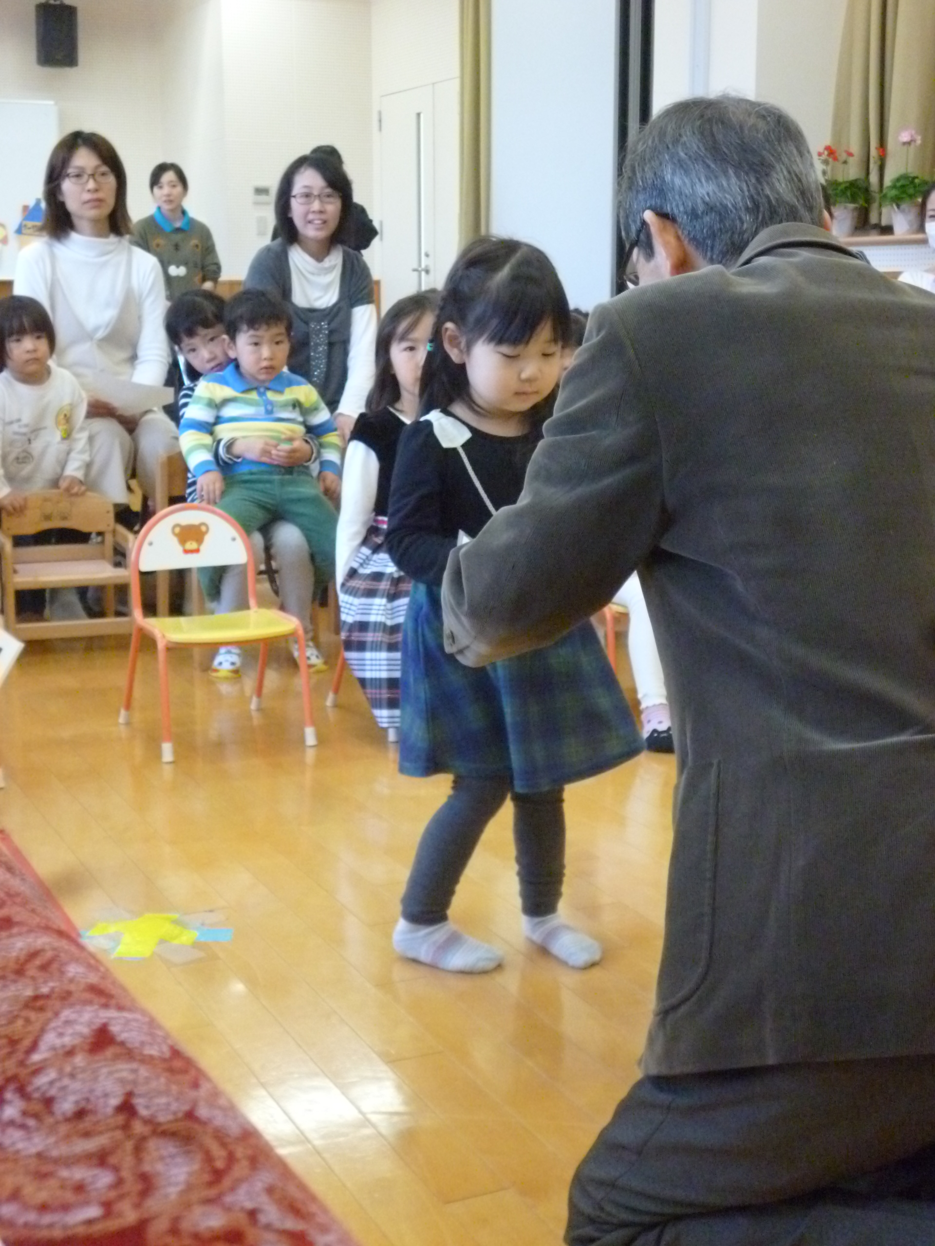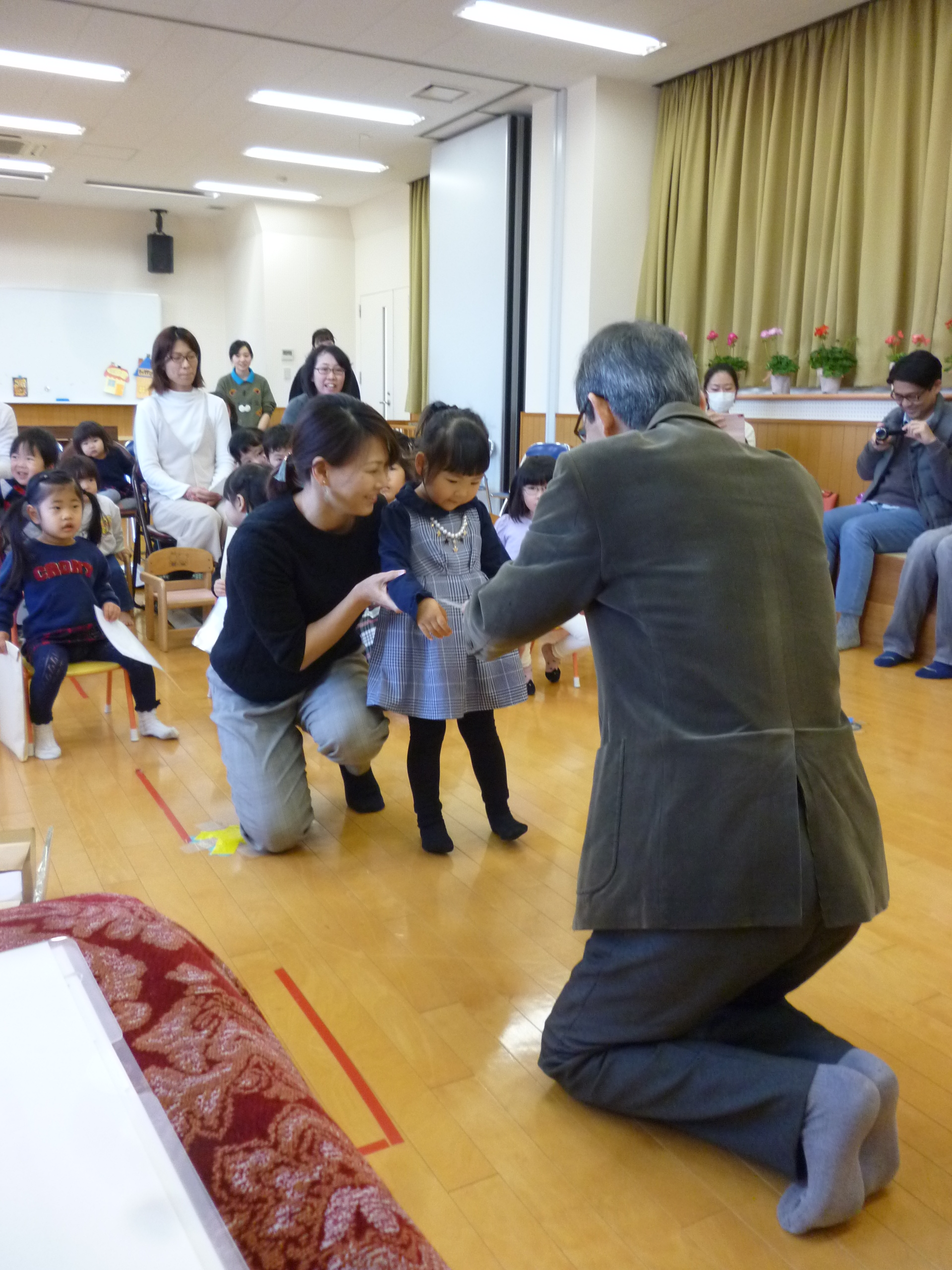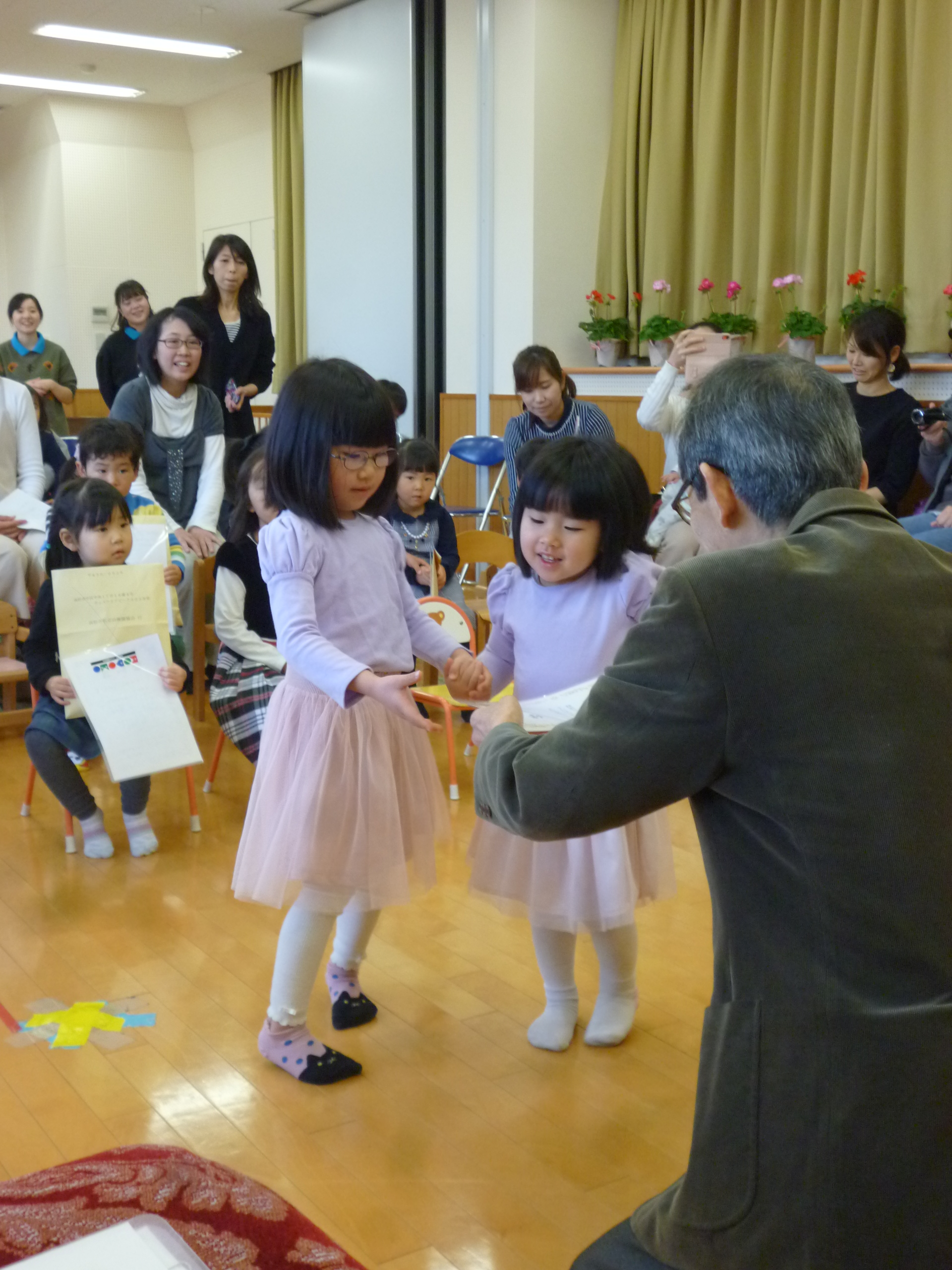 「あそぼ~」という子も・・・。たくさん遊んだお姉さんたちとの別れや長年お世話になったお二人の先生方とのお別れもあり、淋しい気持ちも・・・。