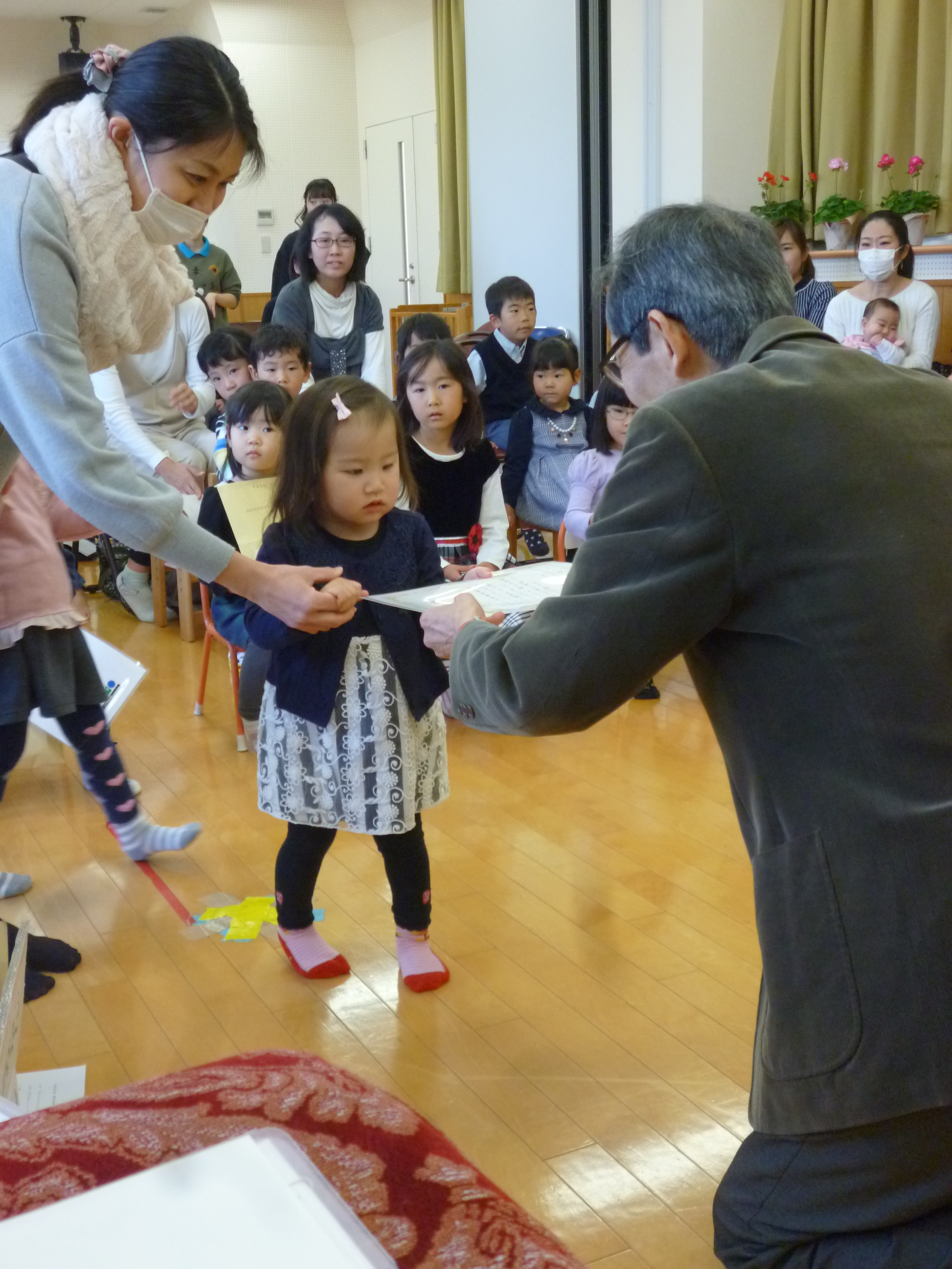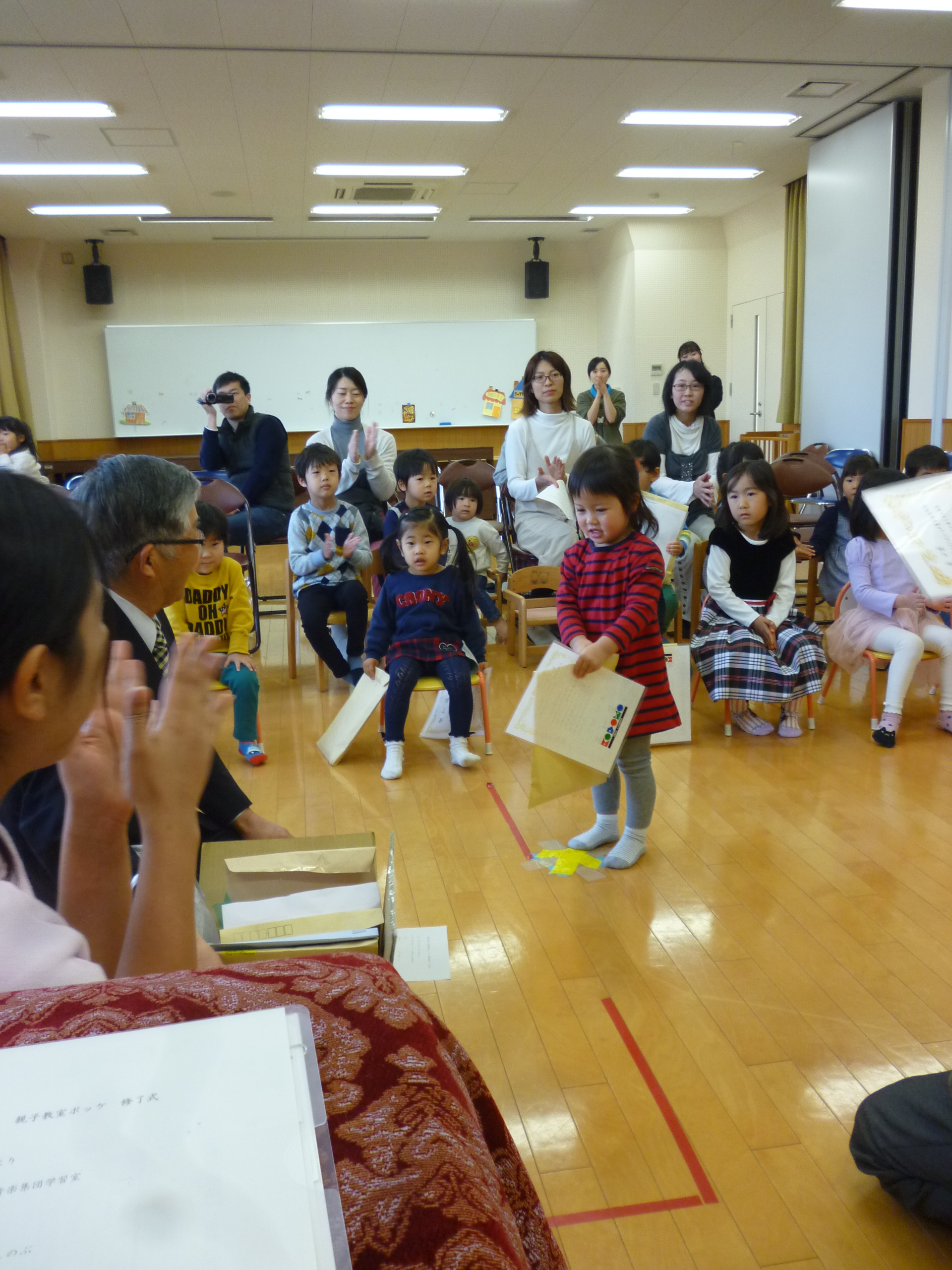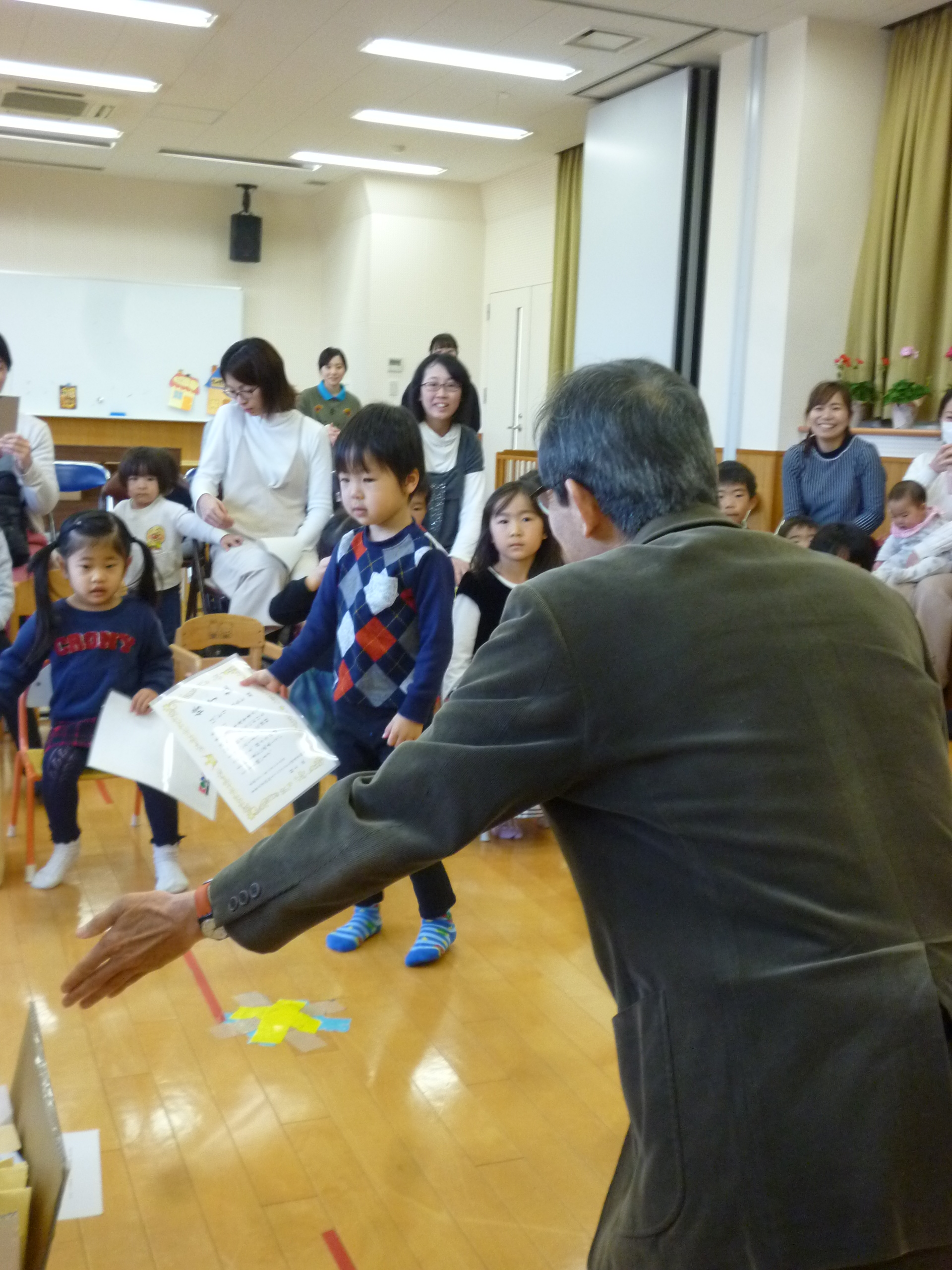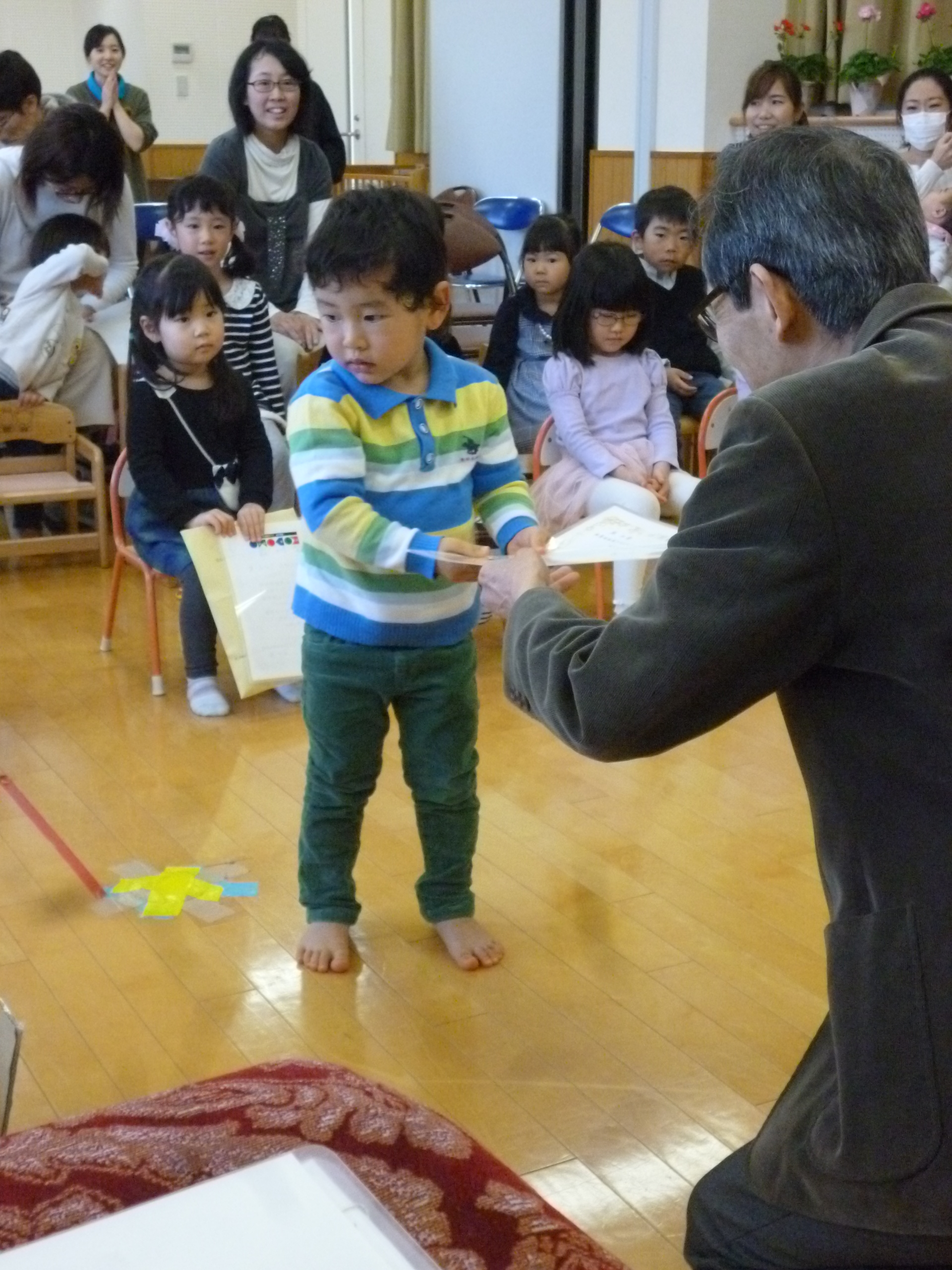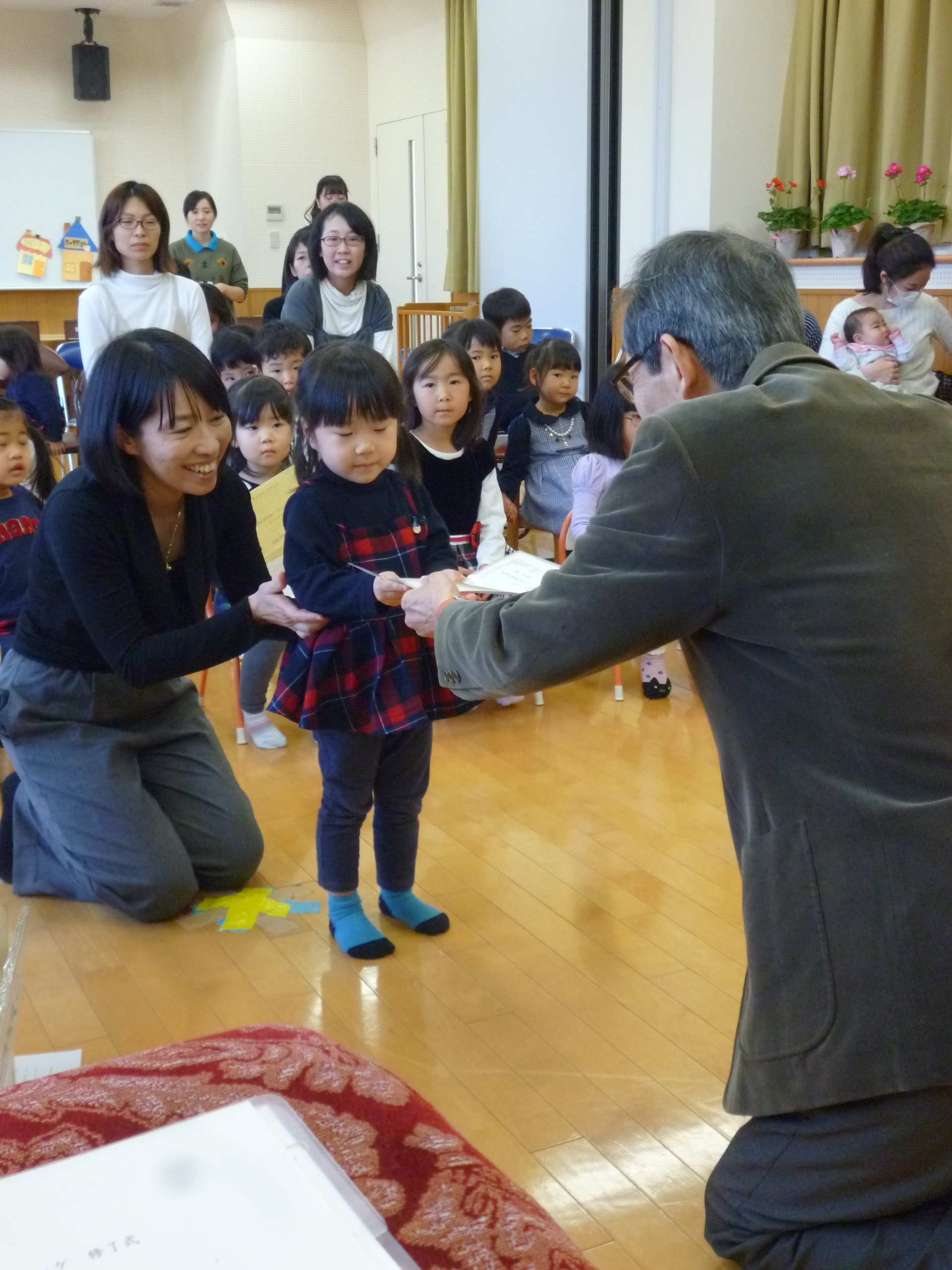 「あそぼ~」という子も・・・。たくさん遊んだお姉さんたちとの別れや長年お世話になったお二人の先生方とのお別れもあり、淋しい気持ちも・・・。