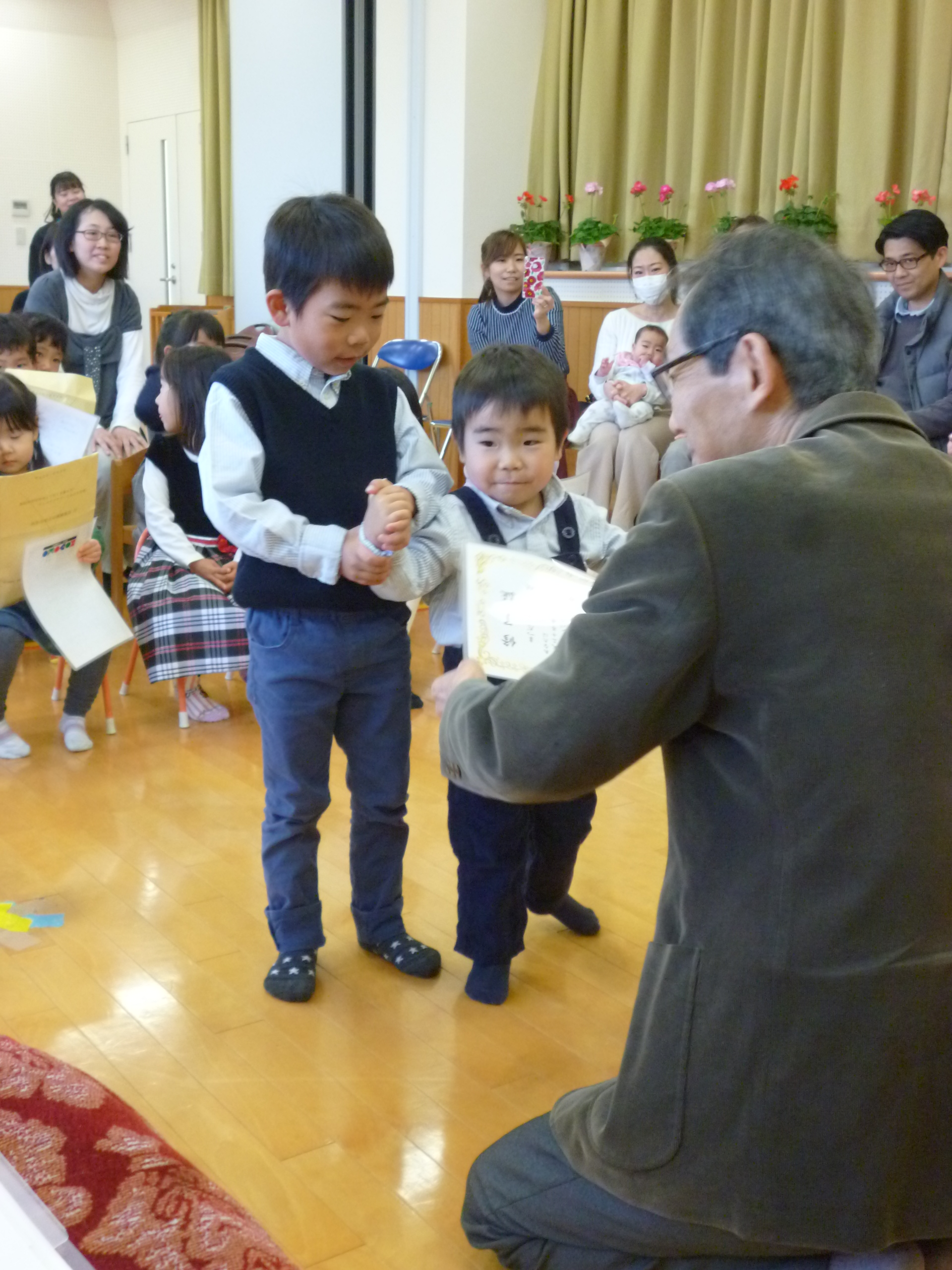 こども健康学科学科長から「修了証」を受け取ります。いや~、立派です!びっくりです。