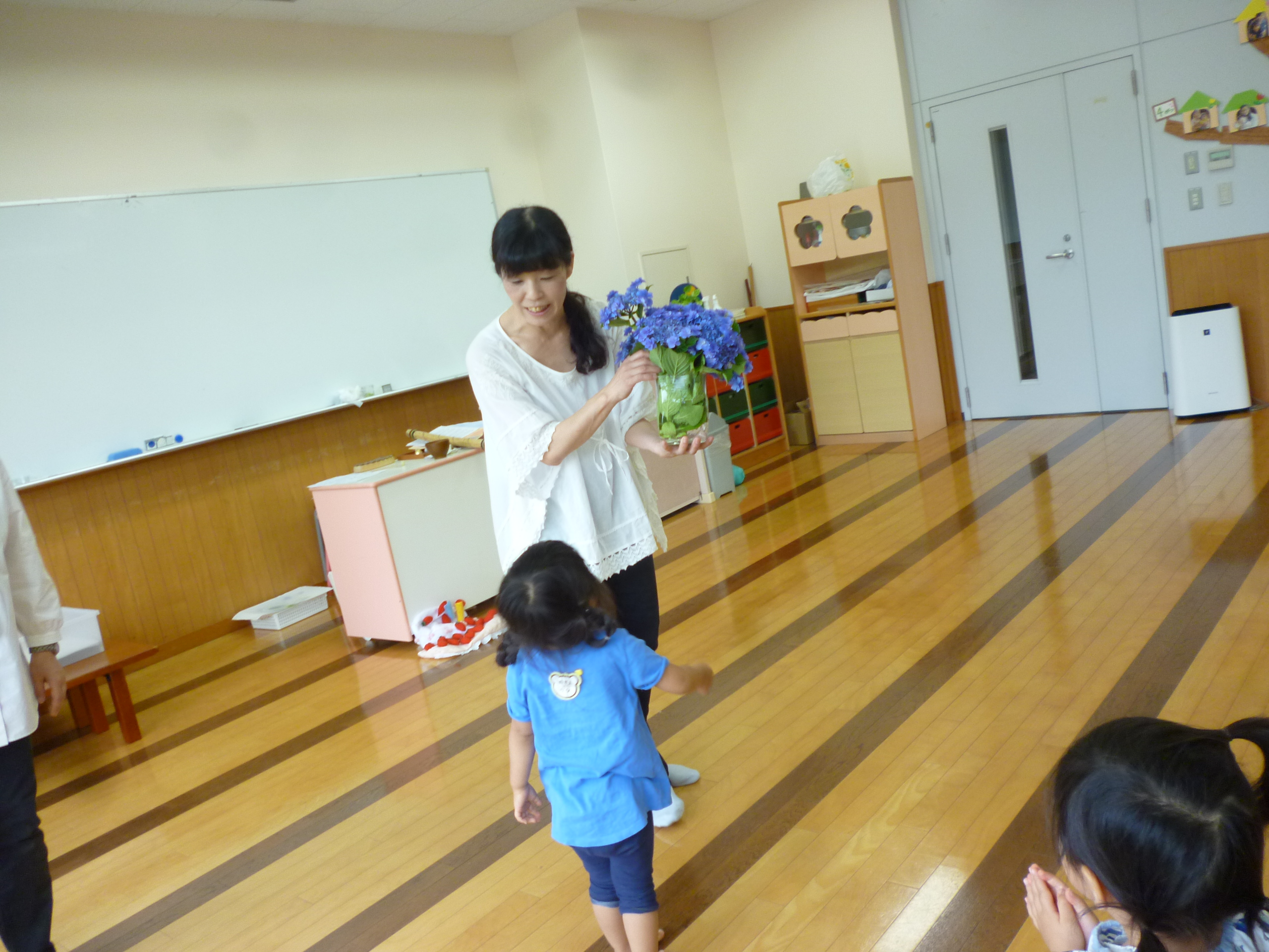 「あおいろ」がすてきな紫陽花が堀田先生から一人ひとりにプレゼントされました♪本当に、紫陽花の「あお」、綺麗ですね~。この季節だけの「あお」です。