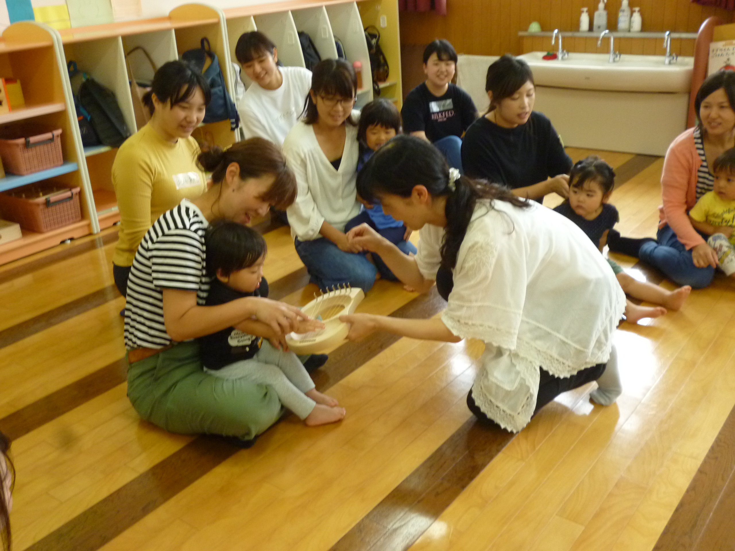 子どもたちには、優しい音色の楽器、ライヤーからの「音」は間近では「響き」(振動)で伝わっている感じです。子どもたちの、「響き」への感性は、いつもすごいなあと思います。