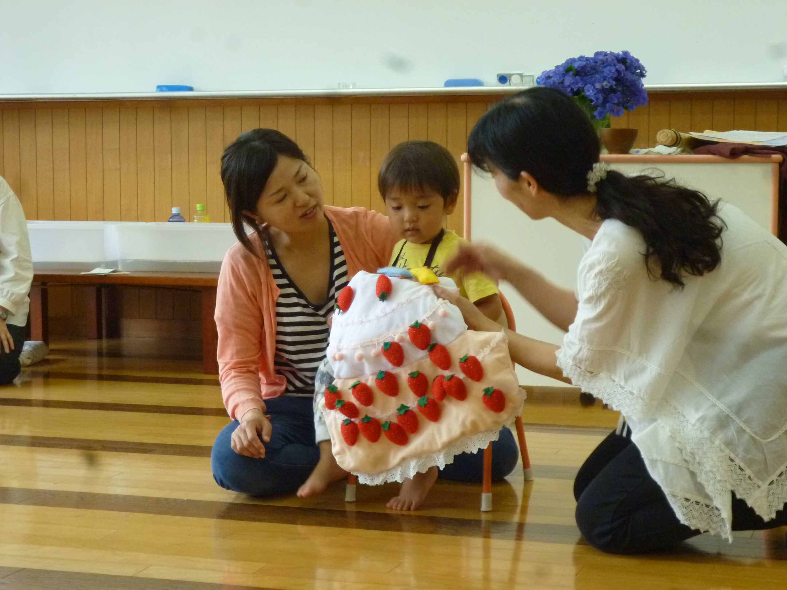 5月生まれの男の子のお祝いです。ケーキにイチゴをつけてみんなでお祝い♡