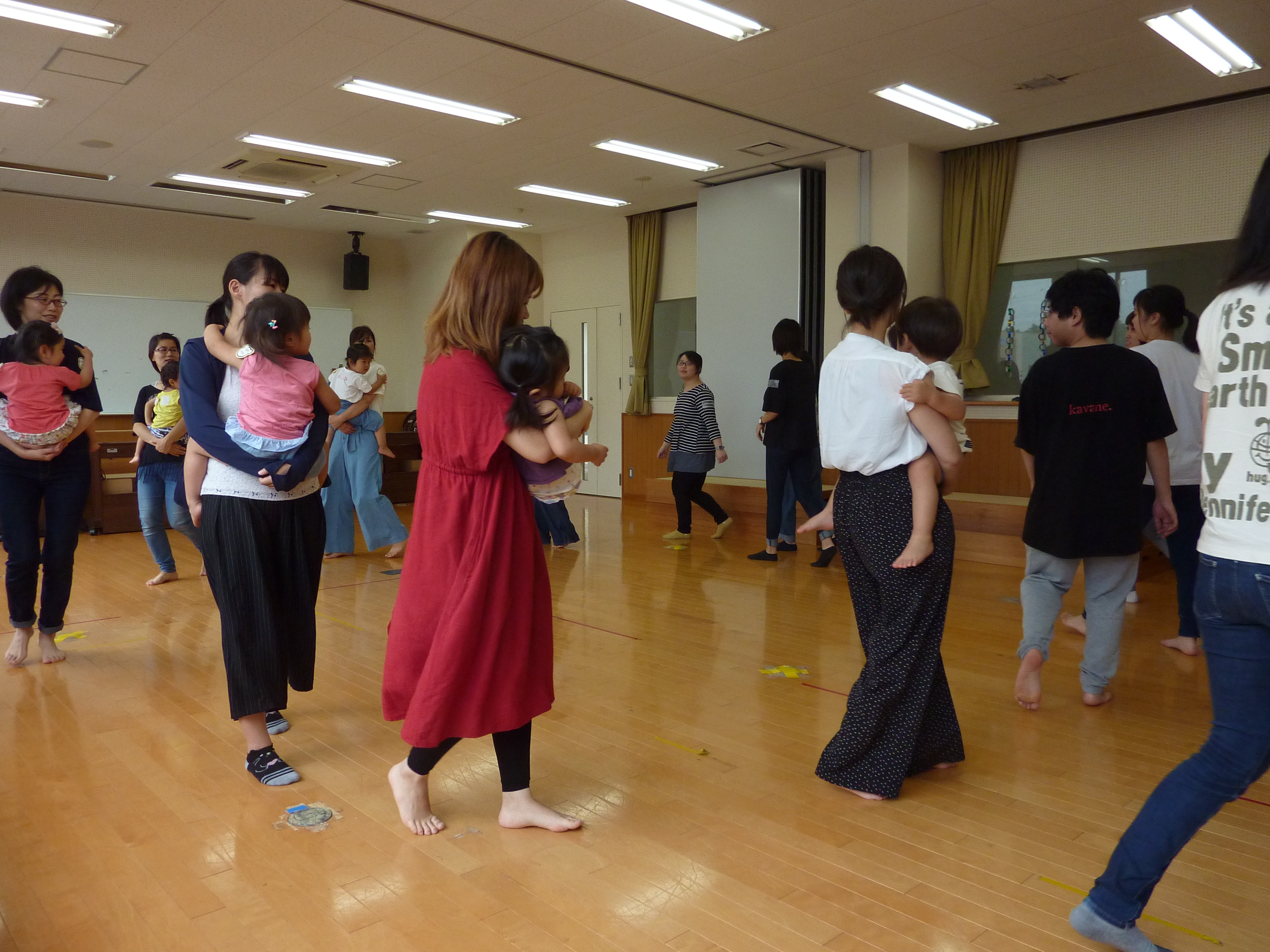 お母さんの温もりとお母さんのリズム♪感じてるだろうなぁ。音楽に合わせて歩きます。