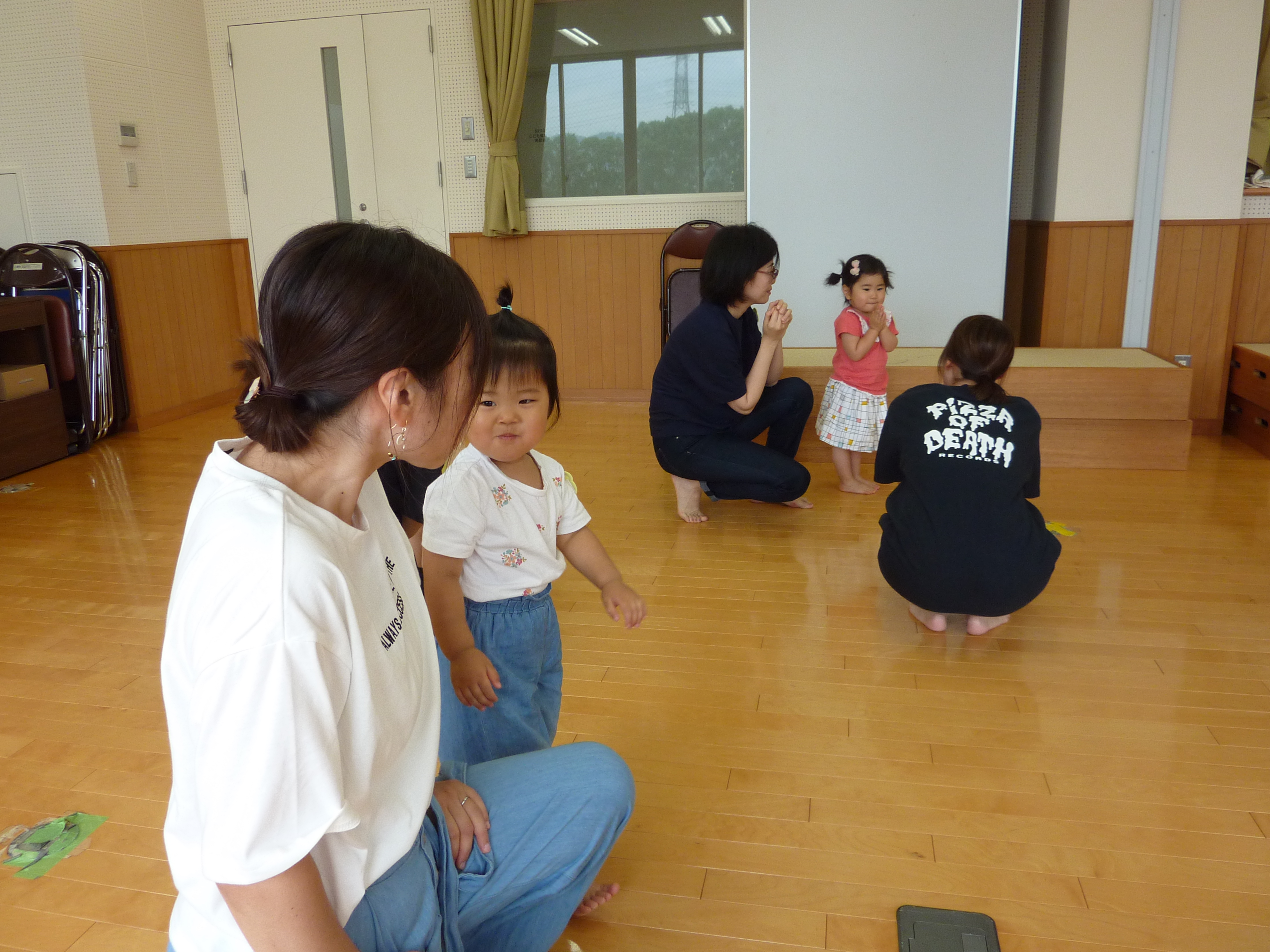 ウサギやくま・・・森の中で出会う動物になってピョンピョン跳ねたりのっしのっしと歩いたり・・・。