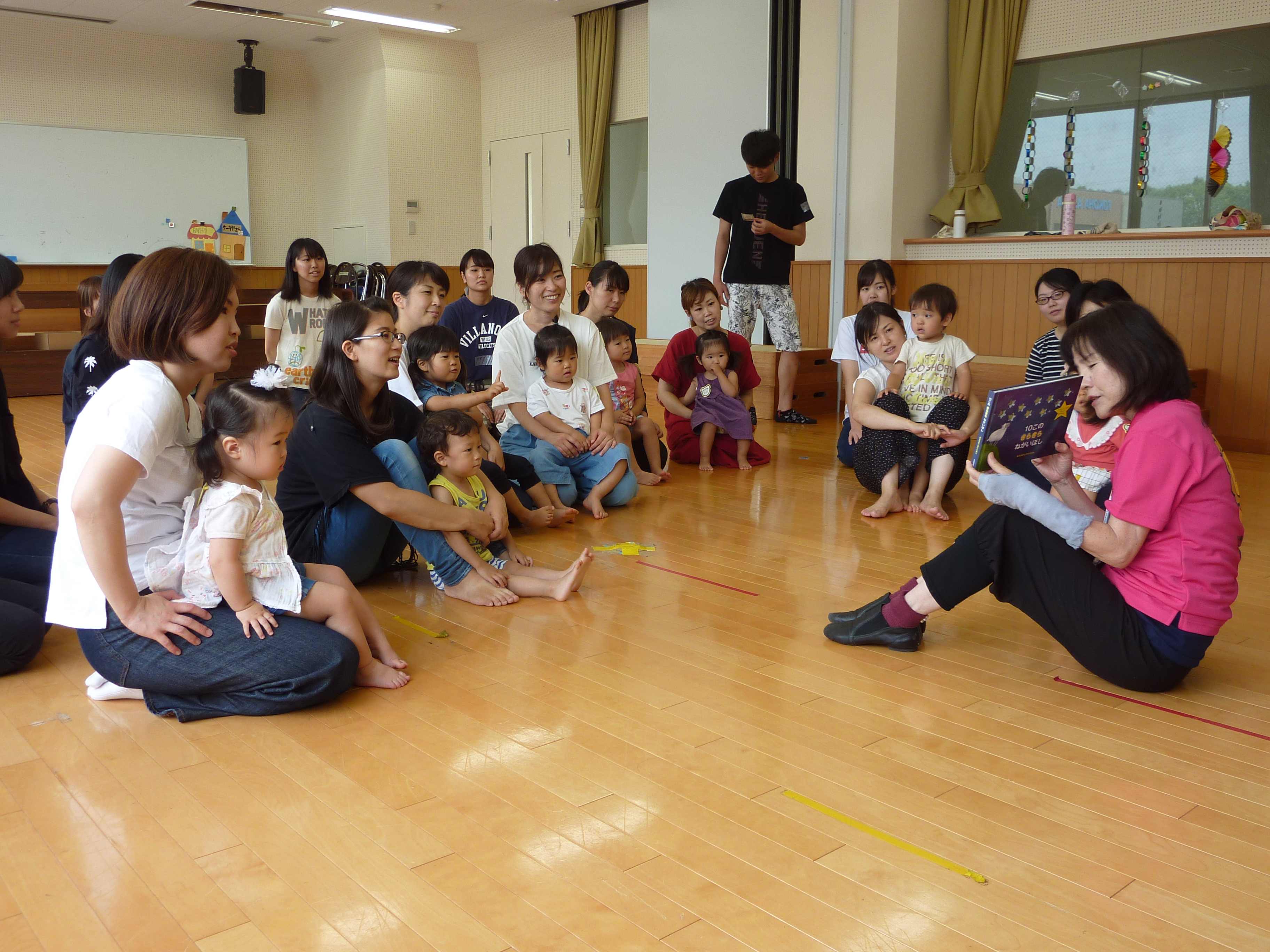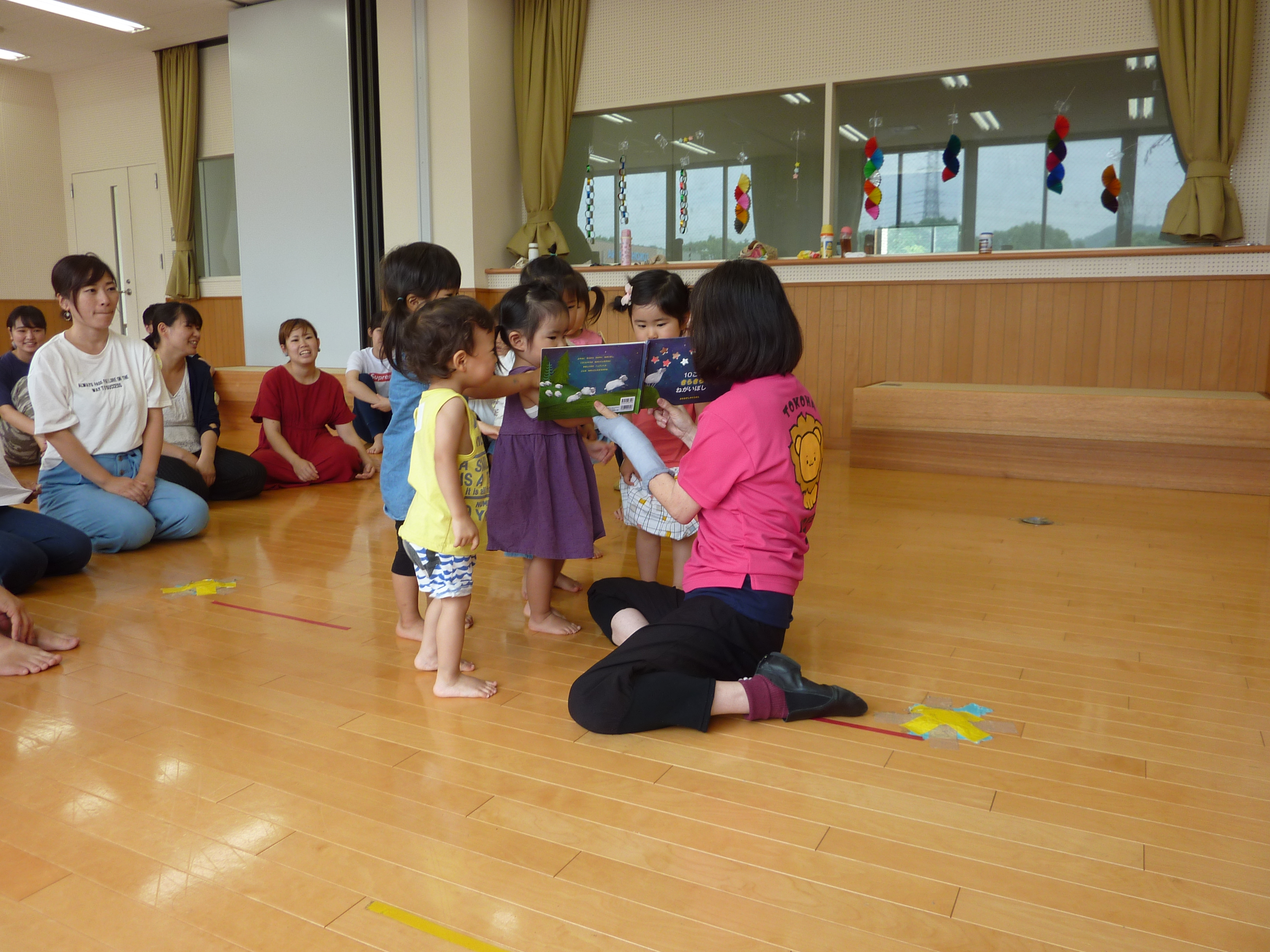星が光る絵本。お母さんのひざの中で全身で聴いて見て感じています。