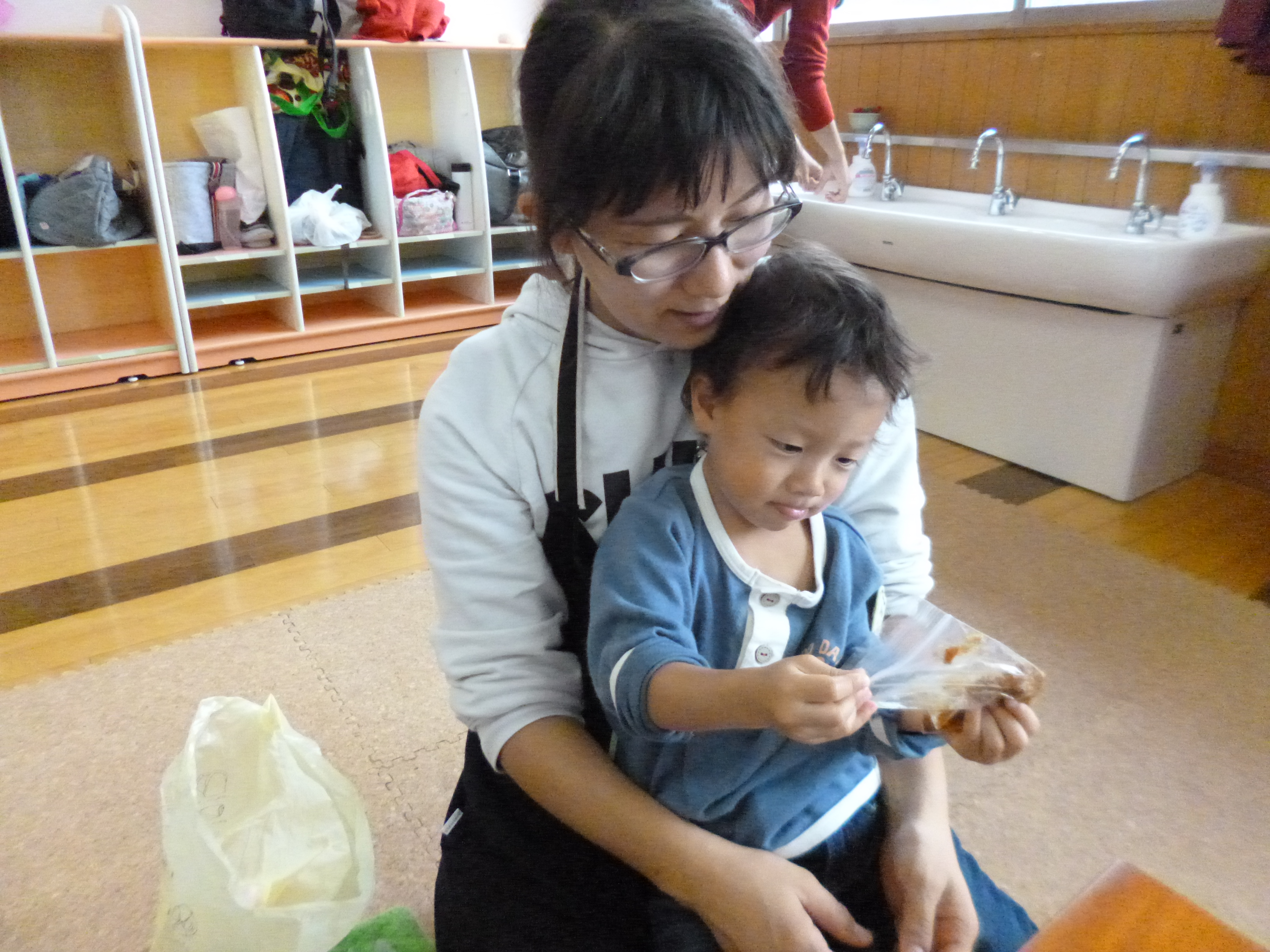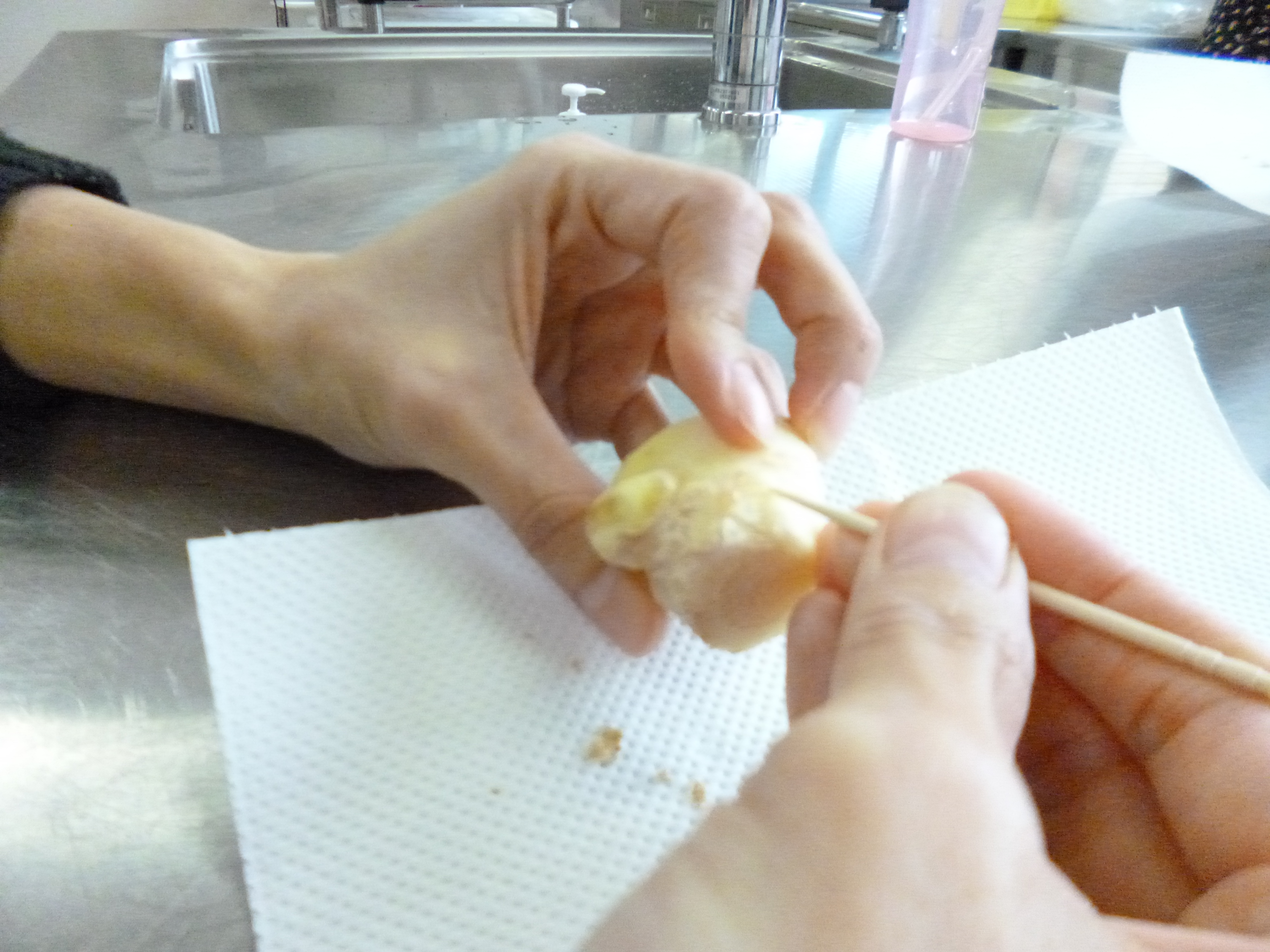 いつもと違う「調理室」。『食べること』を扱う場所の空気を感じながら、梅への愛情がいっぱいの相佐さんの話に耳を傾けました。「紅ショウガ」を漬けた経験のある方は殆どなく、お母さまたちにとっては新鮮な経験だったと思います。