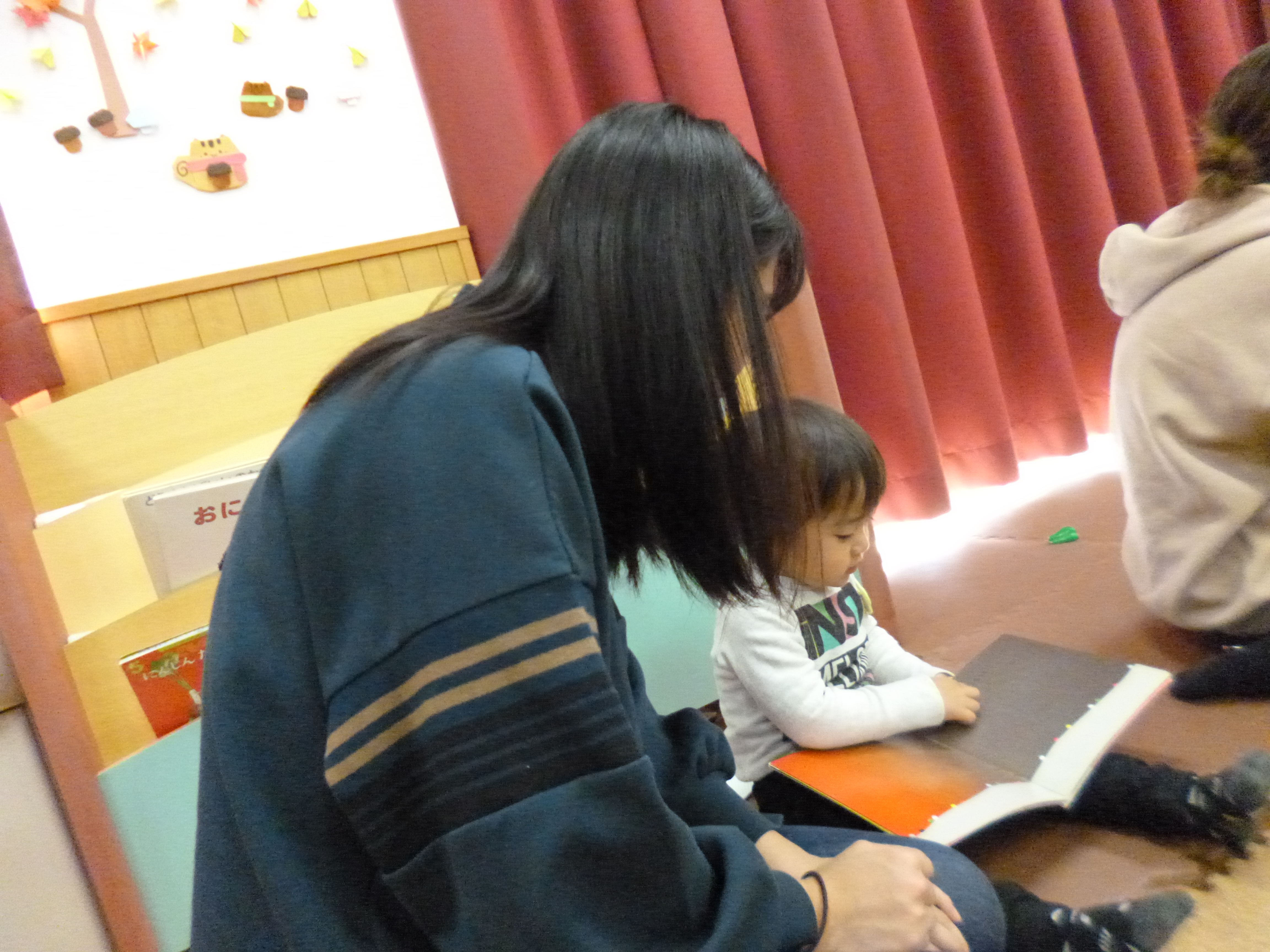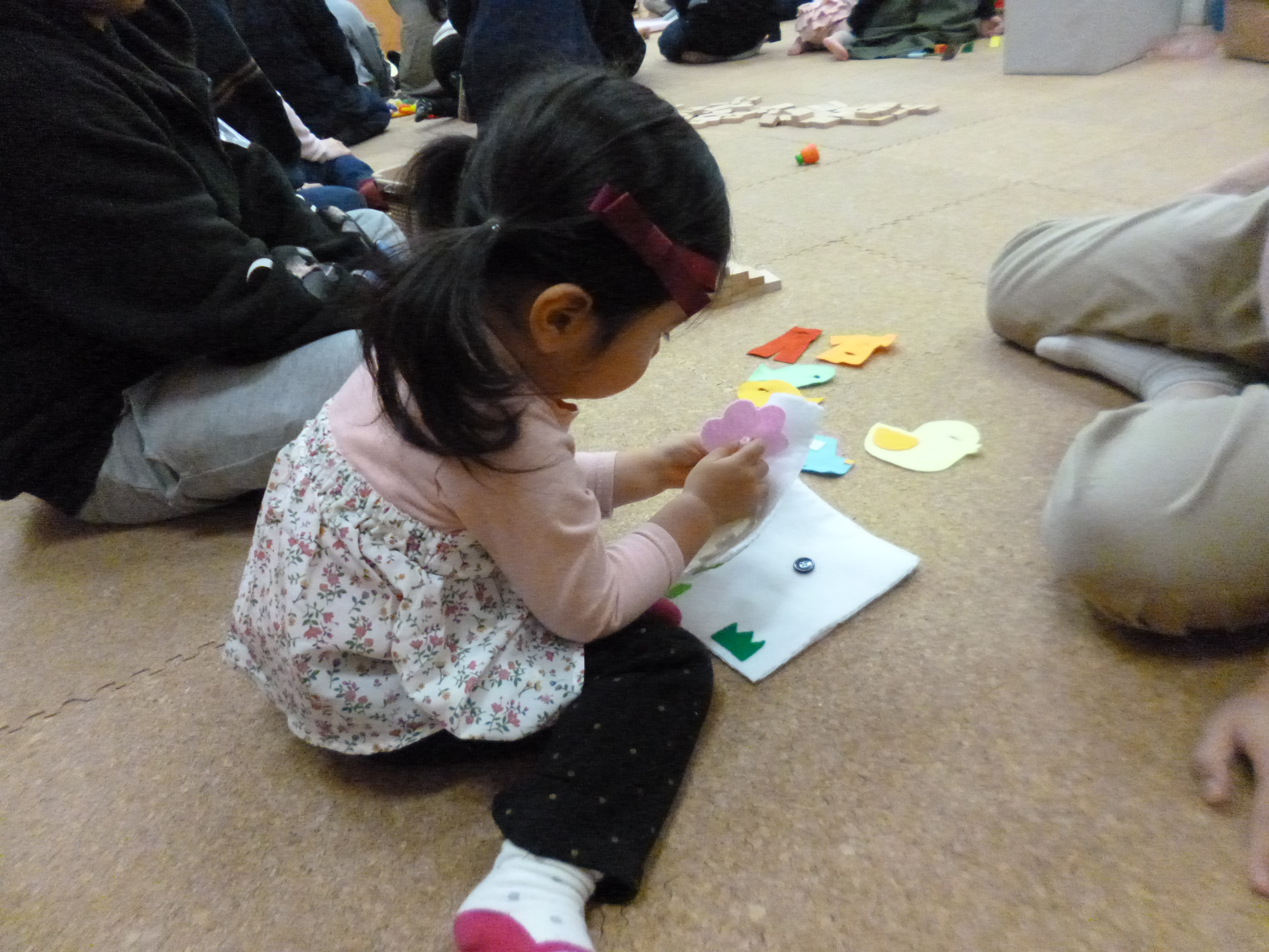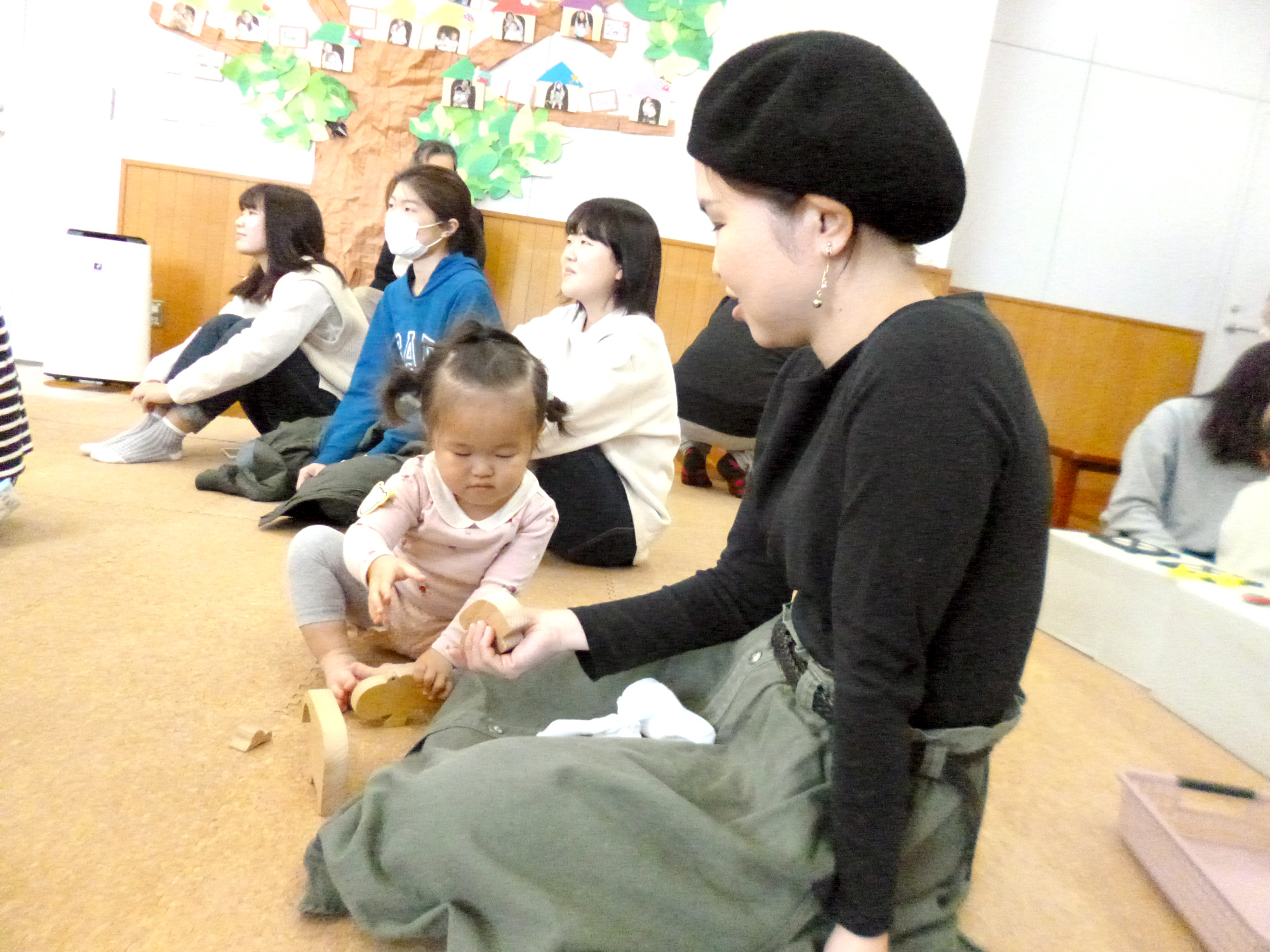 お母さんの近くで遊ぶ我が子を気にかけながら…。