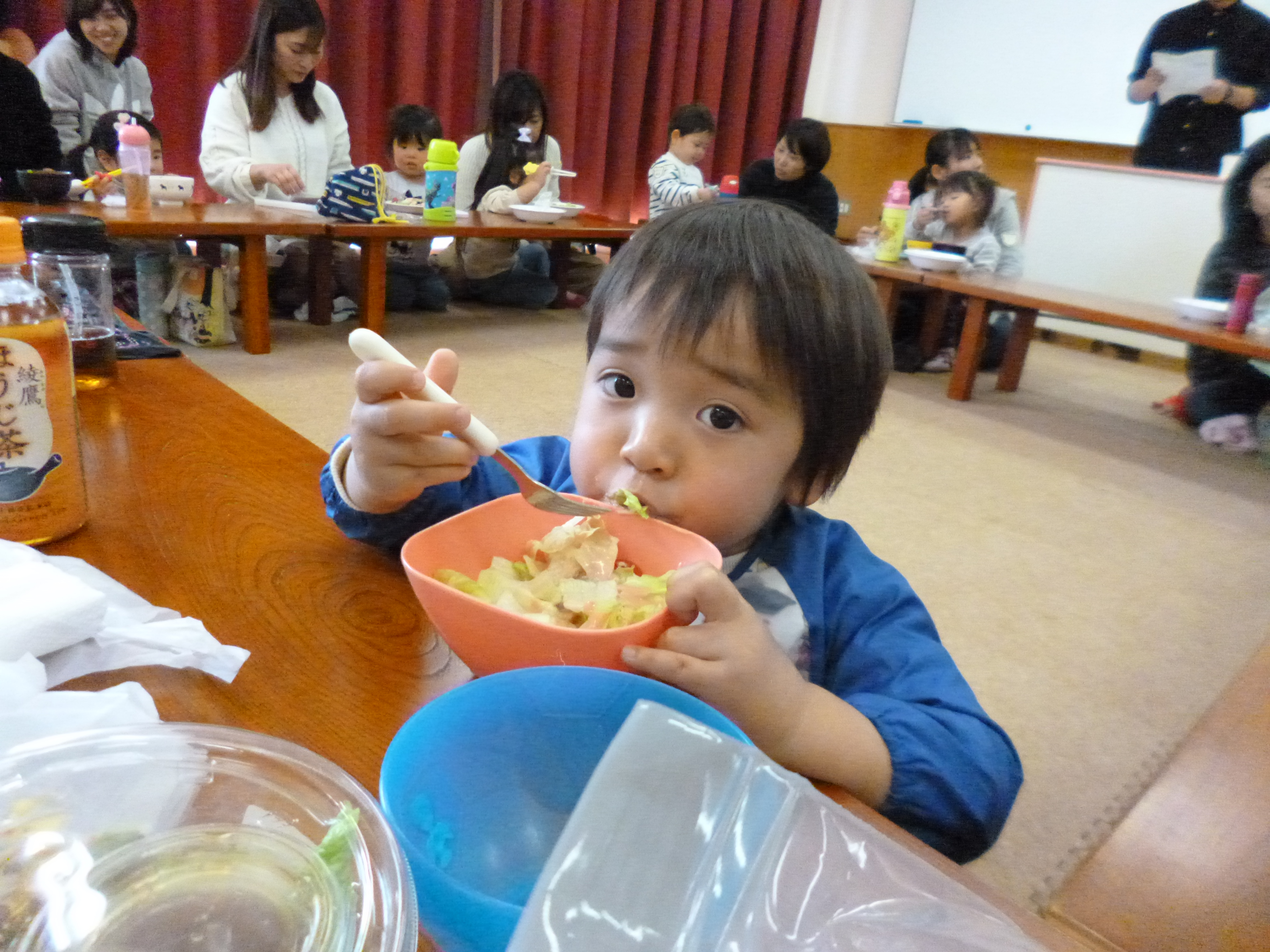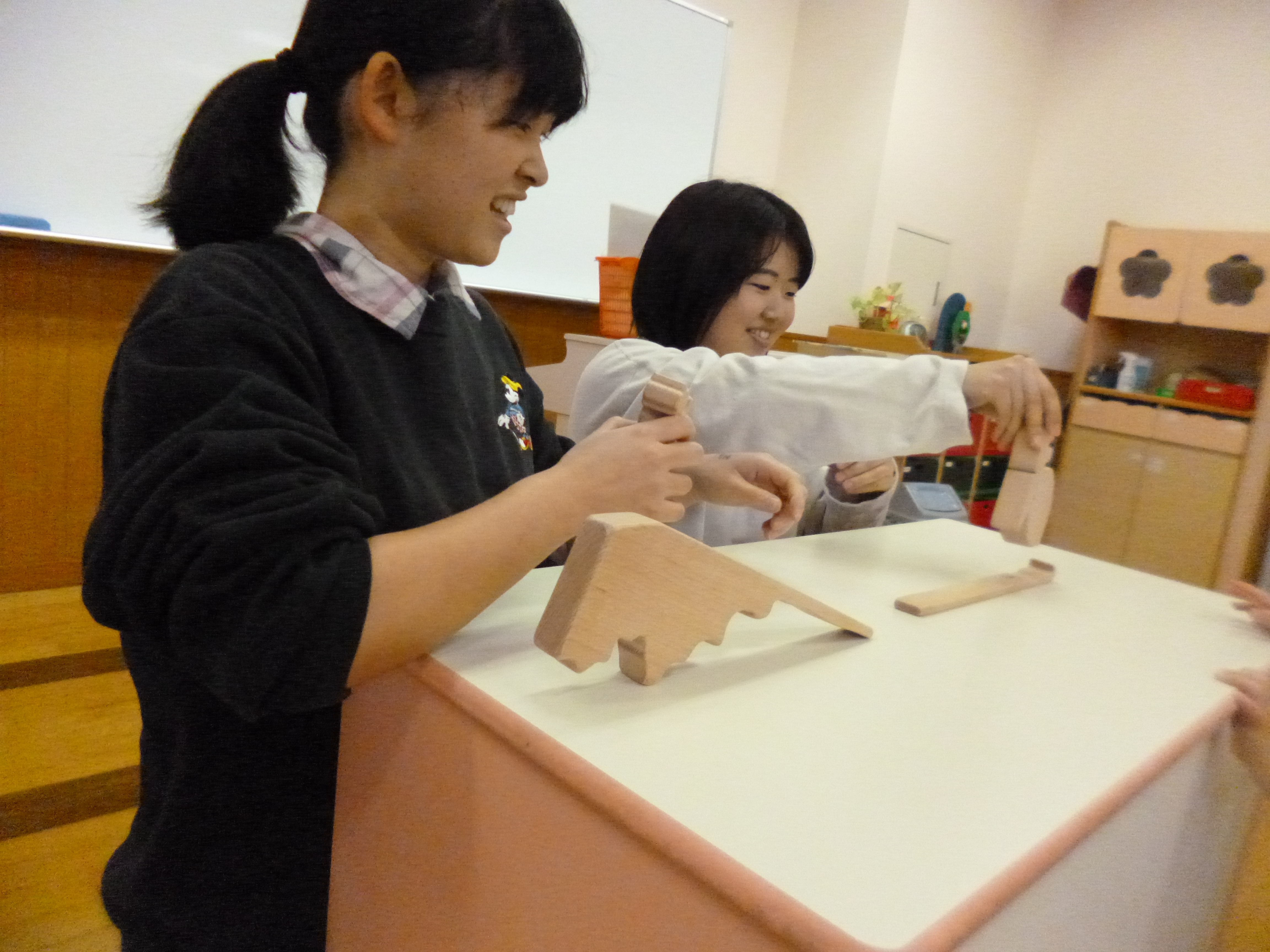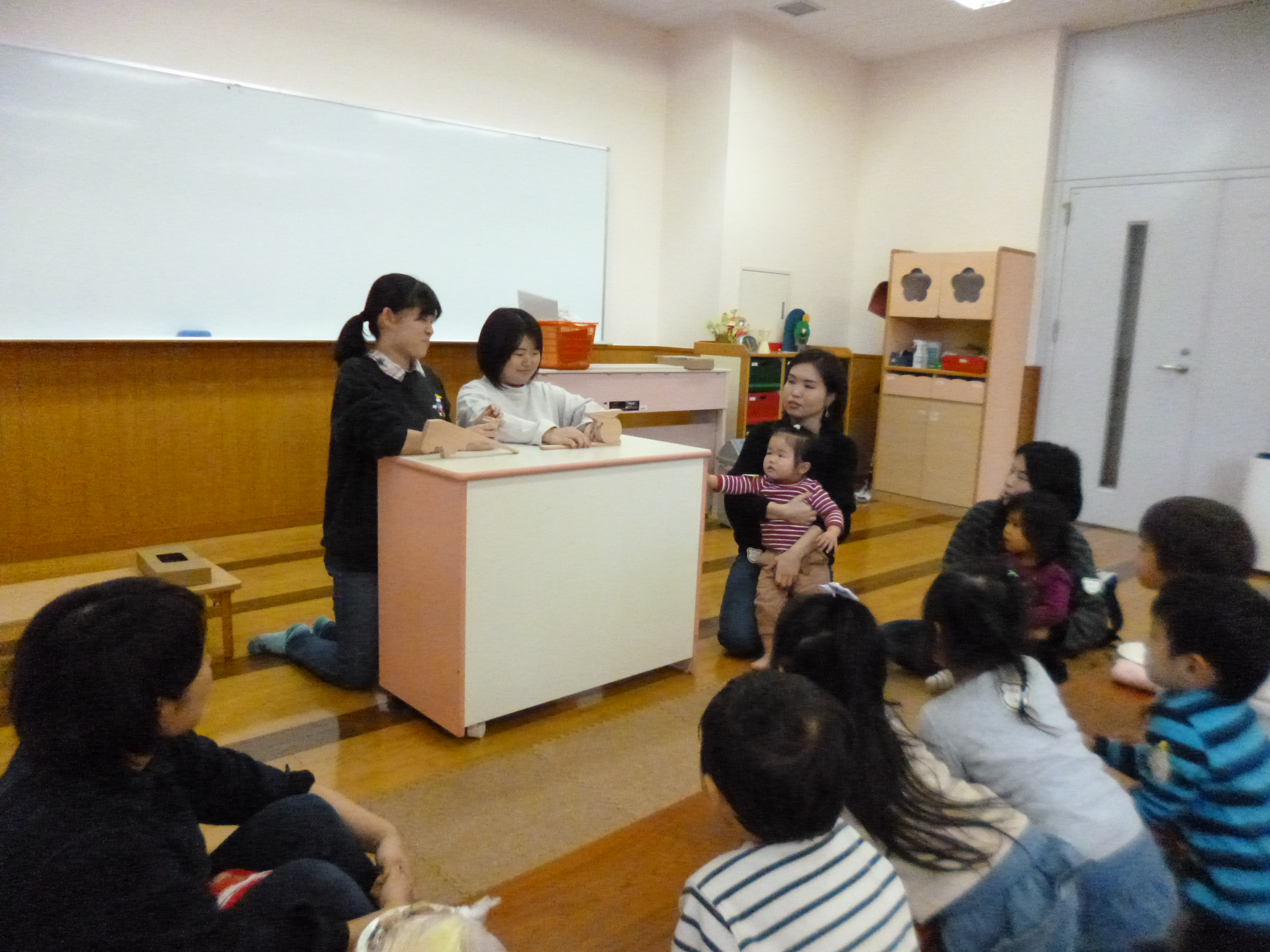 湯せんしている間、ポッケルームでお姉さんたちの「組み木」を使ったおはなしを楽しみました。何度聞いても楽しい「おおきなかぶ」。子どもたちはとっても喜びました。