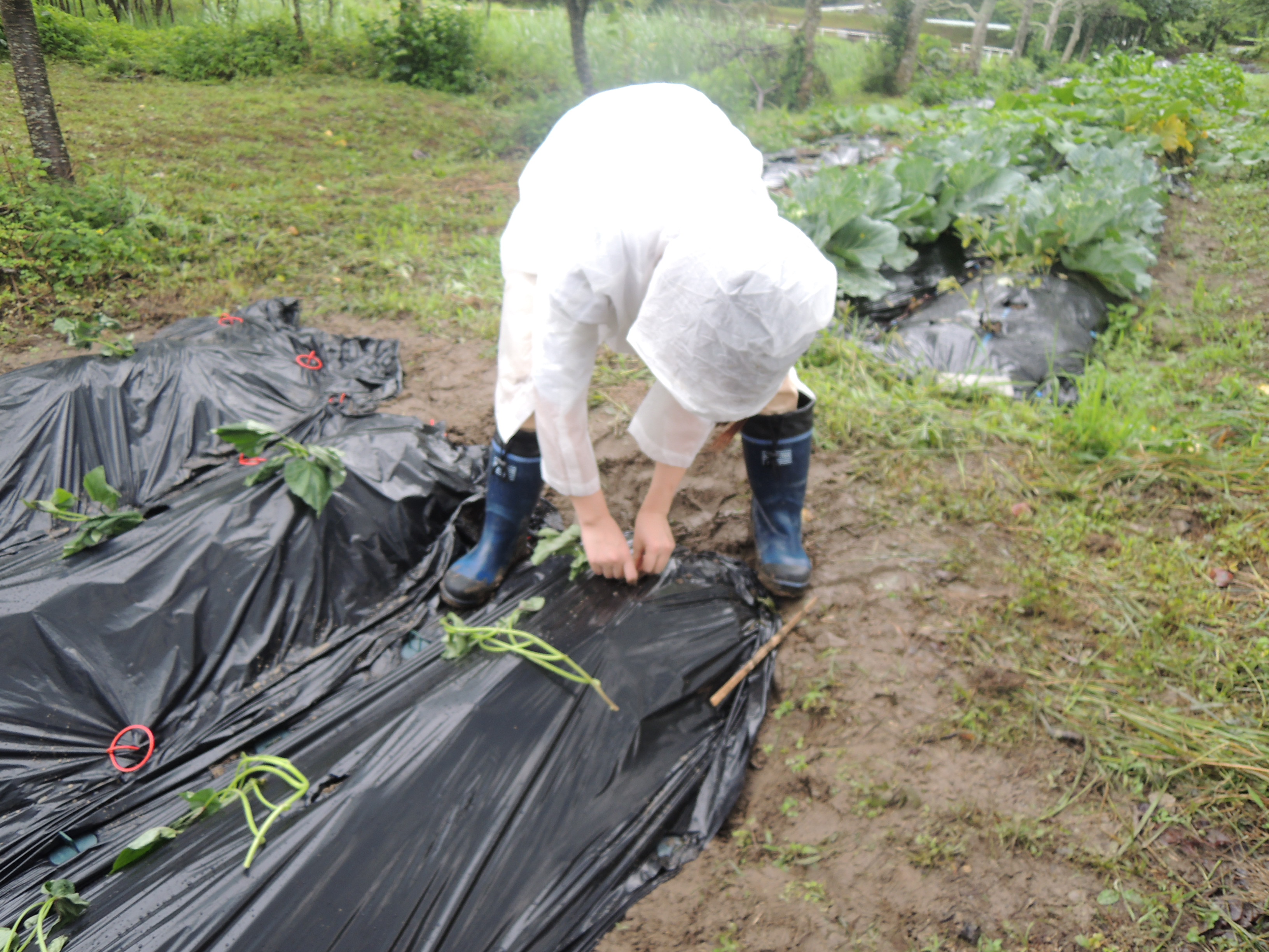 そして約1ヶ月後の7月13日・・・!実に青々と元気に育っていました。たまたま訪ねてきていたチームポッケの卒業生(公務員1年生)が「つる返し」を手伝ってくれました~♪