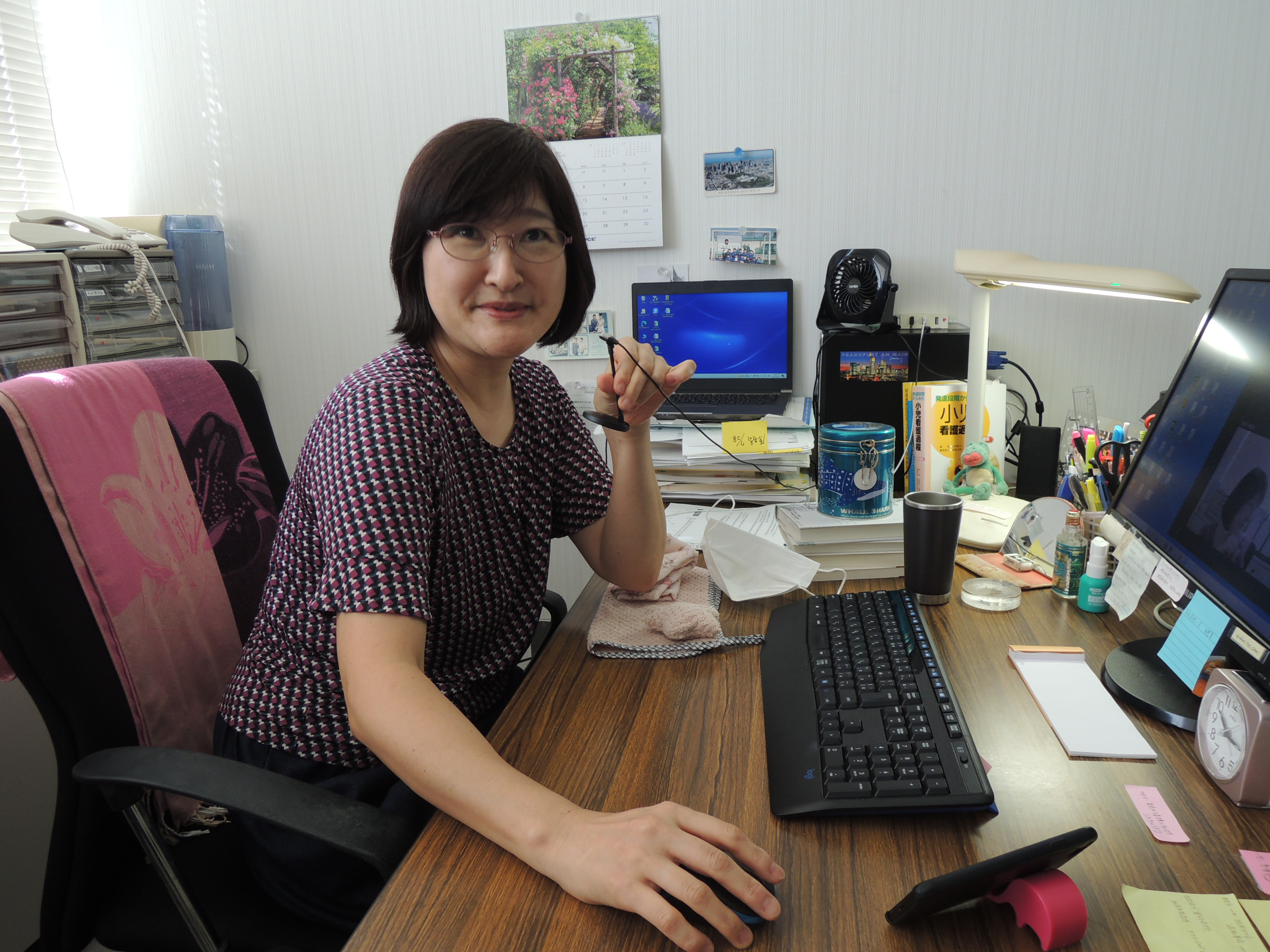 いつもにこやかで優しい木山先生。ご自身の研究室からの講座でした。因みに阿部先生と私は、私の事務仕事の部屋で参加です。