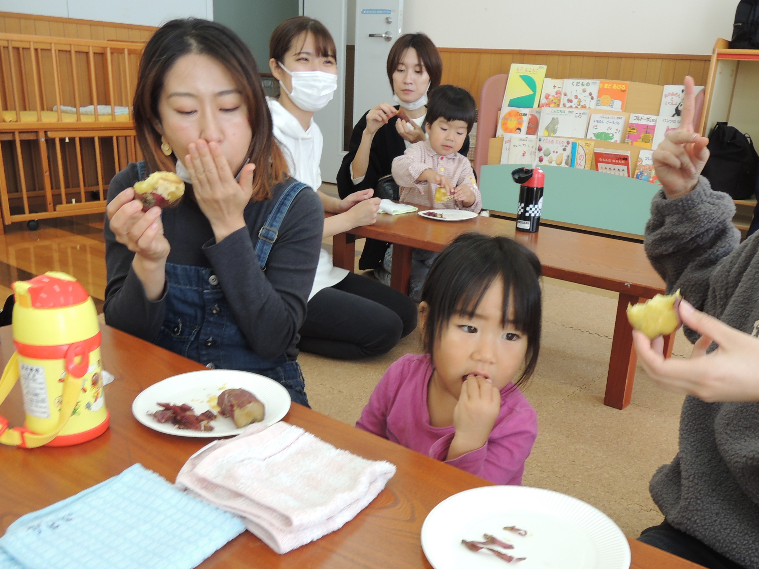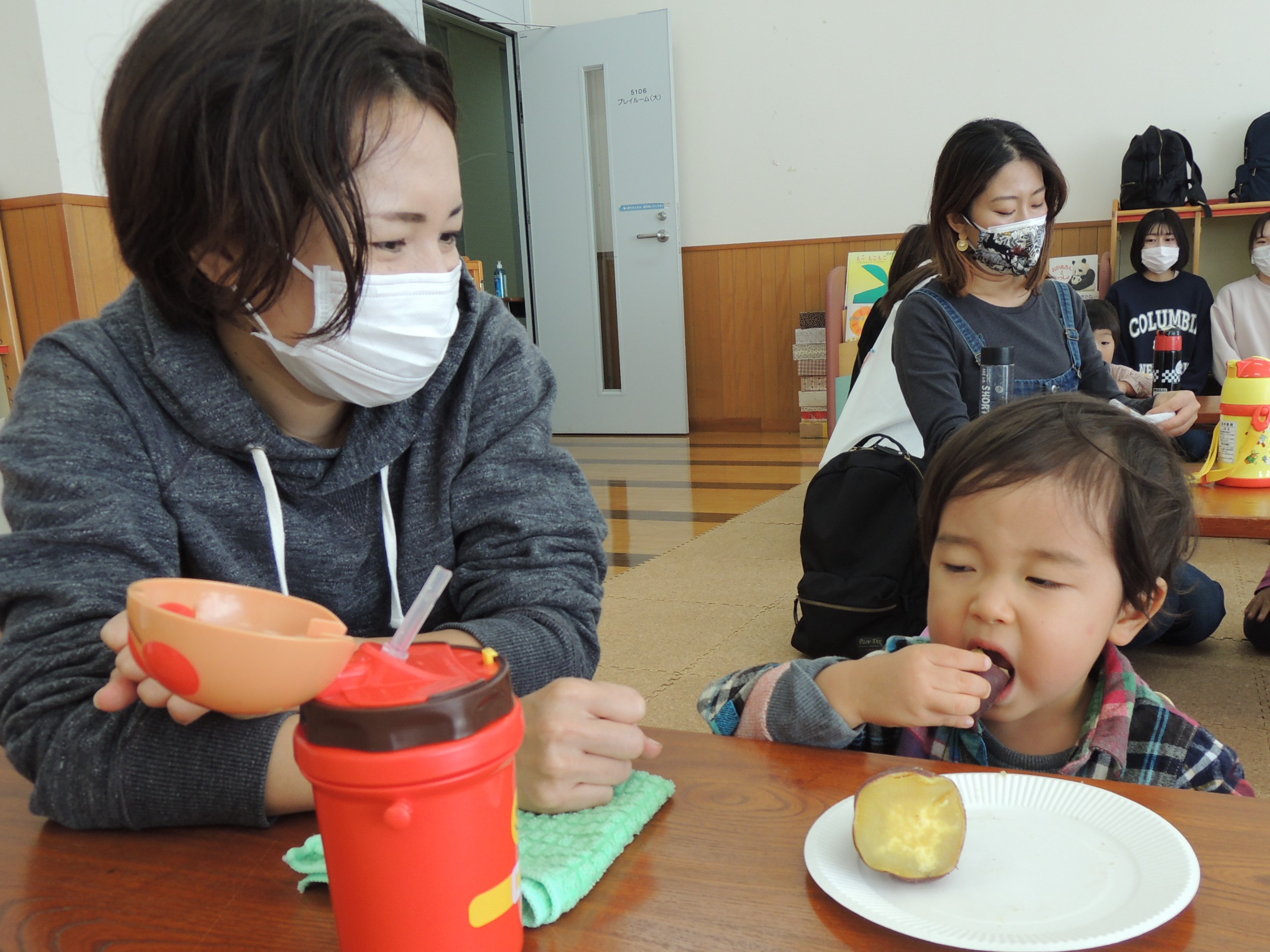 和やかな雰囲気の中、皆で美味しく炊いたお芋をいただきました。(換気や距離、控えめな会話で・・・。)