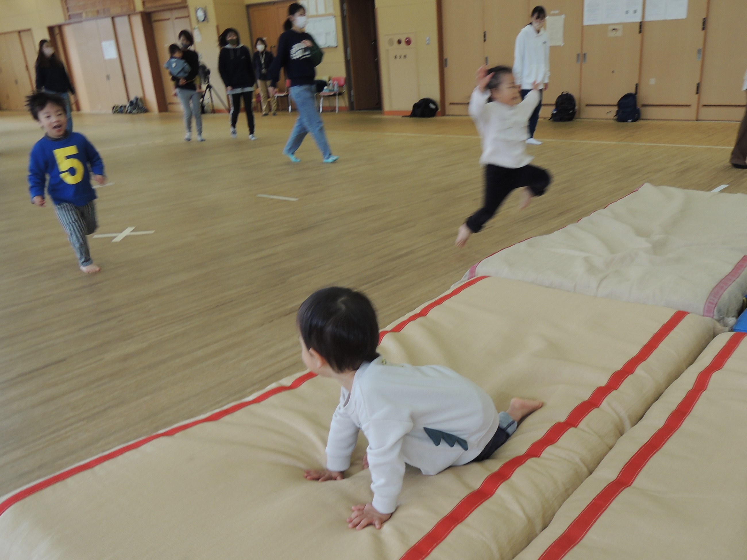 走ってきて、マットにダイビング!みんな、ちゃ~んと手をついていました!