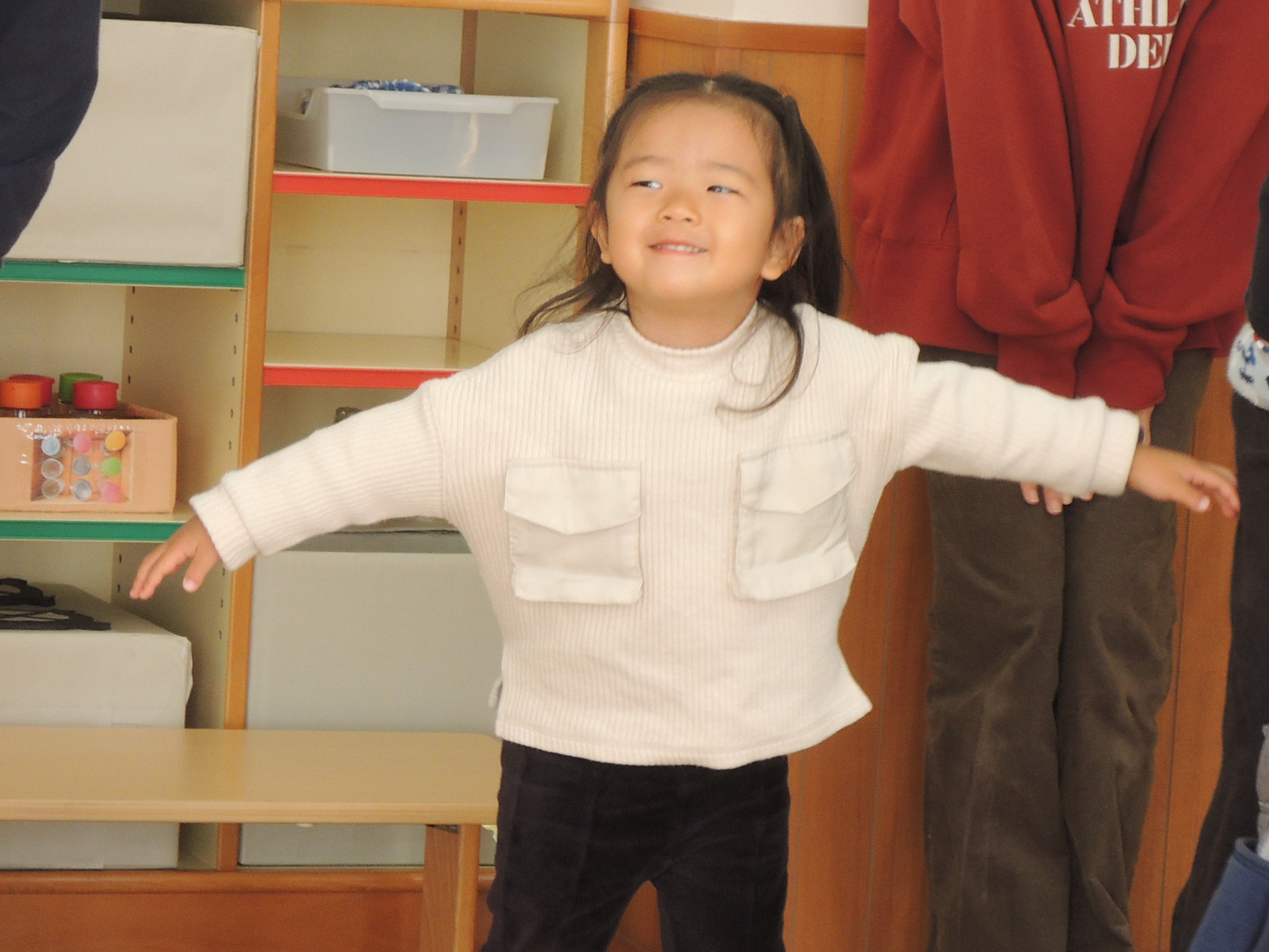かっこいい~! 教わったわけではないのに、子どもたちは手を広げて立っていました!
