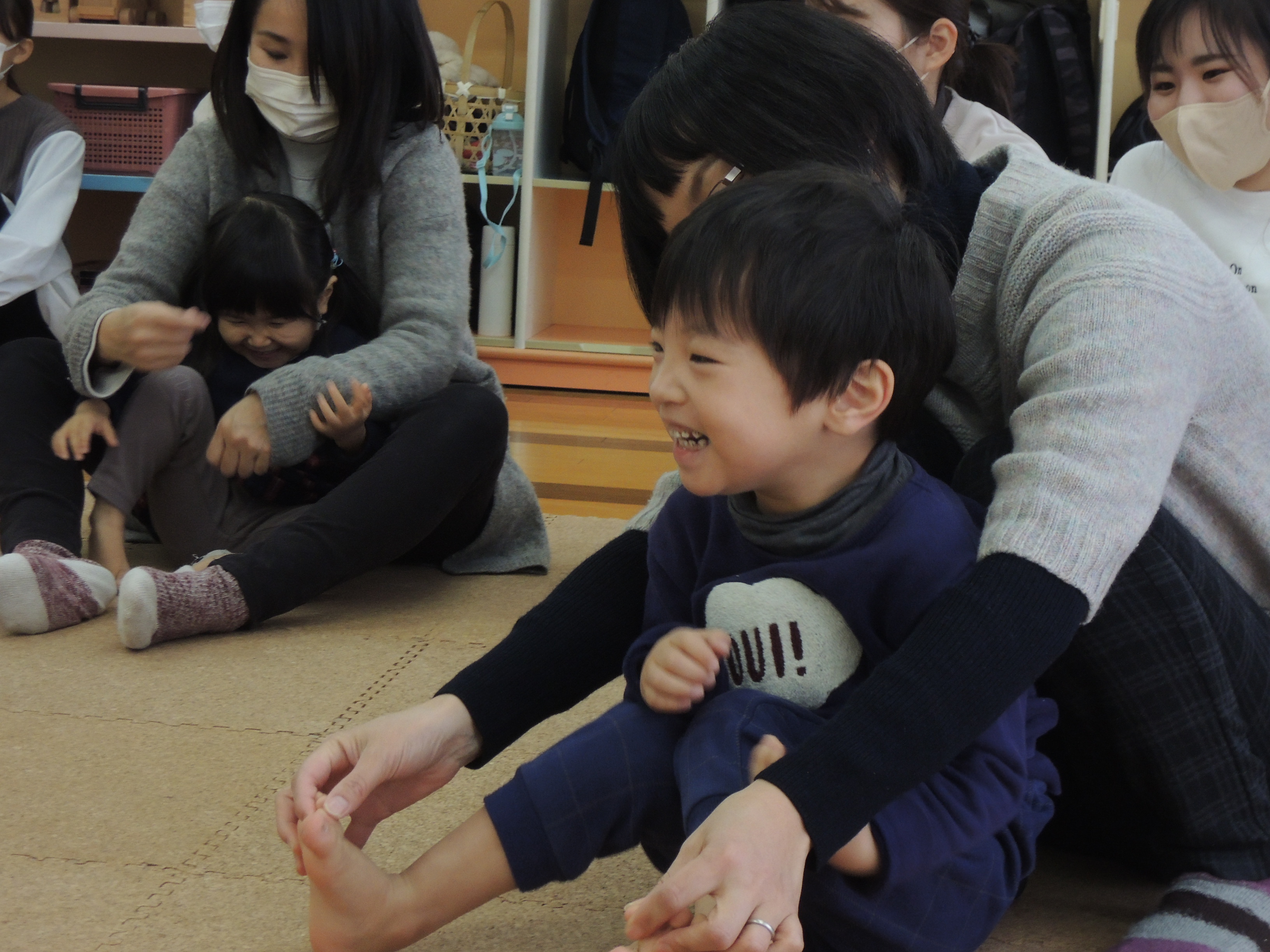 阿部先生による まめっちょ のわらべうたで親子で触れ合って遊びます♬