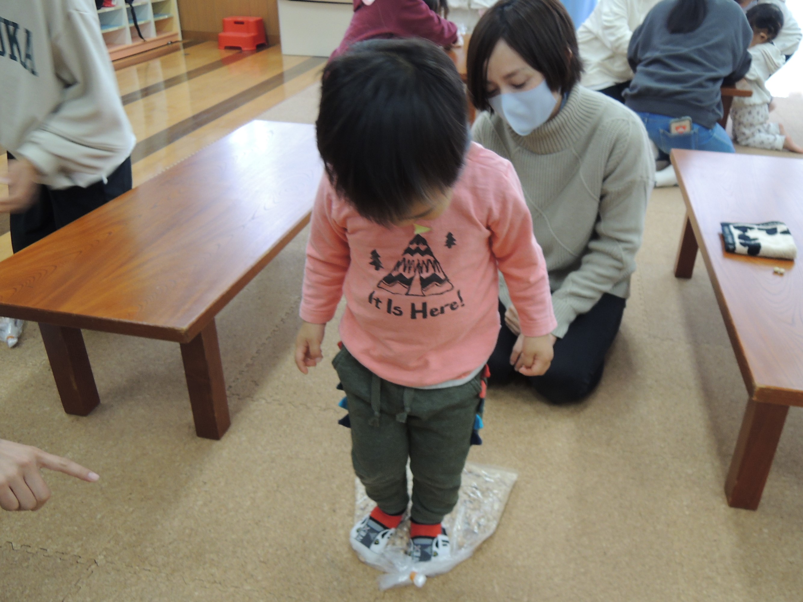 あっちこっち体重のかけ方を変えてみて・・・。足の裏、どんな感触なんだろう・・・。