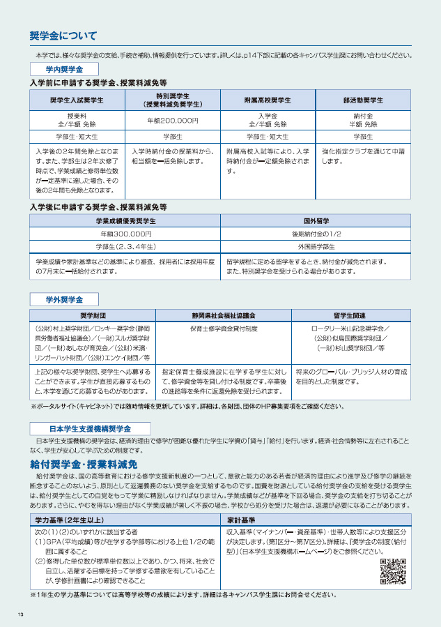 | 学業成績優秀奨学生 | 3名 | 給付 | 年額20万円 | 2年に在学していて、前年度の学業成績が優秀な者。 給付期間は1年間。 |