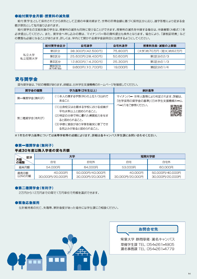 (常葉大学短期大学部独自の奨学金制度です。返済の必要はありません)