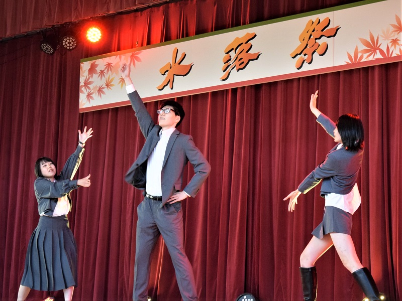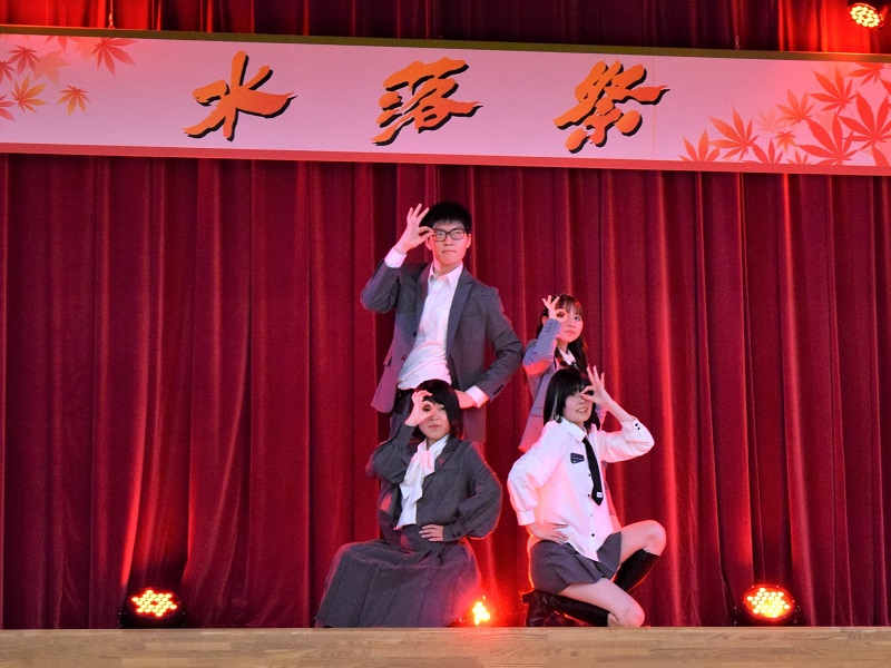 昨年に引き続き、今年の水落祭においてもステージ企画、校内企画、学科企画、模擬店を開催しました。例年はステージ企画のゲストとしてお笑い芸人の方をお呼びし、お笑いライブを行っていましたが、今回は新たな試みとして、シンガーソングライターのヒグチアイさんをお招きし、音楽ライブを行いました。水落キャンパス内外から好評を得られたのではないかと思います。音響機材や照明などを活用し、体育館を煌びやかなステージにすることが叶いました。ヒグチアイSpecial Liveから幕を開けたステージ企画では、ビンゴ大会、有志団体によるダンス発表とクイズ大会などの企画に加え、50:50選手権という来場者が楽しめる参加型企画を実施しました。校内企画では、株式会社怖がらせ隊によるお化け屋敷「心霊警備」をお楽しみいただきました。法律学科、看護学科、静岡理学療法学科、3学科の学習成果を発表する学科企画でも、たくさんの方々のご来場を賜りました。企画作り、準備から当日の運営まで各学科の教員の協力を得、魅力的な企画が出来上がりました。模擬店の出店数も昨年の2倍ほどに増え、大変な賑わいを見せてくれました。