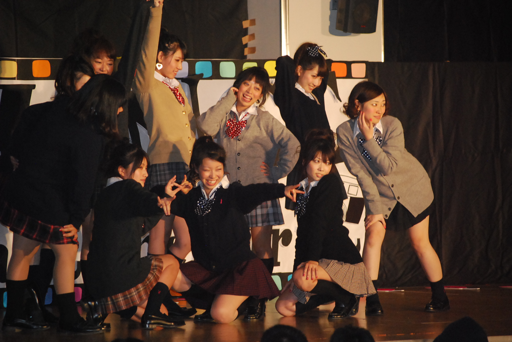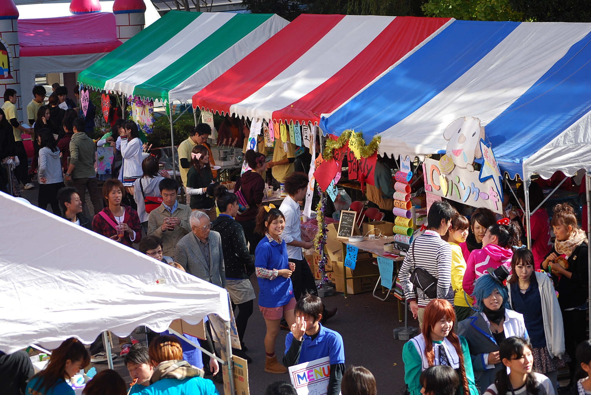2012年11月開催の大学祭で行われた様々なイベントを紹介します。 ページ内目次 DO-ing ステージパフォーマンス 造形展示・販売ブース 中夜祭 模擬店 その他 DO-ing ページの先頭へ戻る ステージパフォーマンス セビジャーナス部 ダンス部 チアリーダー部 パルちゃんショー ミスコンテストNO.1 ミスコンテストNO.2 ミスターコンテスト 女装コンテスト ページの先頭へ戻る 造形展示・販売ブース ページの先頭へ戻る 中夜祭 ページの先頭へ戻る 模擬店 ページの先頭へ戻る その他 音楽専攻の演奏会 原口あきまささんと記念撮影
