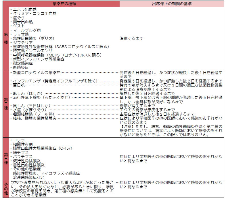 学校感染症とその出席停止期間