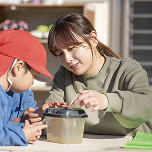 ゼミのテーマは「子どもの遊ぶ環境研究」。現場で働く今、それが活きていると実感します。子どもの反応は正直でダイレクト。一生懸命考えて用意したもので楽しそうに遊んでくれている時はとても嬉しいです。これからも初心を忘れずに、子どもの可能性をたくさん引き出し、子どもの幸せを一番に考えた保育を目指していきます。