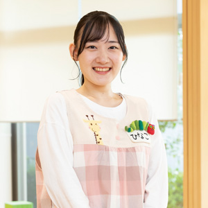 保育の道に進みたいと思い始めたのは中学生のころ。常葉大学では、4年間で保育について深く学べ、障がい児教育を深く勉強したいと思い、進学を希望しました。ゼミの仲間と目標に向かってがんばった時間は今でも忘れません。また、いろいろな園を見学し講演を聞いた経験は、保育室の環境を整えたり保育の仕方を見直したりする時に、とても役立っています。