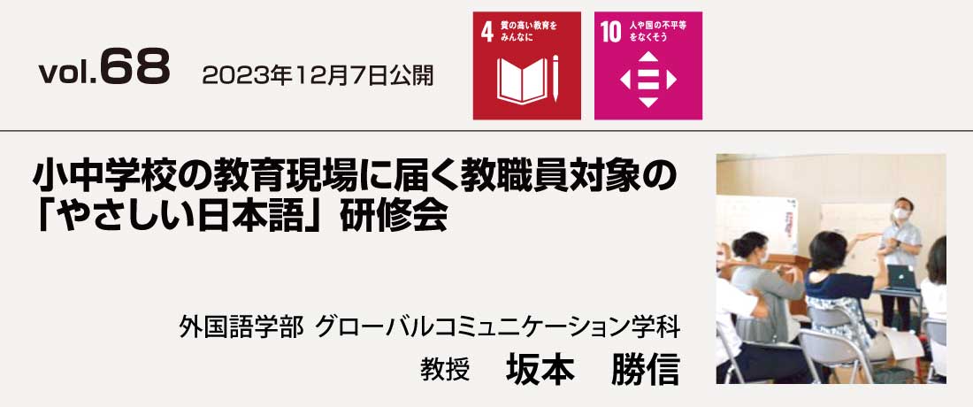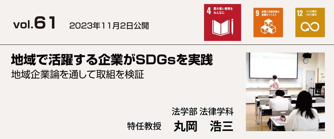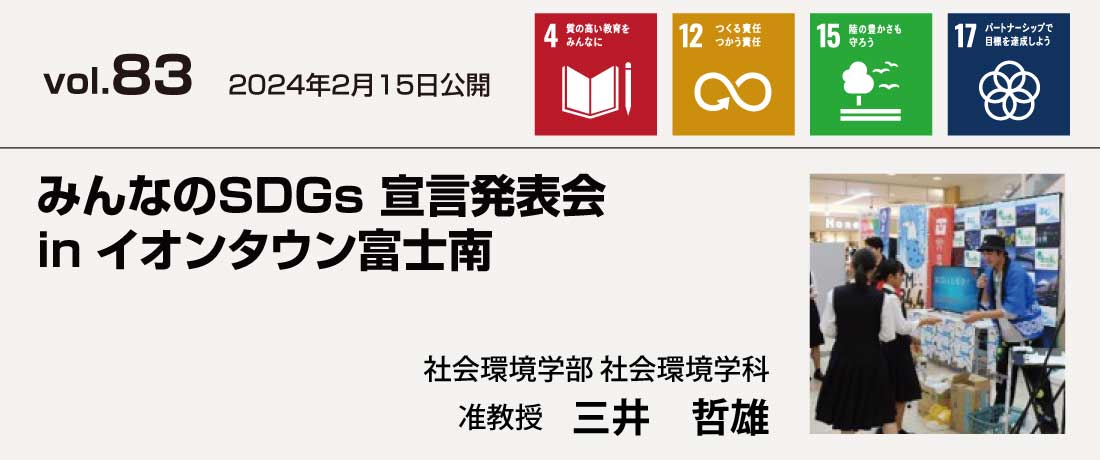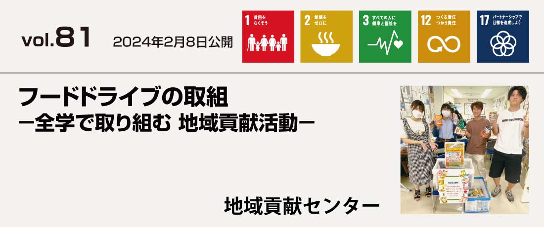 本学も学生の自治組織である学友会・評議員会が主体となって、SDGsに対する学生の認知度調査や外部講師によるSDGsに関する講演会の開催などを行っています。また、公開講座でも「暮らしの中にあるSDGs」というテーマで、食や防災や街づくりといった身近な事柄を題材にSDGsについての講座を開きました。このような本学の取り組みを多くの皆様にも知っていただき、さらにSDGsにかかわる活動が広がることを願って、本学の教職員や団体のSDGsの取り組みを紹介していくこととなりました。SDGsの17の目標はどれも私たちの生活に深くかかわっています。かけがえのない地球環境を守りつつ、世界中のだれもが同じように豊かな生活を送っていくにはどうすればいいのか、世界中の知恵の結集と共に、日頃の私たちの心掛けと実践が問われています。