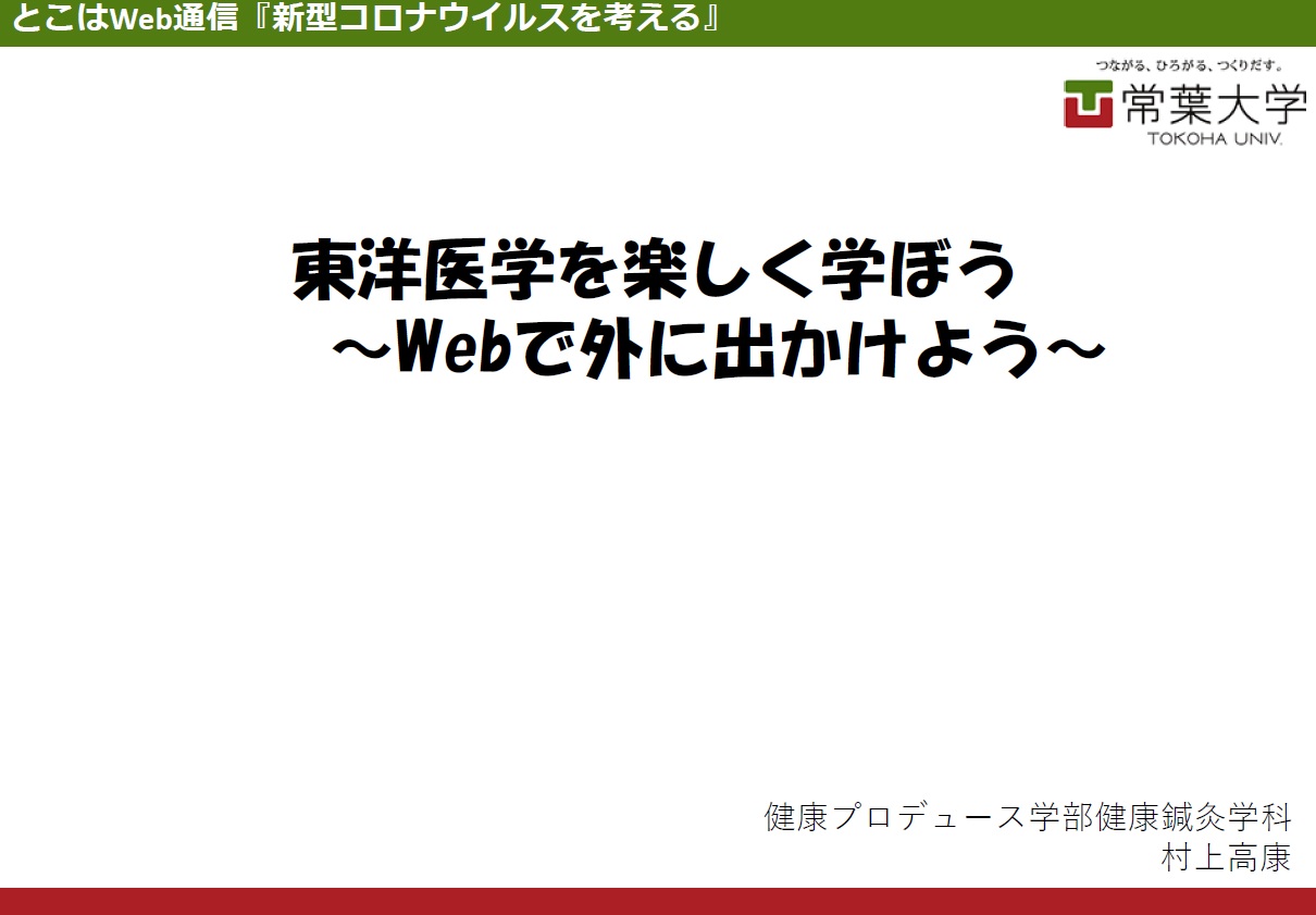 東洋医学を楽しく学ぼう ~Webで外に出かけよう~