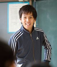 生徒の自主性が尊重される松崎中学校で教職に就き、この4月から3年目を迎えます。生徒と接する際に心掛けていることは、良いことは褒め、間違っていることはきちんと伝えるということです。厳しく接しても生徒に慕われていると感じる時や、授業について生徒たちから「わかった」「面白かった」と反応があった時に仕事のやりがいを感じます。中学生は多感な時期であるからこそ、たくさん勉強して多くの事にチャレンジし、その中から自分が輝ける夢を見つけてほしいと思います。生徒との信頼関係を大切にしながら、一人ひとりの夢を手助けできるようになることが目標です。