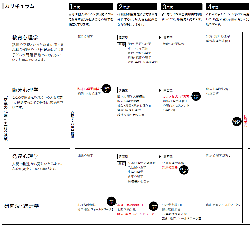 ホーム >  教育学部 >  心理教育学科 >  4年間の学び