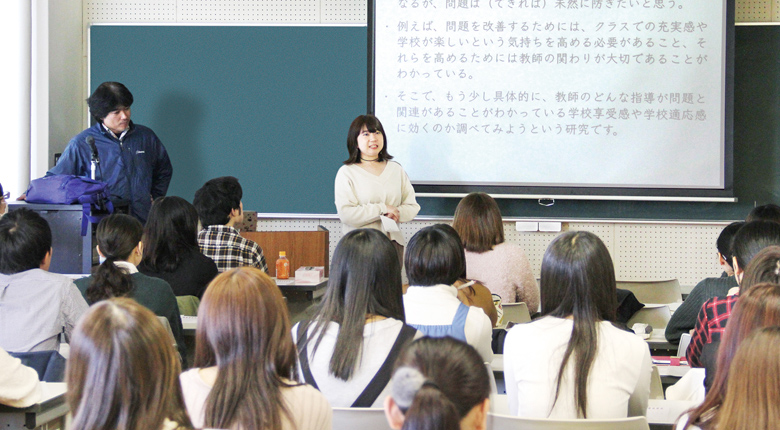 これまでに学んだ内容を基に関心のあるテーマについて研究します。4年次後期に開催される発表会で研究成果が披露されますが、1年次の頃とは比べ物にならないほどの成長がみられます。これまで培ってきたすべてが凝縮された、4年間の学びの集大成が特別研究です。