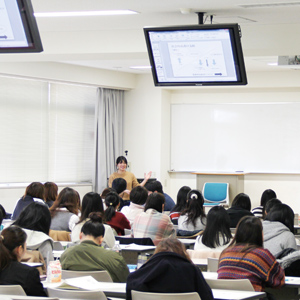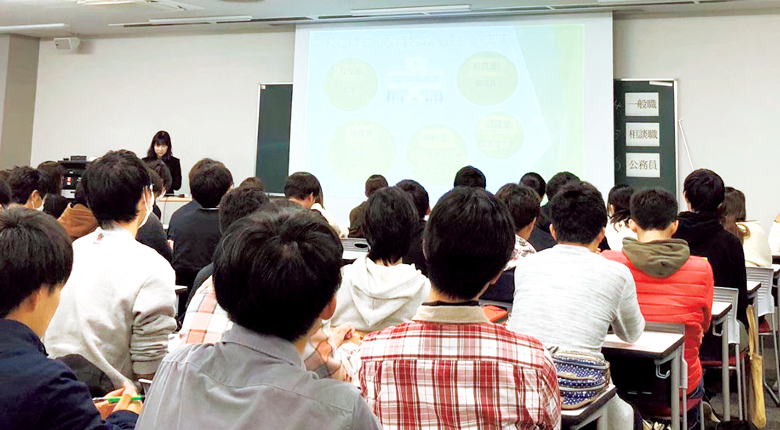 社会人(例:公務員、銀行、大学事務、住宅、自動車、食品、化粧品)として活躍している卒業生を招いて、仕事の内容や、大学での学びが活かされていると感じる社会での体験などをテーマに、シンポジウムを行います。自らの進路について考え、今の学びを新たな視点で見つめ直す良い機会です。