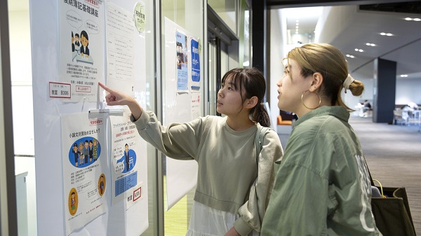 学修や大学生活での困りごとに身近な立場の学生が「学修ピアサポーター」として、個別相談を受けたり、多様な講座などを企画・実施しています。これまでに、新入生のための『履修等相談カフェ』、学生授業『教えて先輩』、昼休み講座『スケジュール管理術』や『公務員の仕事研究座談会』などを開催しました。