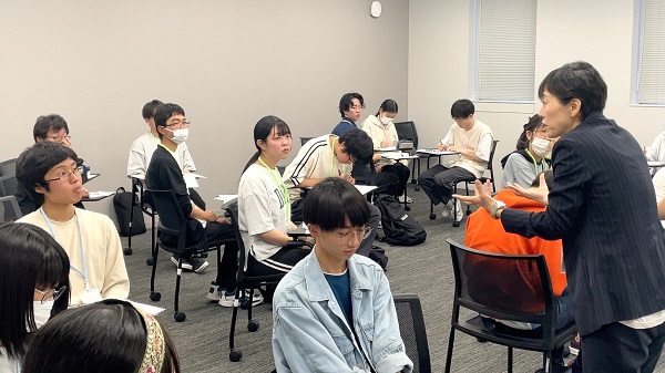 公務員の自主勉強会と協働で、公務員と大学生のざっくばらんな座談会を開催しています。働きがいや働き方の実態だけでなく、台風被害発生時に担当したことや生成Aiの活用状況など、一般の就職ガイダンス以上に実際に働くイメージがわかるようです。