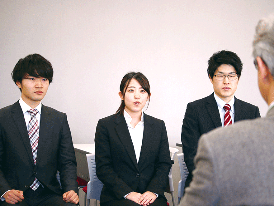 教員採用試験に向けて、小論文や指導案の添削、面接指導などが行われます。集団面接指導では、発言のポイントや話を聞く姿勢など、細やかな指導を受けられます。また、教職をめざす仲間と共に刺激しあいながら採用試験に臨んでいくことができます。卒業生たちの指導案をファイルした、通称「指導案ライブラリー」は、自身の指導案作成のヒントとして活用されています。