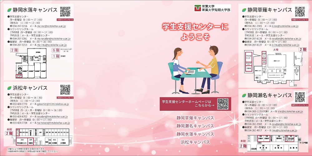 電話:054-261-2383  メール:soudan(@を挿入)sz.tokoha-u.ac.jp