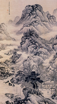 福田半香は山水画をもっとも得意とした画家である。若い頃は緻密な描写で大きな構図の作品を残している。晩年に至ると大胆な墨描で一気呵成に山水画を描いた。この作品は晩年における山水画の代表作である。半香の山水画は雨を描いているところに特色がある。嘉永年間、半香の水墨山水画がもっとも充実していた時代の作品である。