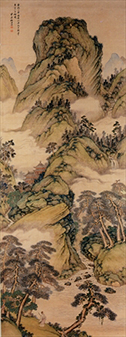 日本の南画は中国にあこがれることから始まったと言ってよい。このようなことから画題としては中国の漢詩や故事に取材する場合がほとんどである。描かれる人物建物いずれも中国風である。この図は画面左下の高士つまり人格が高潔で節義を重んじる人物が右上の滝を見つめているところを描いたもので、一般的にこのような図は中国の詩人・李白が廬山の滝を詠った「廬山の瀑布を望む」の詩を画題としたものである。