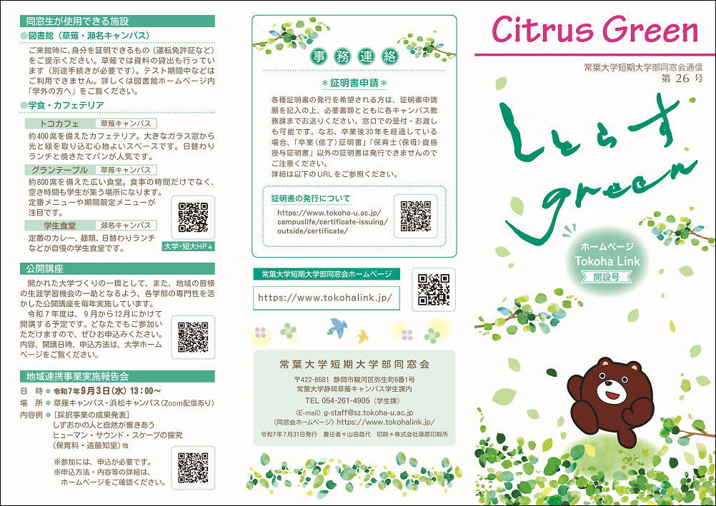 同窓会通信第13号 「しとらす Green」が発刊されました。